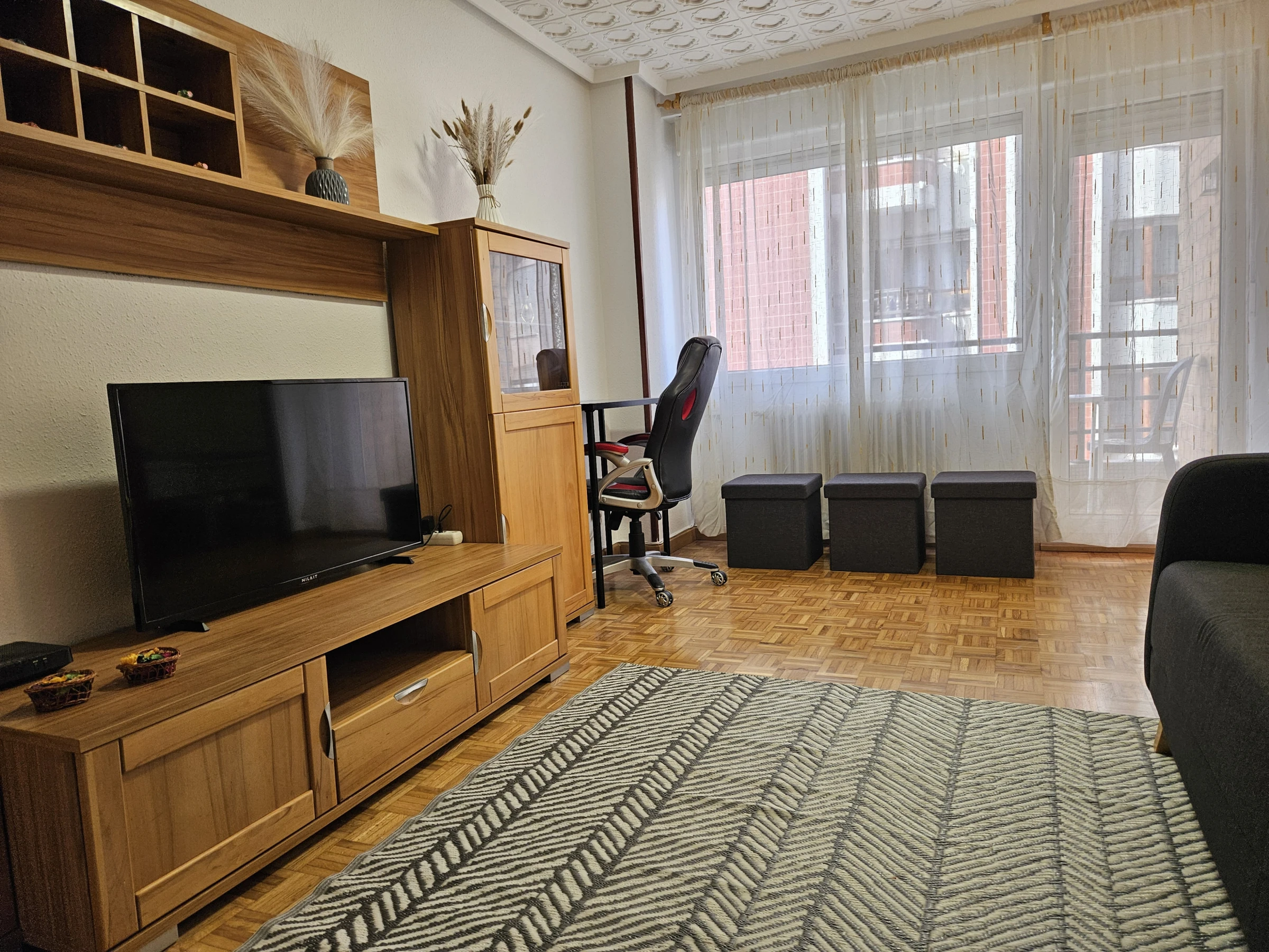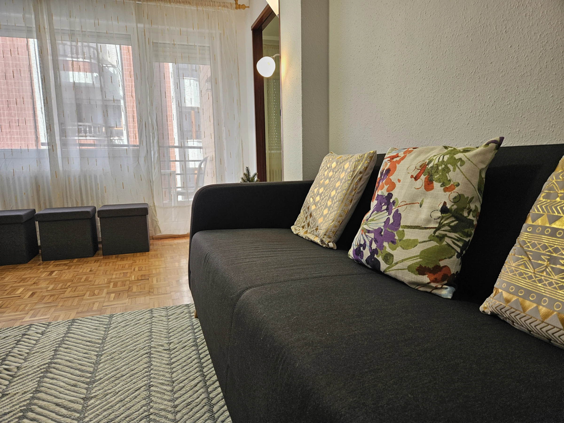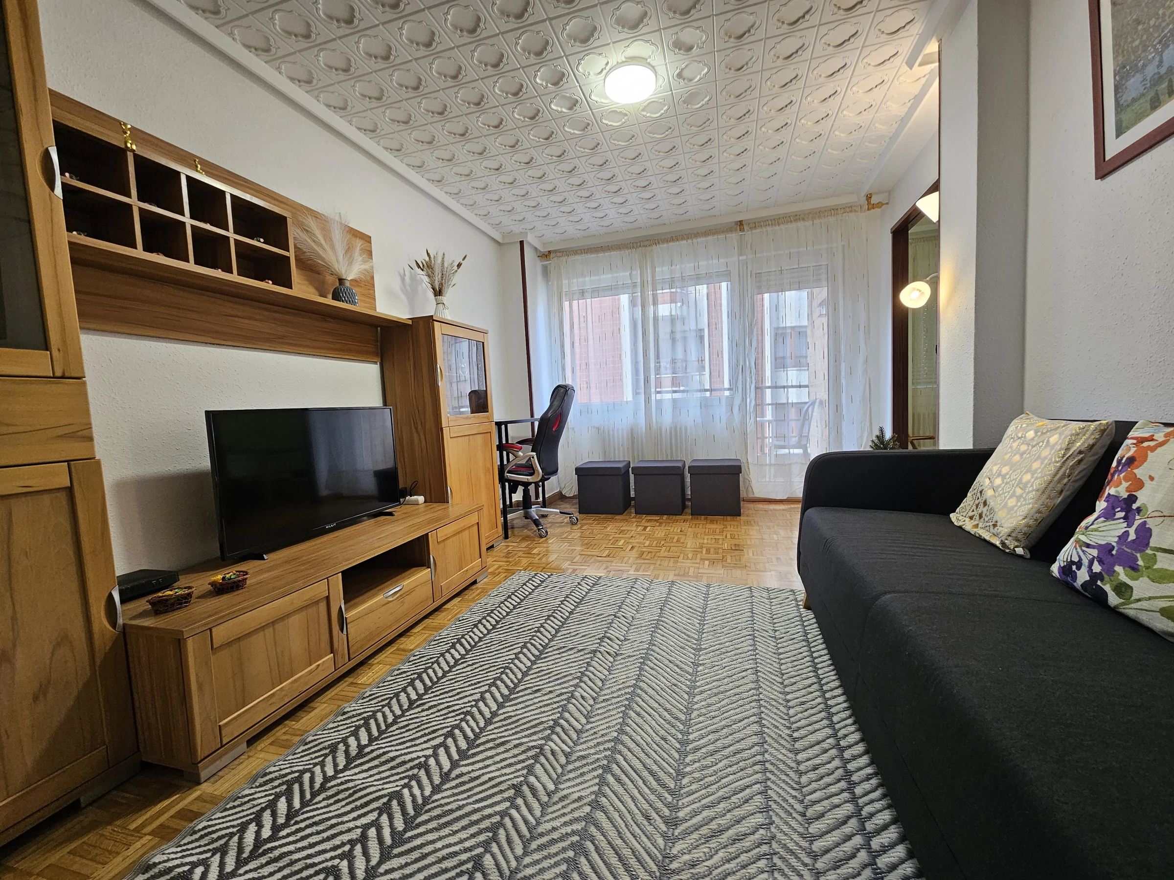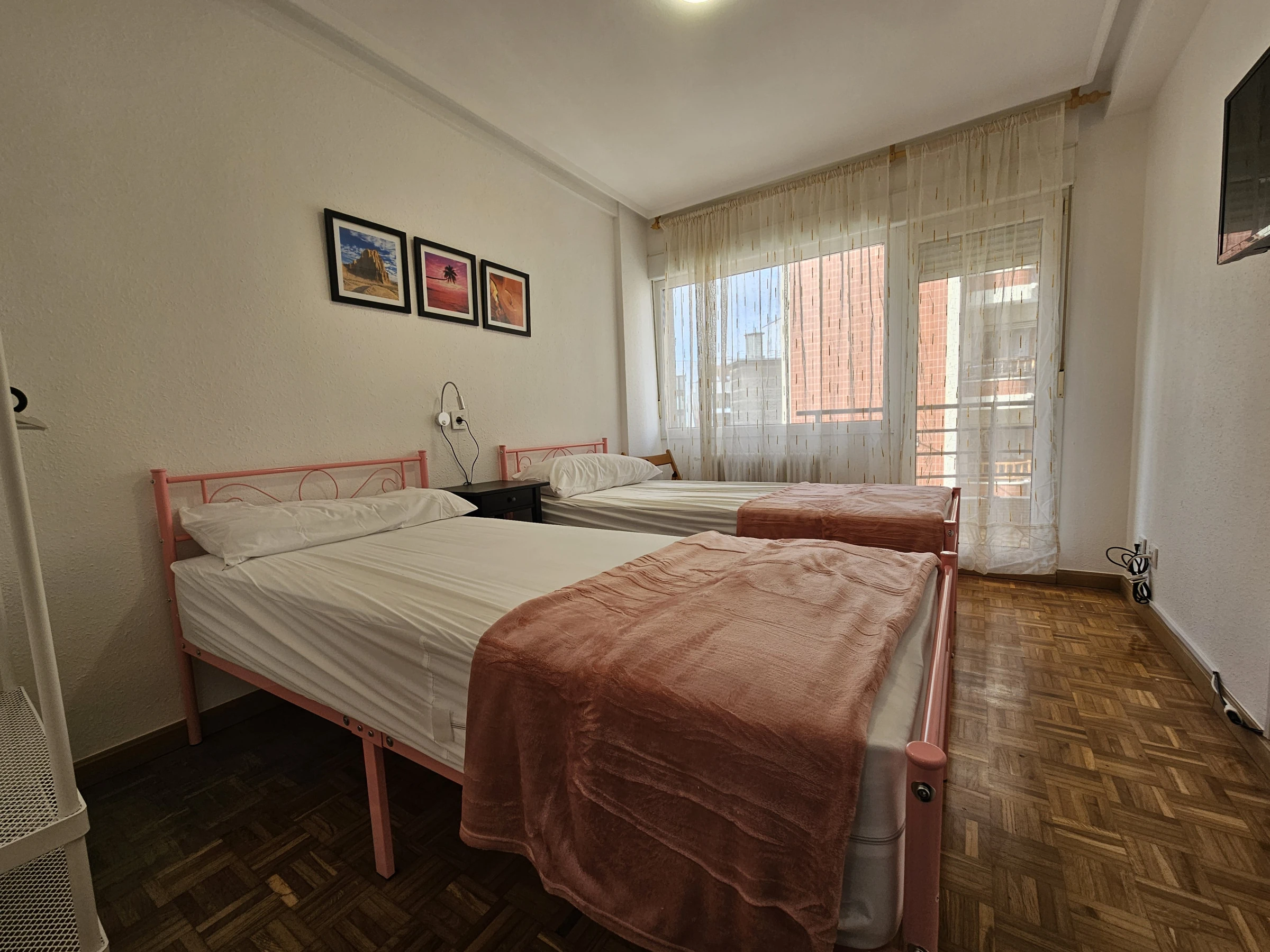 Apartamento céntrico de 3 dormitorios con 6 camas individuales, luminoso y bien distribuido. Cuenta con un baño completo y un aseo adicional para mayor comodidad. La cocina está completamente equipada y el salón es independiente, ideal para relajarse. Todas las habitaciones tienen acceso a una terraza, brindando luz natural y vistas. Buena accesibilidad en la ciudad, perfecto para explorar.
