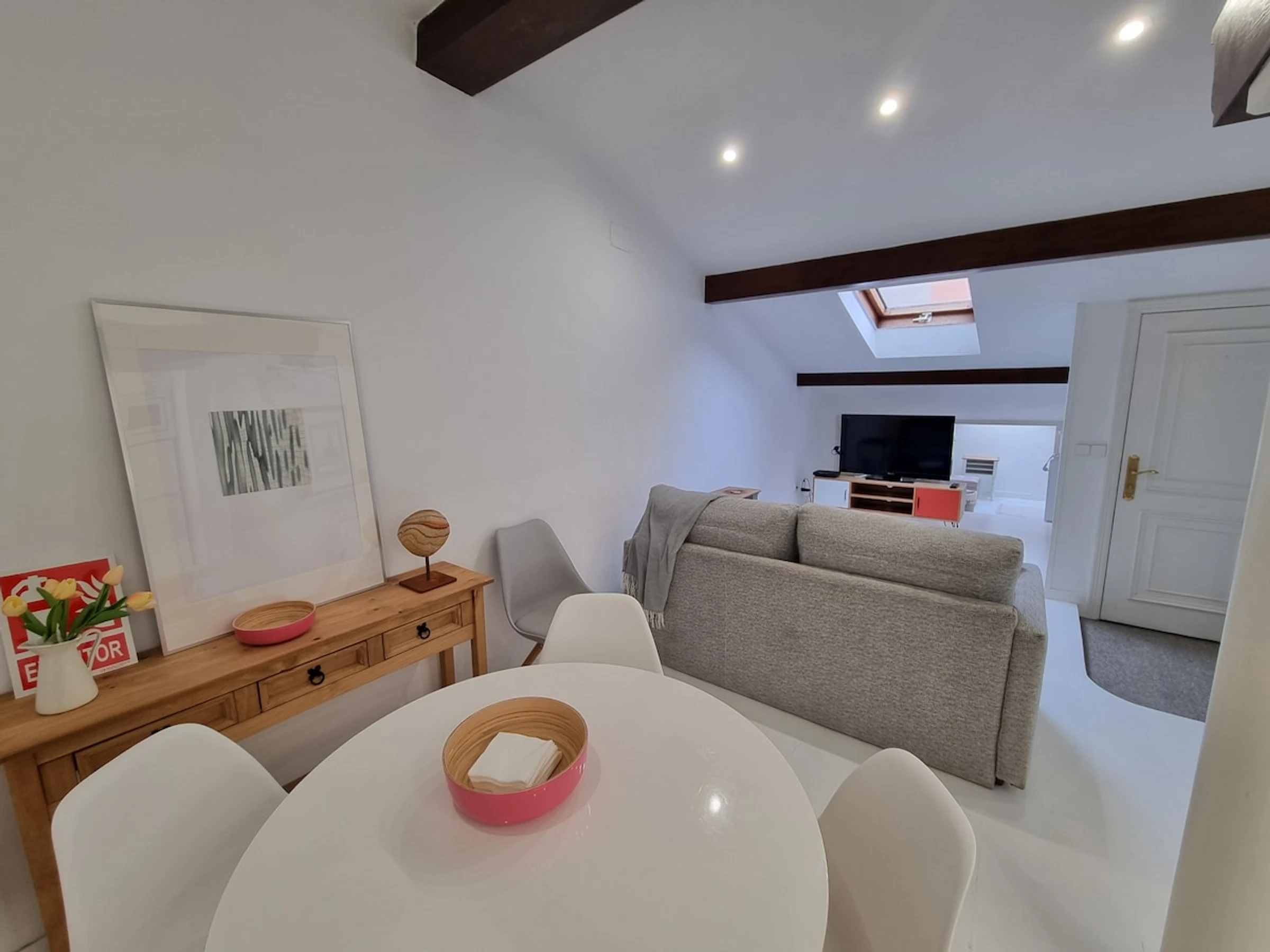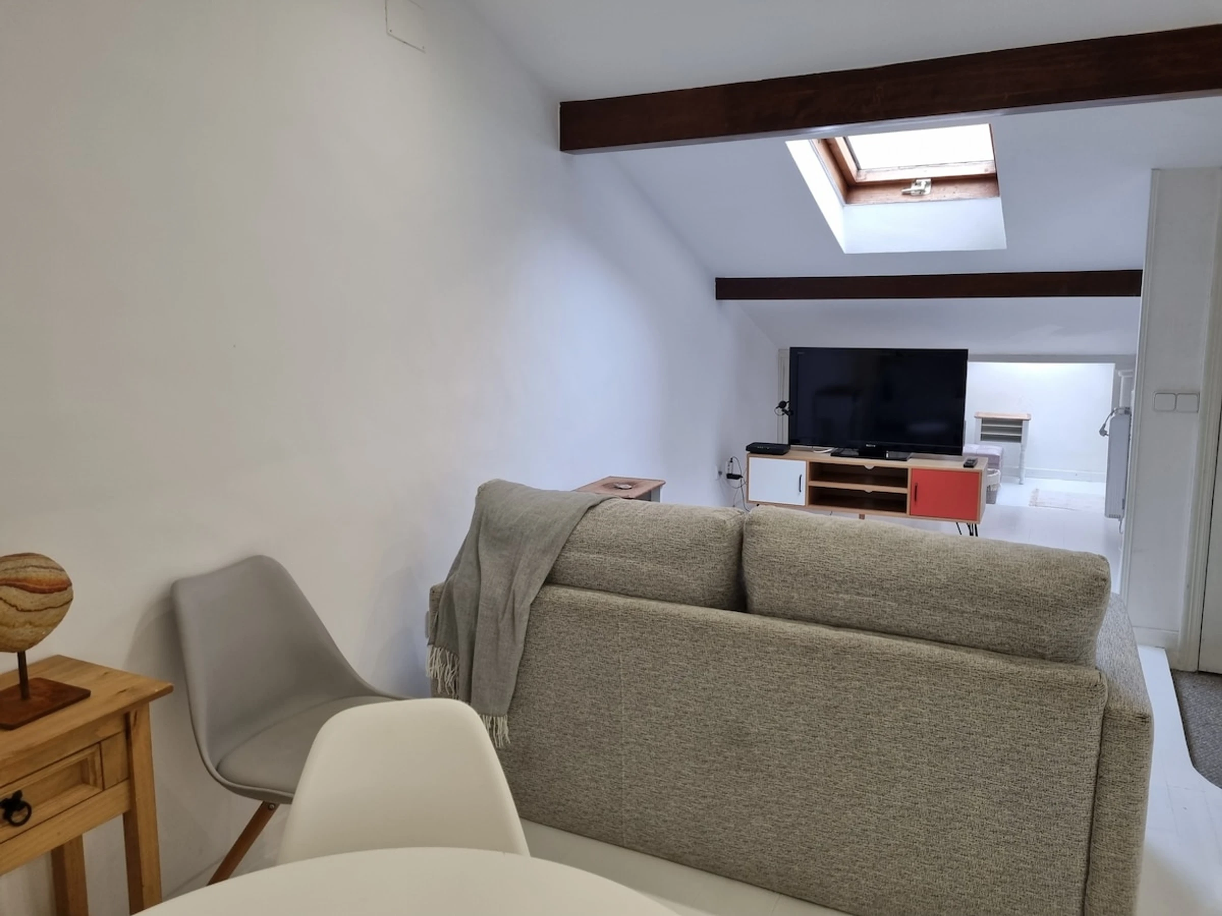 Ihre architektonische Renovierung und Dekoration schaffen eine elegante und gemütliche Atmosphäre. Das Licht, das durch die Dachfenster im Wohnzimmer fällt, verleiht dem Raum Wärme, während die Trennung des Schlafzimmers eine größere Privatsphäre gewährleistet. Vollständig ausgestattet, bietet es alle notwendigen Annehmlichkeiten für eine optimale Erholung.