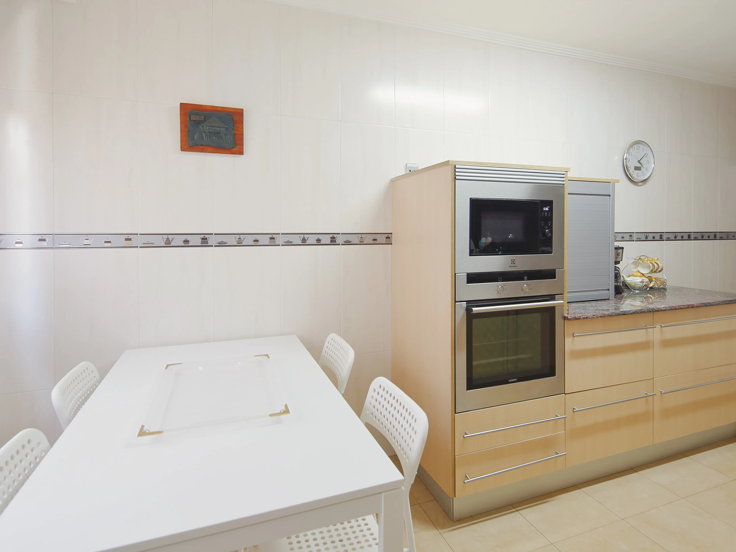Dieses separate küche, mit ceranfeld, ist ausgestattet in kühlschrank, mikrowelle, backofen, gefrierschrank, spülmaschine, geschirr/besteck, kochutensilien, kaffeemaschine, toaster, wasserkocher und saftpresse.