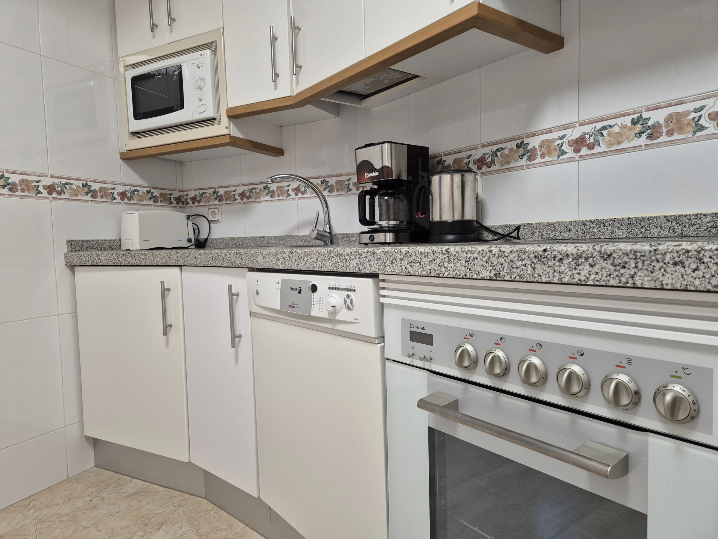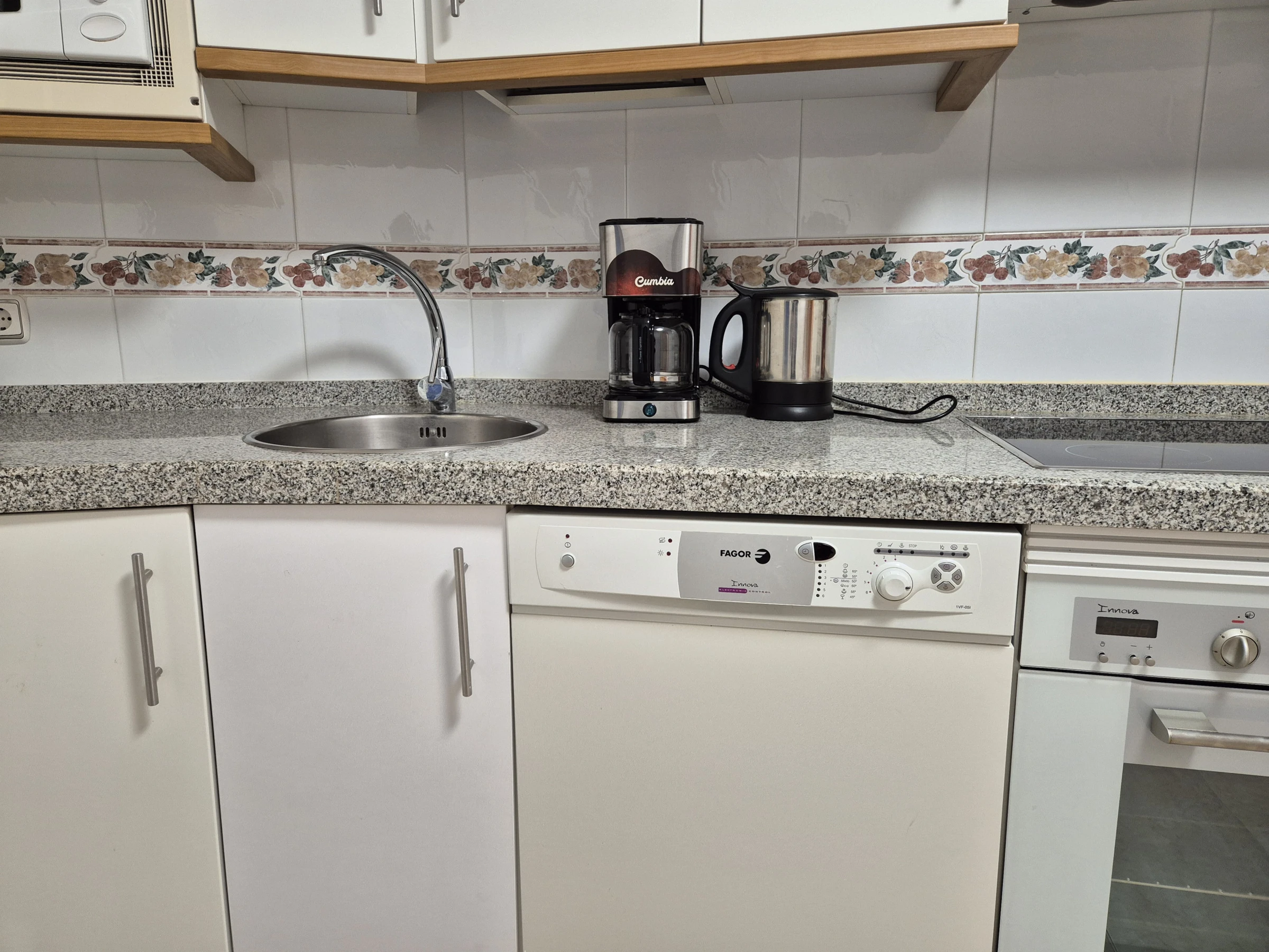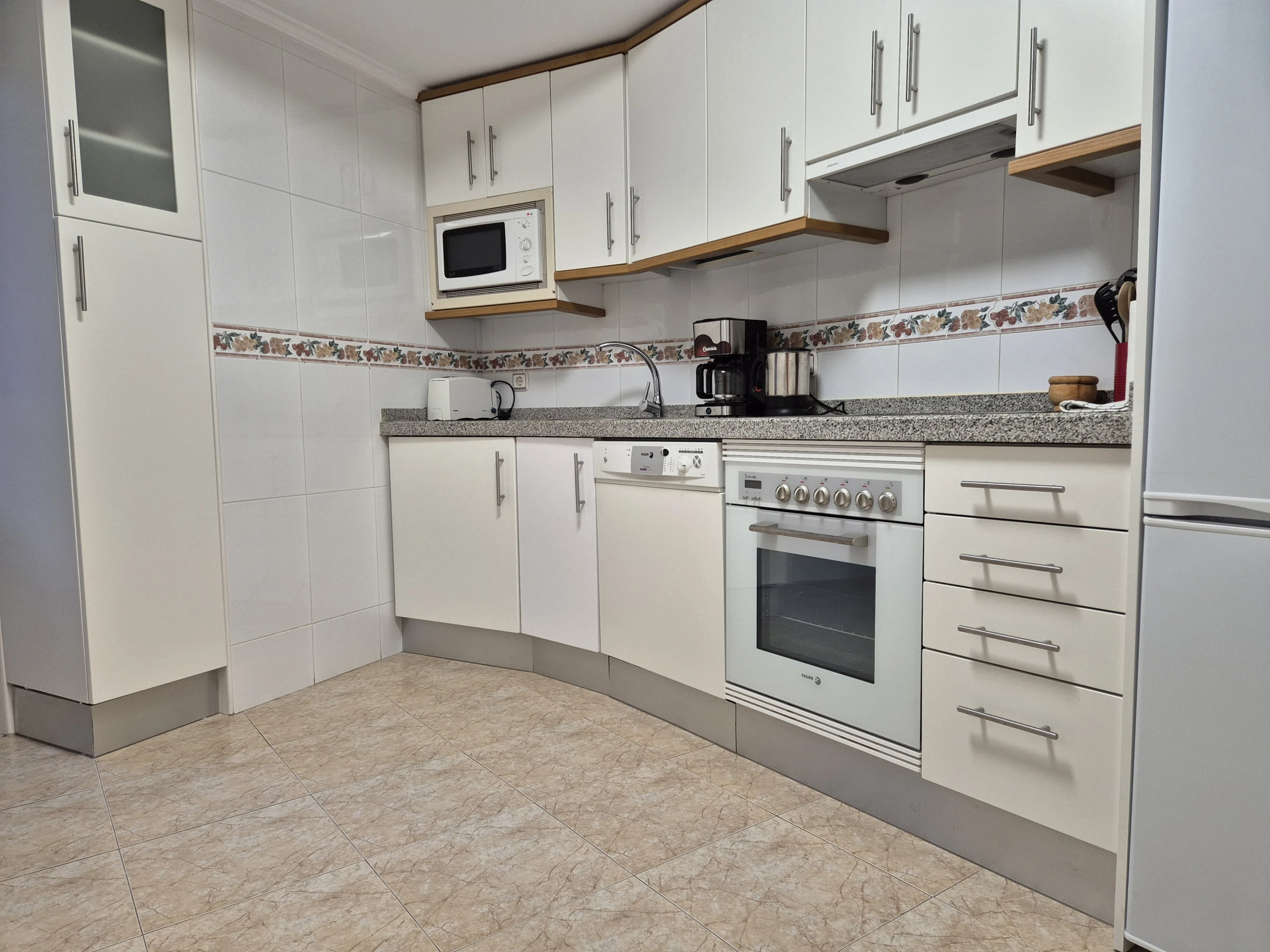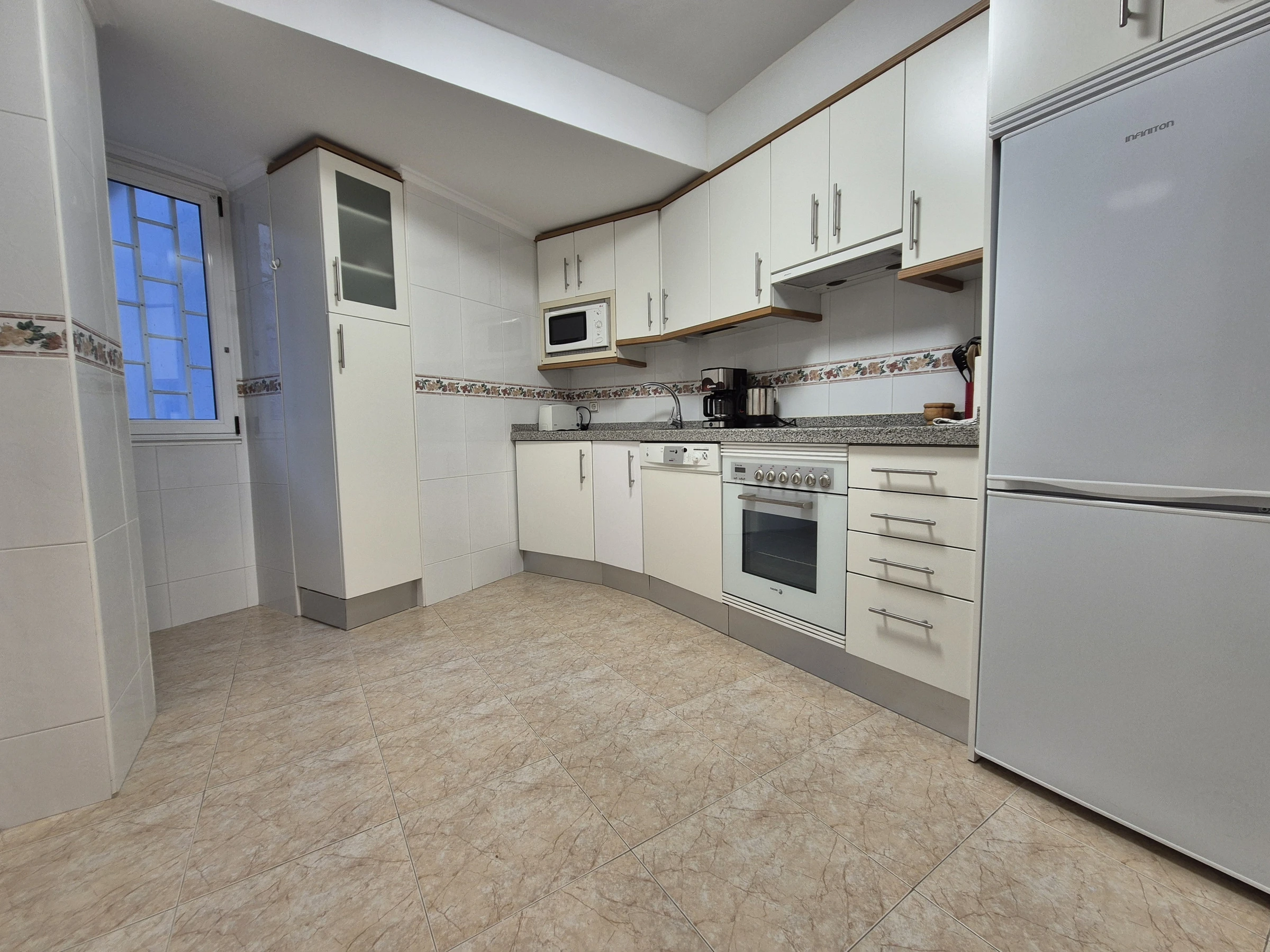 La cocina, de vitrocerámica, dispone de nevera, microondas, horno, congelador, lavavajillas, vajilla/cubertería, utensilios de cocina, cafetera, hervidor de agua y exprimidor.