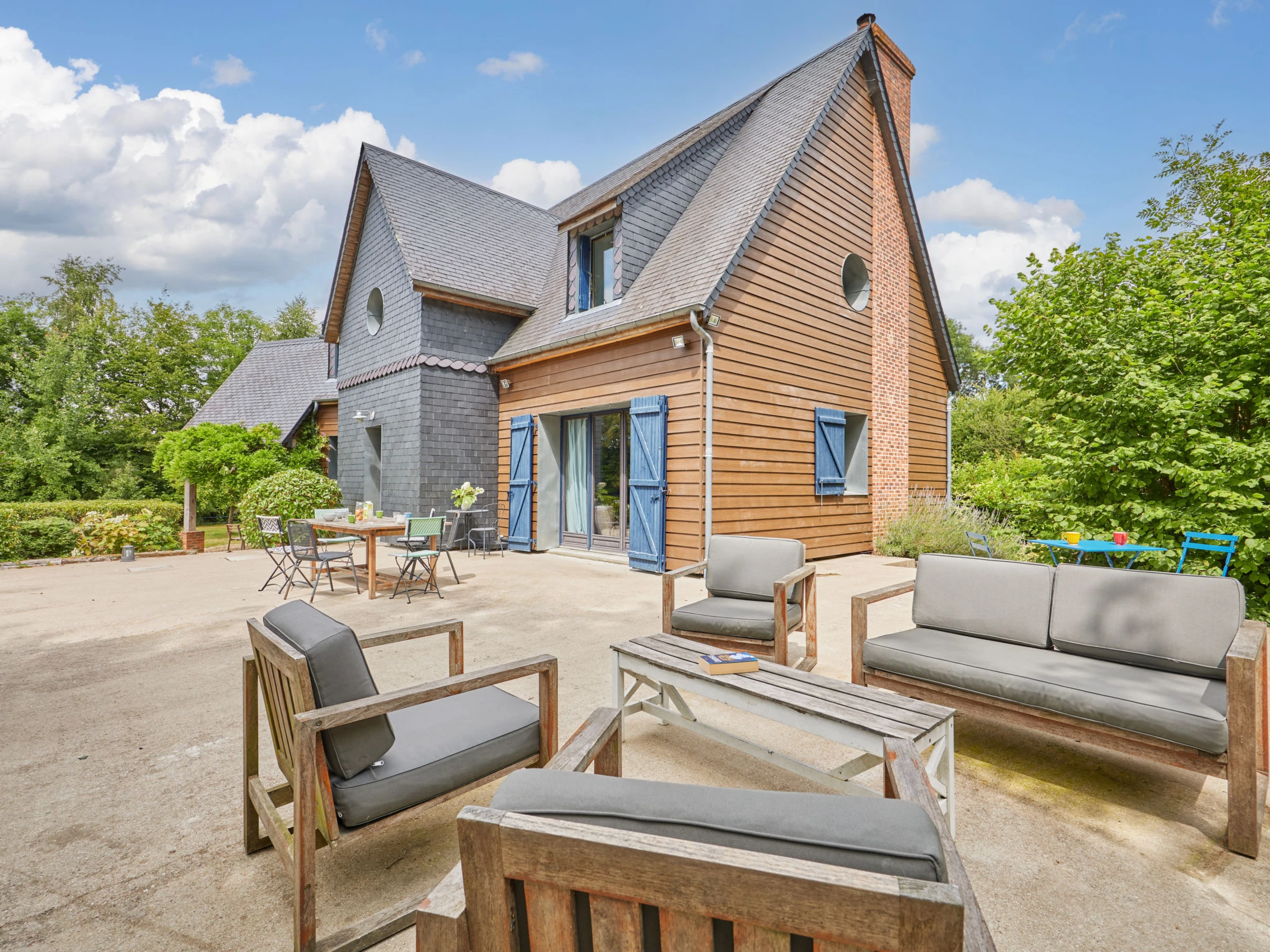 "Villa Honfleur", 6-Zimmer-Haus 160 m2 auf 3 Stockwerken. Wohn-/Esszimmer mit Panoramafenster mit offenem Kamin (nur Deko), TV (Flachbildschirm). Ausgang zur Terrasse. Offene Küche (Backofen, Geschirrspüler, 2 Glaskeramikplatten, 2 Flammen, Toaster, Wasserkocher, Mikrowelle, elektrische Kaffeemaschine, Kapseln für die Kaffeemaschine (Nespresso) extra). E-Heizung. Unteres Geschoss: 1 Zimmer mit Dusche/WC. Obergeschoss: 3 Zimmer, jedes Zimmer mit 1 franz. Bett (160 cm, Länge 200 cm). 1 Zimmer mit 1 franz. Bett (160 cm, Länge 200 cm), Dusche. Sep. WC. Terrasse 40 m2. Terrassenmöbel. Zur Verfügung: Waschmaschine, Wäschetrockner. Inserat einer Privatperson nach Artikel 155, IV, CGI.