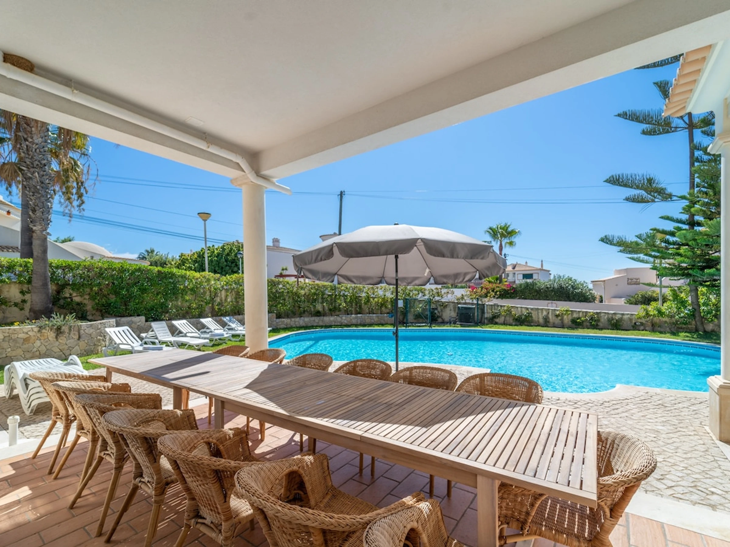 Die Unterkunft verfügt über garten, gartenmöbel, umzäuntes grundstück, terrasse, waschmaschine, trockner, grill, kamin, bügeleisen/-brett, safe, internet (WLAN), haartrockner, balkon, heizung, klimaanlage, swimming-pool privater pool, klimatisierter pool privater pool, parkplatz im freien in auf dem grundstück, 1 Fernseher, sat-tv (Sprachen: Spanisch, Englisch, Französisch).