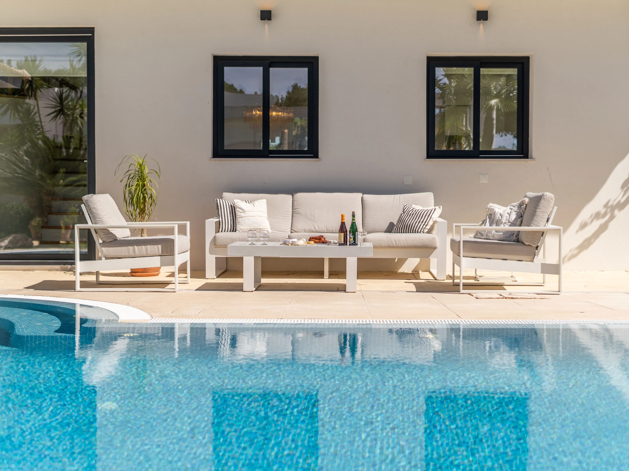 Die Unterkunft verfügt über garten, gartenmöbel, umzäuntes grundstück, terrasse, waschmaschine, trockner, grill, kamin, bügeleisen/-brett, internet (WLAN), haartrockner, balkon, klimaanlage, klimatisierter pool privater pool, parkplatz im freien in auf dem grundstück, 1 Fernseher, sat-tv (Sprachen: Spanisch, Englisch, Französisch).