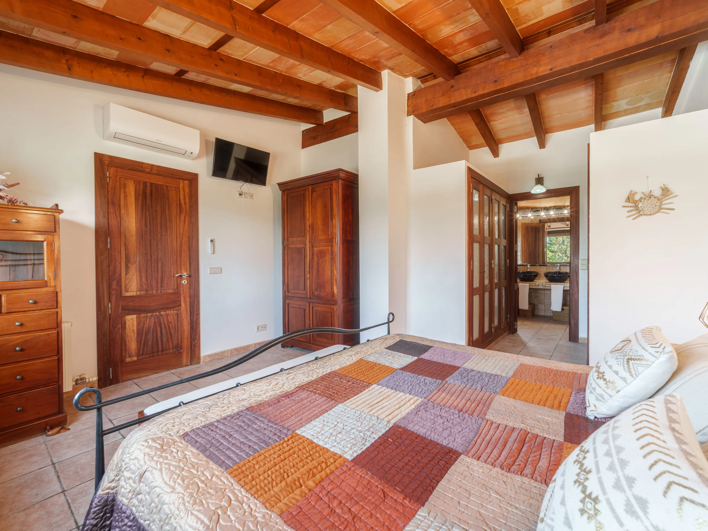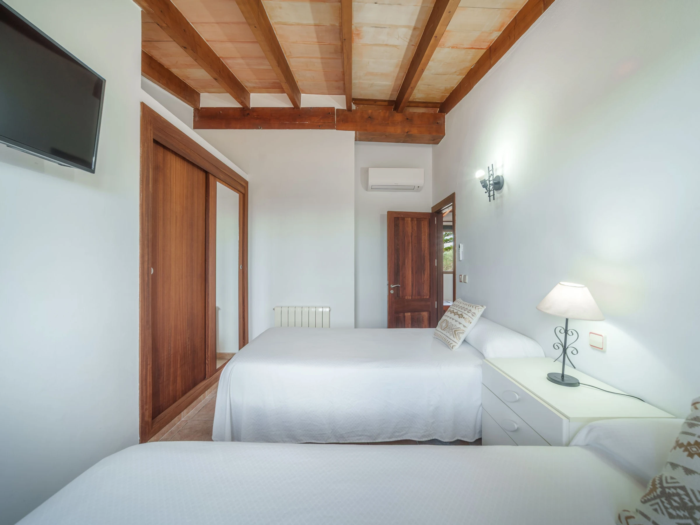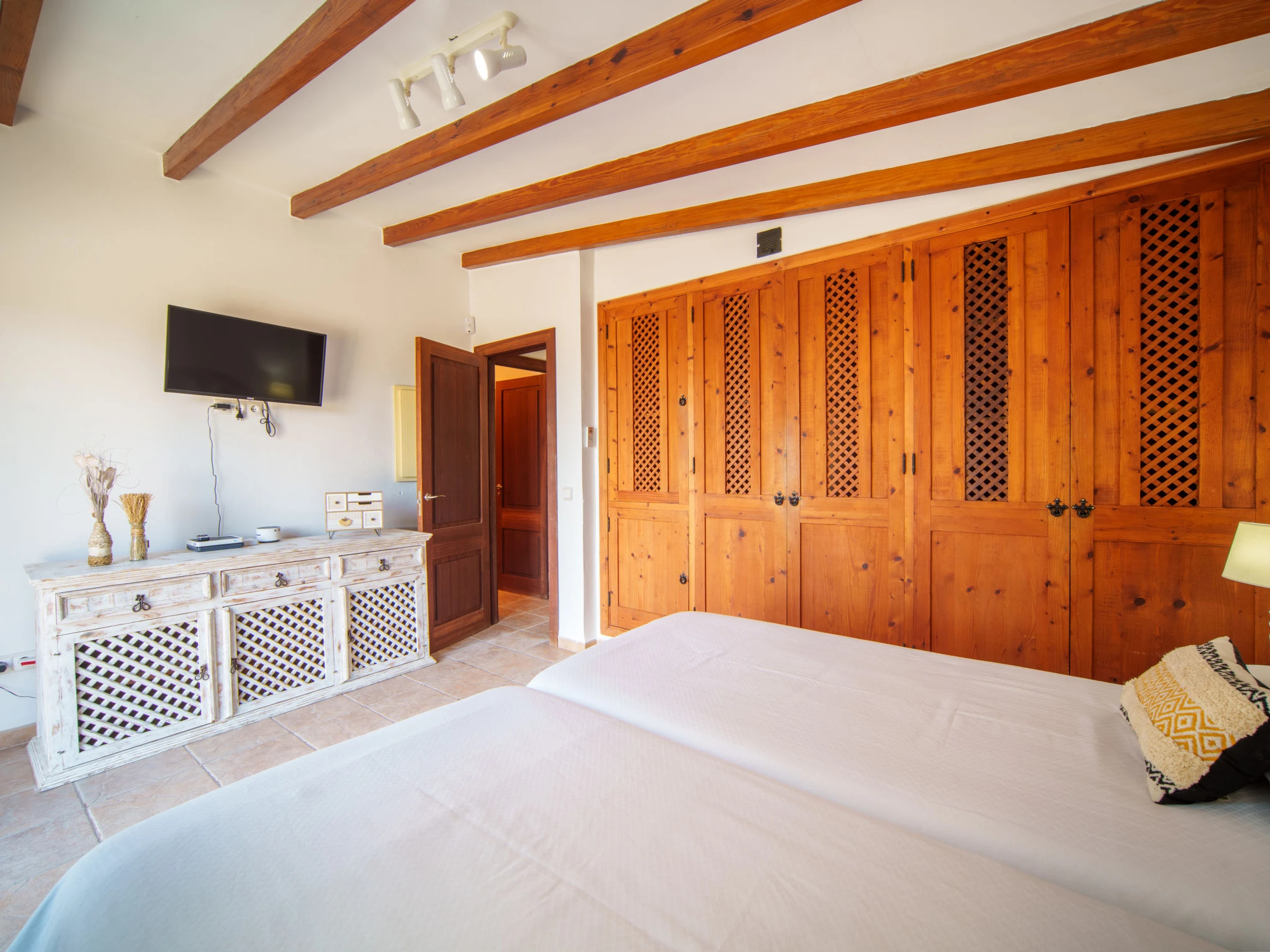 "Son Bosc", 6-Zimmer-Villa 450 m2 auf 2 Stockwerken. Objekt geeignet für 9 Erwachsene. Geräumig und hell, vollständig renoviert, komfortabel und gemütlich eingerichtet: grosses Wohnzimmer mit Panoramafenster mit Digital-TV, Flachbildschirm, Klimaanlage und Warmluftheizung. Ausgang zum Gartensitzplatz. 1 grosses Doppelzimmer mit Schiebetür mit 2 Betten (90 cm, Länge 200 cm), Digital-TV, Flachbildschirm, Klimaanlage und Warmluftheizung. Ausgang zum Gartensitzplatz. Salon mit Digital-TV, Flachbildschirm, Klimaanlage und Warmluftheizung. Ausgang zum Gartensitzplatz. Wohnküche (Backofen, Geschirrspüler, 3 Glaskeramikplatten, Mikrowelle, Tiefkühler, elektrische Kaffeemaschine) mit Esstisch, offenem Kamin (nur Deko), Klimaanlage und Warmluftheizung. Ausgang zum Gartensitzplatz. Bad/WC, Dusche/WC. Obergeschoss: 1 grosses Doppelzimmer mit Panoramafenster begehbarem Kleiderschrank mit 1 franz. Bett (180 cm, Länge 200 cm), Bad/Dusche/WC, Doppelwaschbecken, Digital-TV, Flachbildschirm, Klimaanlage und Warmluftheizung. (Leiter) 1 Doppelzimmer mit Panoramafenster mit 1 franz. Bett (150 cm, Länge 200 cm), Digital-TV, Flachbildschirm, Klimaanlage und Warmluftheizung. (Leiter) 1 Doppelzimmer mit Panoramafenster mit 2 Betten (90 cm, Länge 200 cm), Digital-TV, Flachbildschirm, Klimaanlage und Warmluftheizung. 1 grosses Doppelzimmer mit Panoramafenster mit 1 franz. Bett (150 cm, Länge 200 cm), Klimaanlage und Warmluftheizung. Ausgang zum Balkon. Dusche/WC, Doppelwaschbecken. Natursteinboden. Grosser Balkon, grosser Gartensitzplatz, Rasen, Laube. Terrassenmöbel, Gartengrill, Liegestühle (9), Loggia, Sitzplatz. Sehr schöne Sicht auf die Berge und die Landschaft. Zur Verfügung: Waschmaschine, Wäschetrockner, Bügeleisen, Kinderhochstuhl, Babybett bis 2 Jahre, Haartrockner. Internet (WLAN, gratis). Parkplatz (überdacht), Garage auf dem Grundstück beim Haus. Bitte beachten: geeignet für Familien ein Doppelzimmer liegt außerhalb der Wohnung. Kein Fahrstuhl. Der ausgeschriebene Pool ist zur alleinigen Nutzung. [hidden] ESFCTU[hidden][hidden][hidden]0[hidden]2