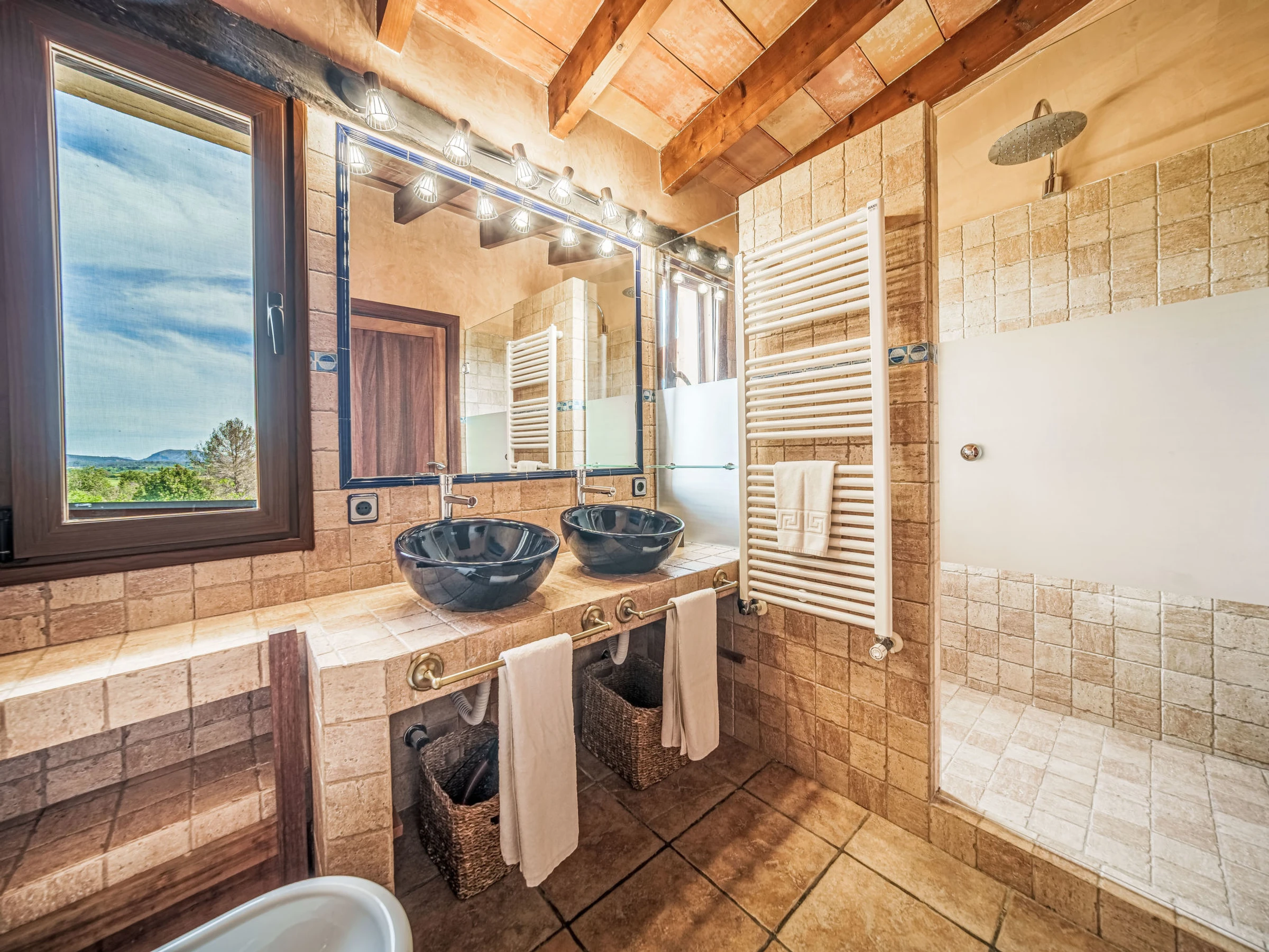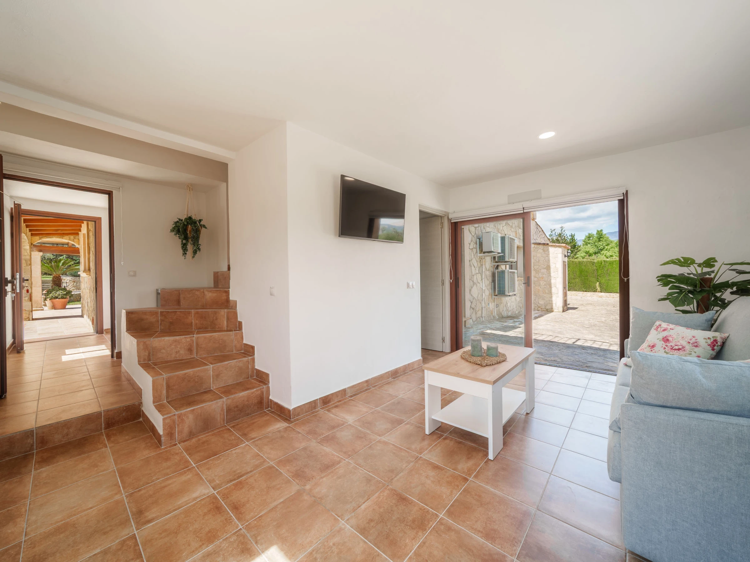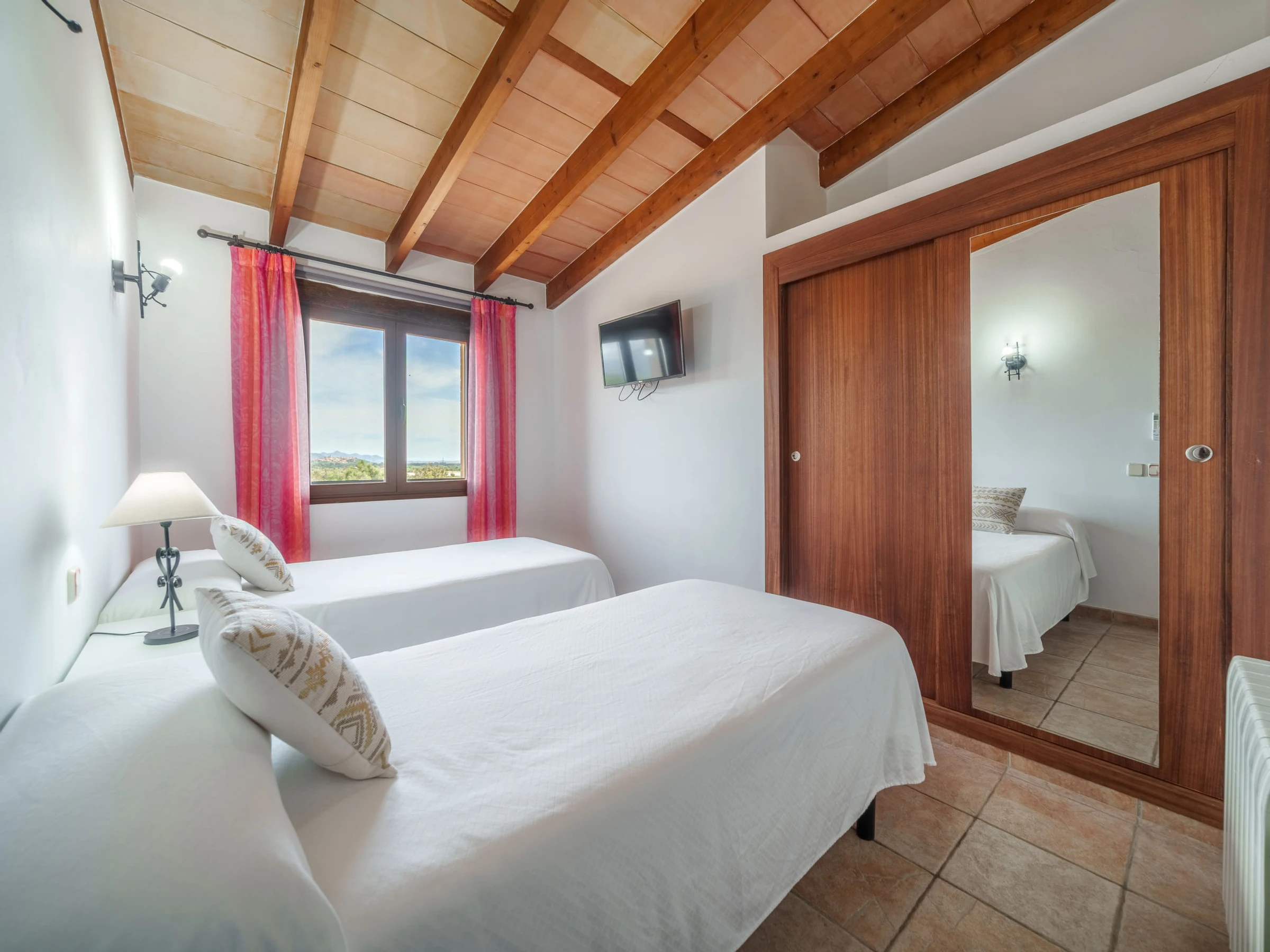 "Son Bosc", 6-Zimmer-Villa 450 m2 auf 2 Stockwerken. Objekt geeignet für 9 Erwachsene. Geräumig und hell, vollständig renoviert, komfortabel und gemütlich eingerichtet: grosses Wohnzimmer mit Panoramafenster mit Digital-TV, Flachbildschirm, Klimaanlage und Warmluftheizung. Ausgang zum Gartensitzplatz. 1 grosses Doppelzimmer mit Schiebetür mit 2 Betten (90 cm, Länge 200 cm), Digital-TV, Flachbildschirm, Klimaanlage und Warmluftheizung. Ausgang zum Gartensitzplatz. Salon mit Digital-TV, Flachbildschirm, Klimaanlage und Warmluftheizung. Ausgang zum Gartensitzplatz. Wohnküche (Backofen, Geschirrspüler, 3 Glaskeramikplatten, Mikrowelle, Tiefkühler, elektrische Kaffeemaschine) mit Esstisch, offenem Kamin (nur Deko), Klimaanlage und Warmluftheizung. Ausgang zum Gartensitzplatz. Bad/WC, Dusche/WC. Obergeschoss: 1 grosses Doppelzimmer mit Panoramafenster begehbarem Kleiderschrank mit 1 franz. Bett (180 cm, Länge 200 cm), Bad/Dusche/WC, Doppelwaschbecken, Digital-TV, Flachbildschirm, Klimaanlage und Warmluftheizung. (Leiter) 1 Doppelzimmer mit Panoramafenster mit 1 franz. Bett (150 cm, Länge 200 cm), Digital-TV, Flachbildschirm, Klimaanlage und Warmluftheizung. (Leiter) 1 Doppelzimmer mit Panoramafenster mit 2 Betten (90 cm, Länge 200 cm), Digital-TV, Flachbildschirm, Klimaanlage und Warmluftheizung. 1 grosses Doppelzimmer mit Panoramafenster mit 1 franz. Bett (150 cm, Länge 200 cm), Klimaanlage und Warmluftheizung. Ausgang zum Balkon. Dusche/WC, Doppelwaschbecken. Natursteinboden. Grosser Balkon, grosser Gartensitzplatz, Rasen, Laube. Terrassenmöbel, Gartengrill, Liegestühle (9), Loggia, Sitzplatz. Sehr schöne Sicht auf die Berge und die Landschaft. Zur Verfügung: Waschmaschine, Wäschetrockner, Bügeleisen, Kinderhochstuhl, Babybett bis 2 Jahre, Haartrockner. Internet (WLAN, gratis). Parkplatz (überdacht), Garage auf dem Grundstück beim Haus. Bitte beachten: geeignet für Familien ein Doppelzimmer liegt außerhalb der Wohnung. Kein Fahrstuhl. Der ausgeschriebene Pool ist zur alleinigen Nutzung. [hidden] ESFCTU[hidden][hidden][hidden]0[hidden]2