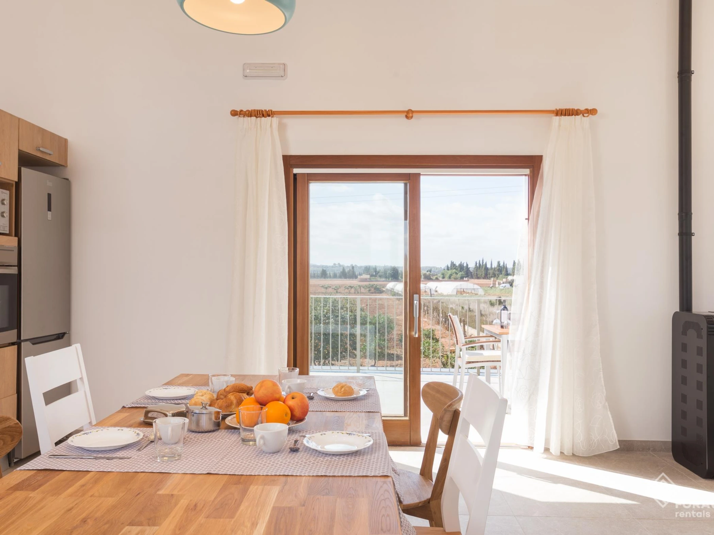 - Es hat auch einen Ofen, der die Wärme im Obergeschoss verteilt, wo sich das Esszimmer und die Küche befinden.