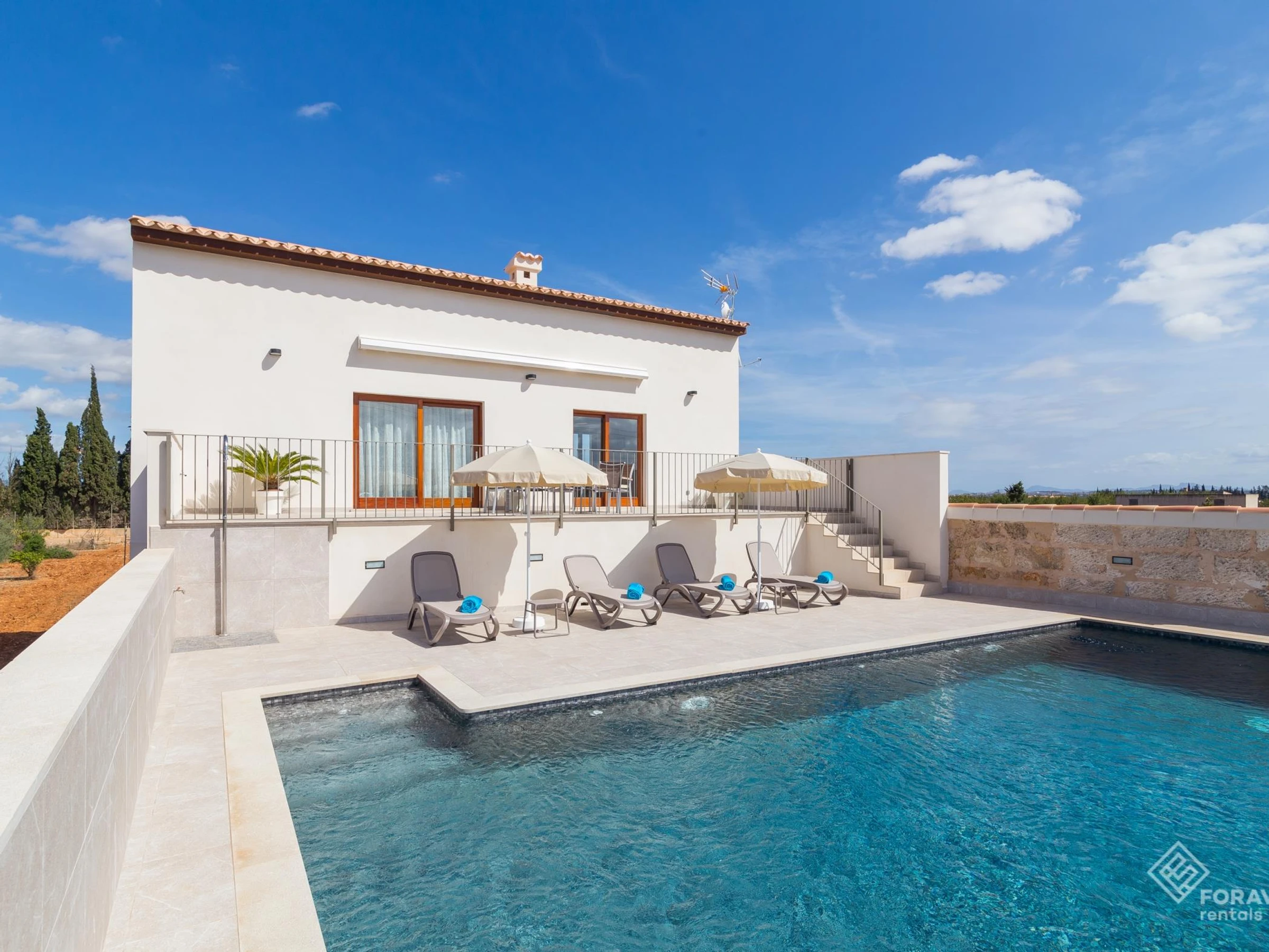 Dieses fantastische Haus befindet sich am Stadtrand von Inca in einer sehr ruhigen ländlichen Gegend. Das Haus, neu und modern, ist sehr breit und hell und ist perfekt ausgestattet. Kurz gesagt, es hat alles, was Sie brauchen, um einen wunderschönen Urlaub auf der Insel zu verbringen. Was das Äußere betrifft, verfügt diese prächtige Villa über eine möblierte Terrasse und einen perfekten Pool, um sich abzukühlen und das wundervolle Wetter der Insel zu genießen.