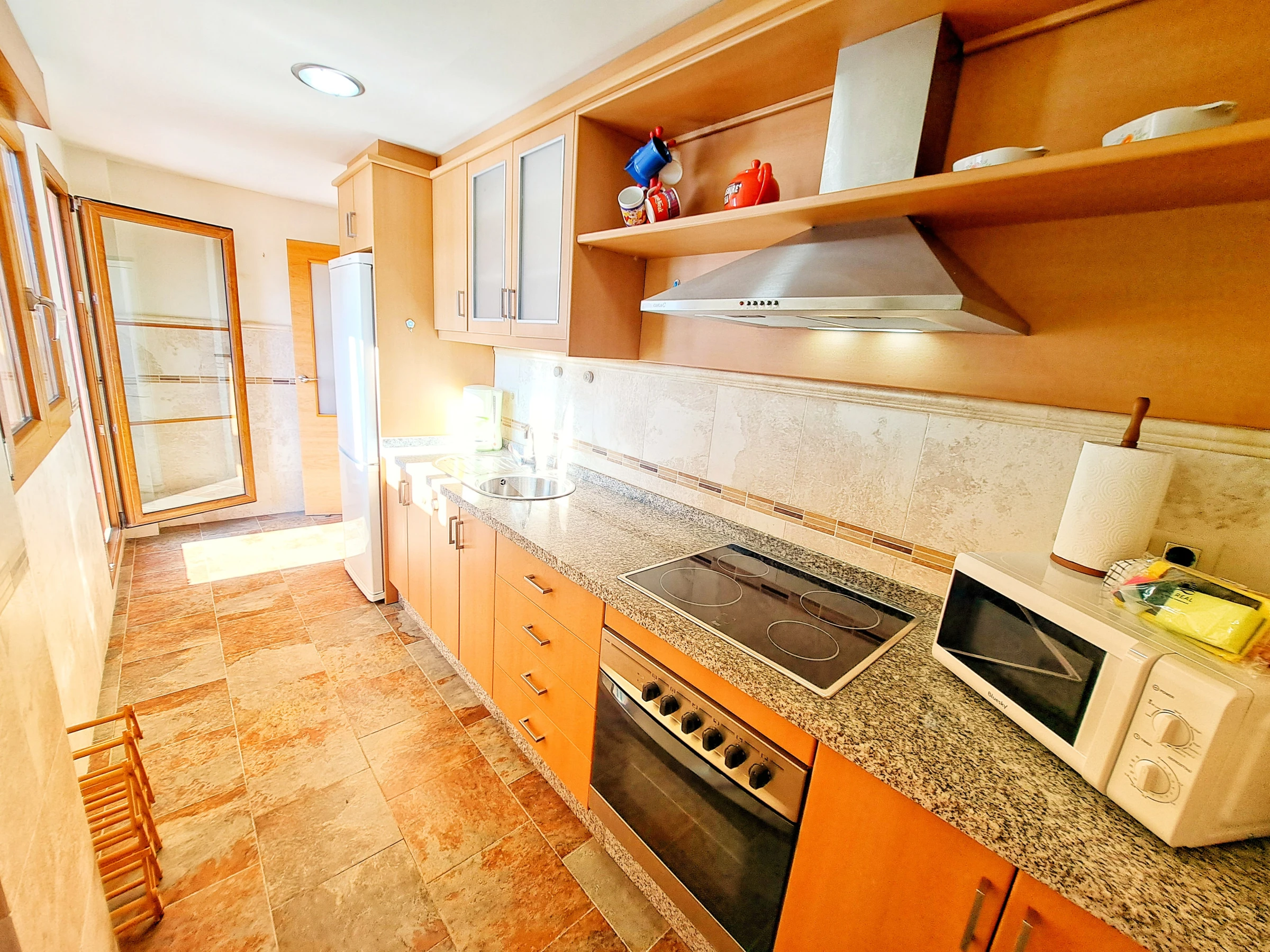 Dieses küche, ist ausgestattet in kühlschrank, mikrowelle, backofen, gefrierschrank, geschirr/besteck, kochutensilien, kaffeemaschine, toaster, wasserkocher und saftpresse.