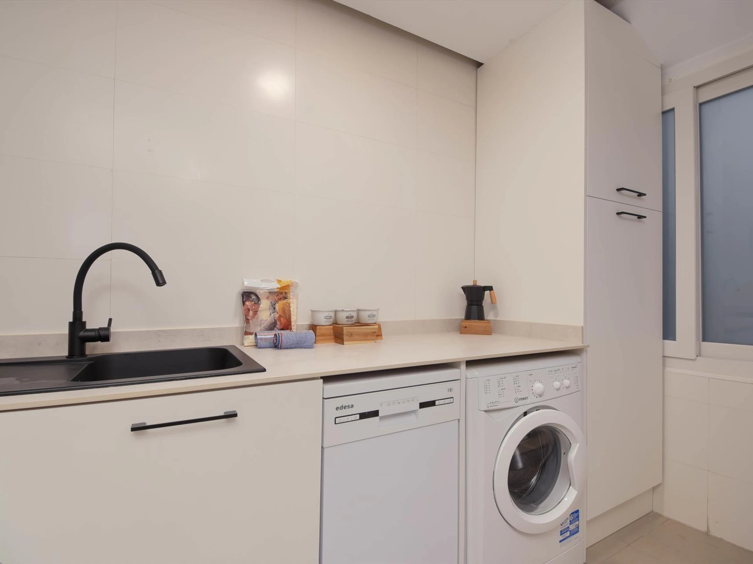 Dieses küche, ist ausgestattet in mikrowelle, backofen, gefrierschrank, spülmaschine, kaffeemaschine und toaster.