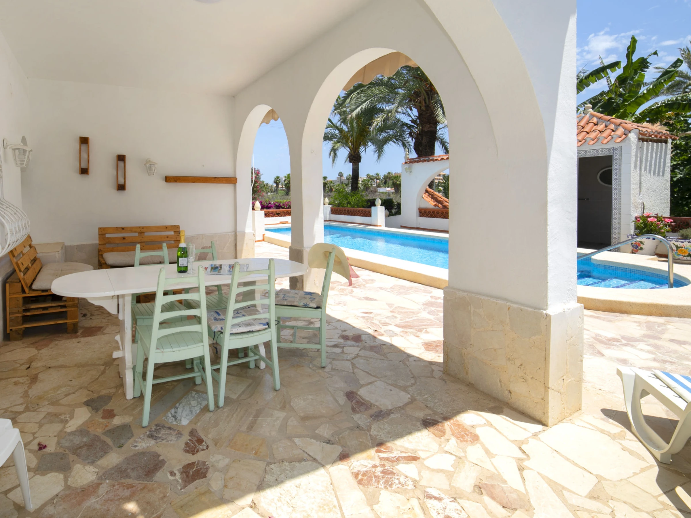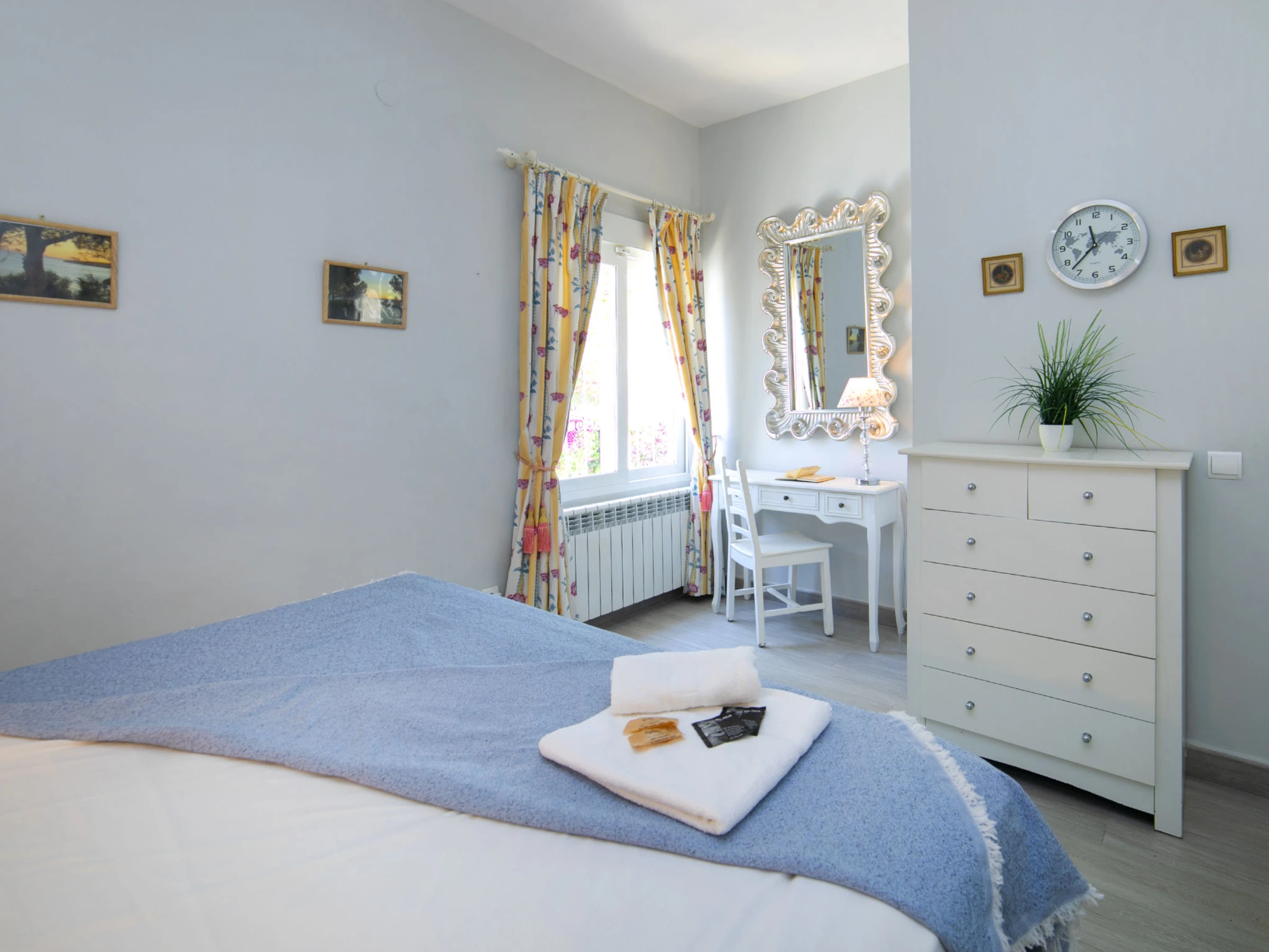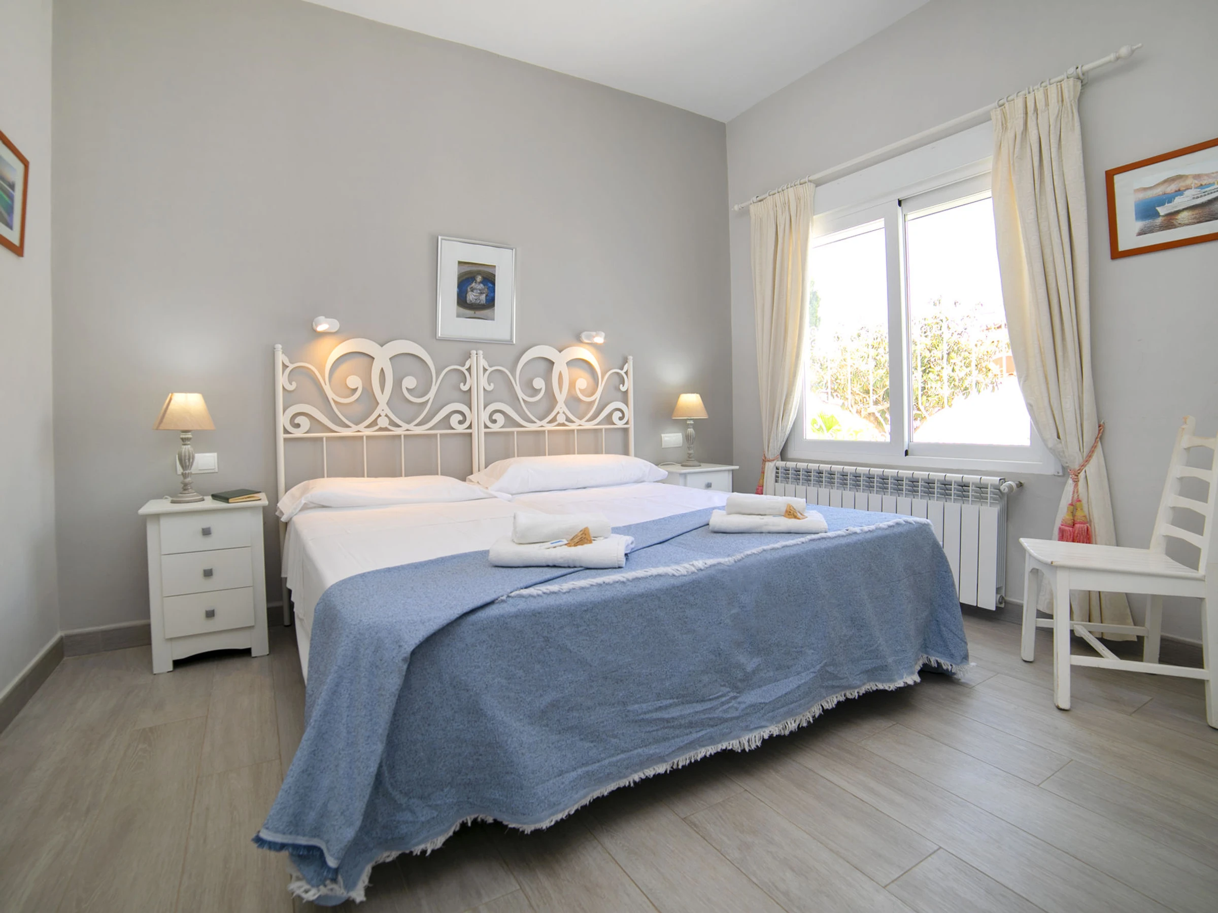 "Alan", 5-Zimmer-Haus 170 m2 auf 2 Stockwerken. Objekt geeignet für 8 Erwachsene. Geräumig und hell, zweckmässig und komfortabel eingerichtet: Wohn-/Esszimmer 35 m2 mit Digital-TV, G-Heizung, Klimaanlage und Warmluftheizung. Ausgang zum Gartensitzplatz, zum Schwimmbad. 1 Zimmer 6 m2 mit 1 Bett (135 cm, Länge 190 cm), G-Heizung, Klimaanlage und Warmluftheizung. 1 Zimmer 8 m2 mit 1 franz. Bett (180 cm, Länge 200 cm), G-Heizung, Klimaanlage und Warmluftheizung. 1 Zimmer 8 m2 mit 2 Doppelbetten (90 cm, Länge 190 cm), Dusche/Bidet/WC, G-Heizung, Klimaanlage und Warmluftheizung. Küche 7 m2 (Backofen, Geschirrspüler, 4 Glaskeramikplatten, Toaster, Wasserkocher, Mikrowelle, Tiefkühler, elektrische Kaffeemaschine) mit Durchreiche. Dusche/Bidet/WC, sep. WC. E-Heizung. Obergeschoss: (Aussentreppe) 1 Zimmer 14 m2 mit 2 Betten (90 cm, Länge 190 cm), Waschbecken, sep. WC, Klimaanlage und Warmluftheizung. Grosse Terrasse 300 m2, grosser Garten 400 m2. Terrassenmöbel, Gartengrill, Liegestühle, Loggia. Sicht auf das Schwimmbad und den Garten. Zur Verfügung: Waschmaschine, Bügeleisen, Haartrockner. Internet (WLAN, gratis). Parkplatz beim Haus. [hidden] // Reg. Nr.: ESFCTU00000303000005777000000000000000000[hidden]4