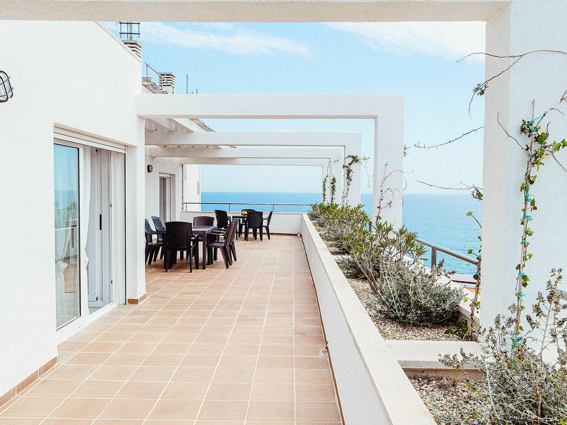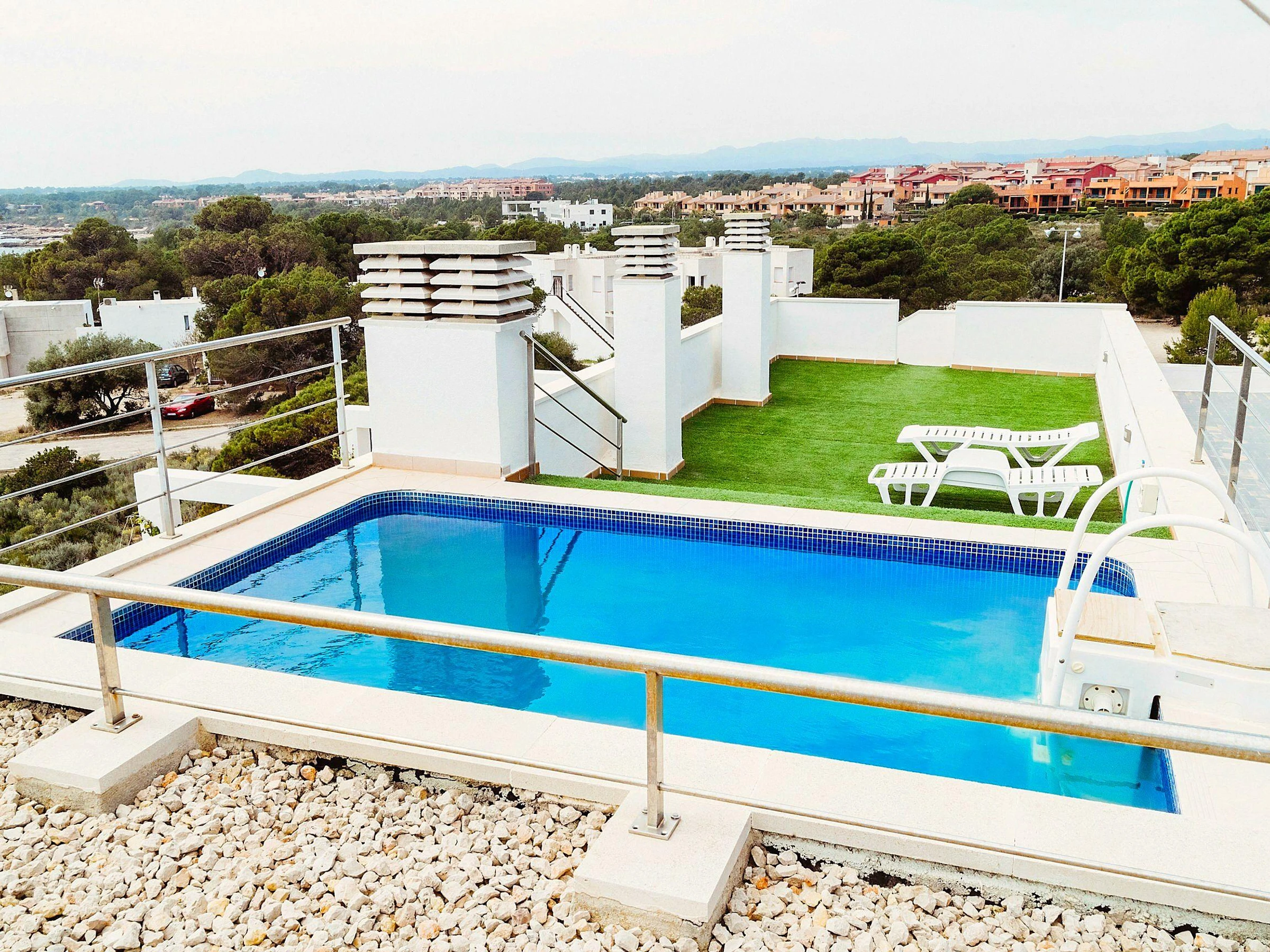 Stunning penthouse on the seafront with private pool. The house is 170 m2, and consists of 2 bedrooms with bunk beds, 2 bedrooms with double beds, 3 bathrooms, a large living room, a fully equipped kitchen, a large terrace with stunning sea views, and a solarium with a private pool . There is also an outdoor parking space. This apartment does not dispose of an elevator. DESCRIPTION OF THE AREA The Costa Dorada is the most laureated in Catalonia with 37 blue flag beaches, known for their quality and excellent state of conservation. They are beaches and small dreamy coves with turquoise and crystalline waters, most of them without crowds and some of them untouched. A perfect scenario to walk on the GR-92 route, take a bike, boat or kayak trip, or go scuba diving and discover the secrets that lie at the bottom of the Gulf of Sant Jordi. On the Costa Dorada, there is the Calafat sea front, where we find the urbanization, racing circuit and marina of the same name. The quiet and high standing urbanization of Calafat , with more than 2 km of coastline, is located in the municipality of the fishing village of L'Ametlla de Mar, known for the high quality of its fish. 20 minutes to the south you will find the Delta del Ebro Natural Park and you can try one of the restaurants where the best rice in the country is cooked. You can dive with the largest tuna in the world and enjoy exciting moments, sailing on a modern and innovative catamaran. PorAventura World is a unique holiday destination full of fun for the whole family, just 30 minutes from Calafat.