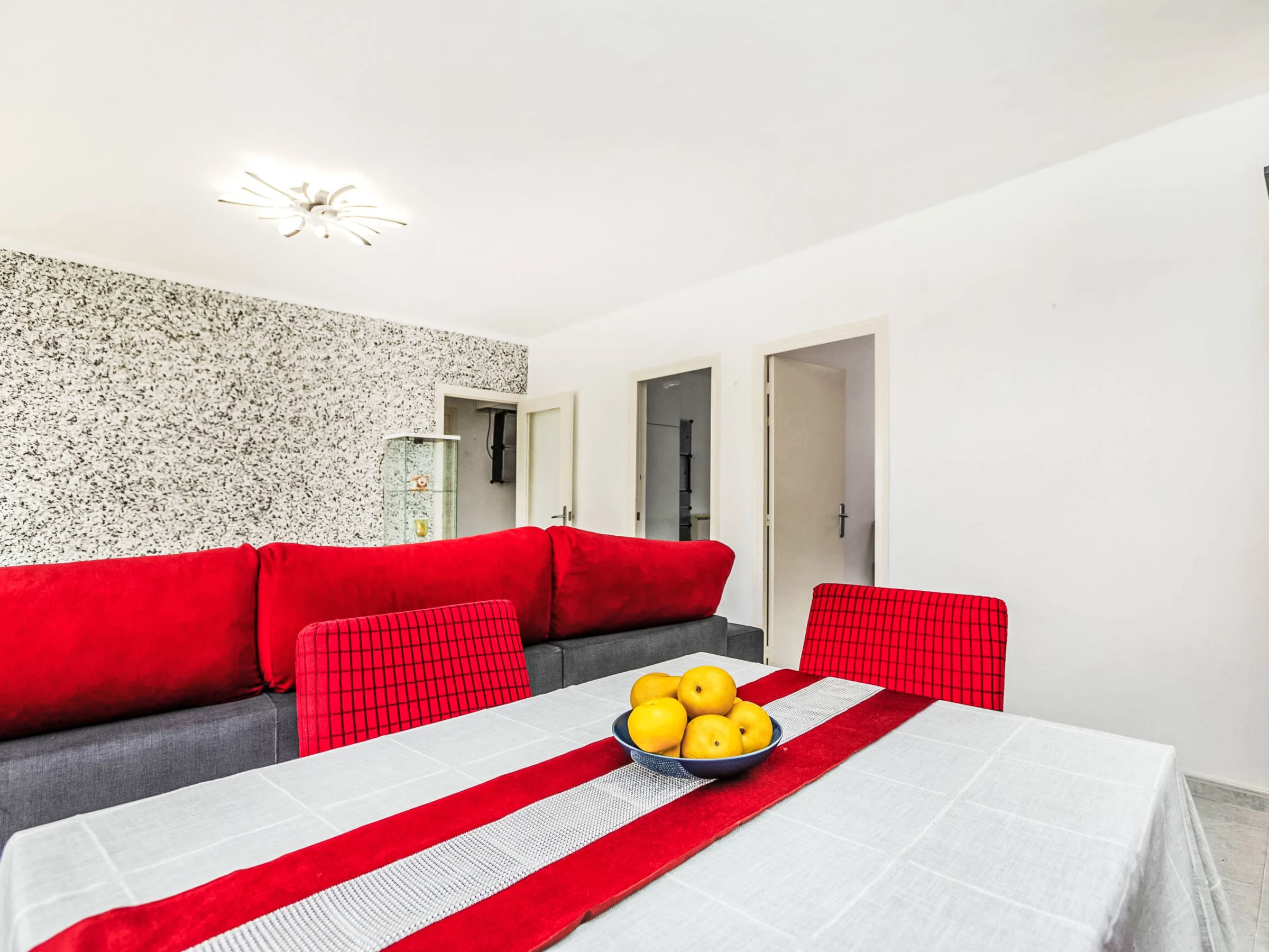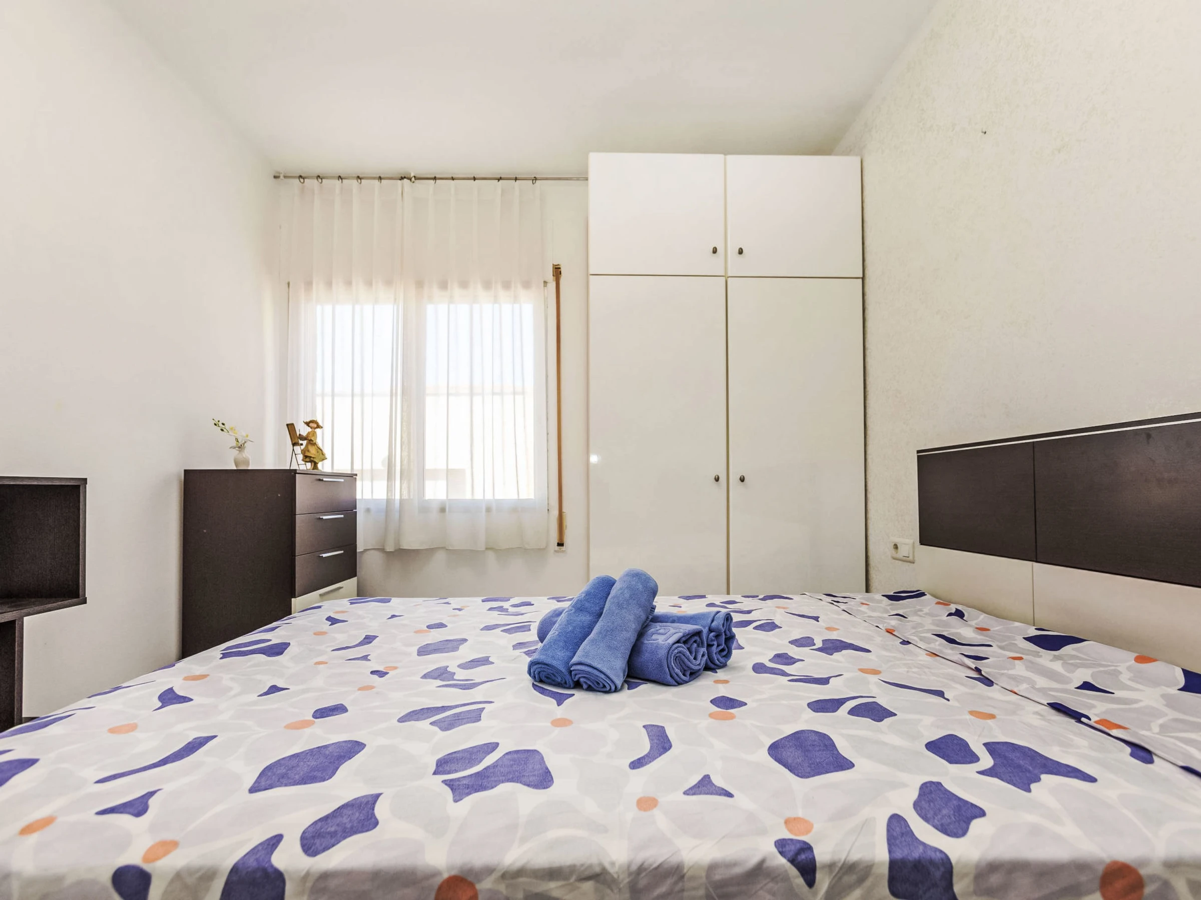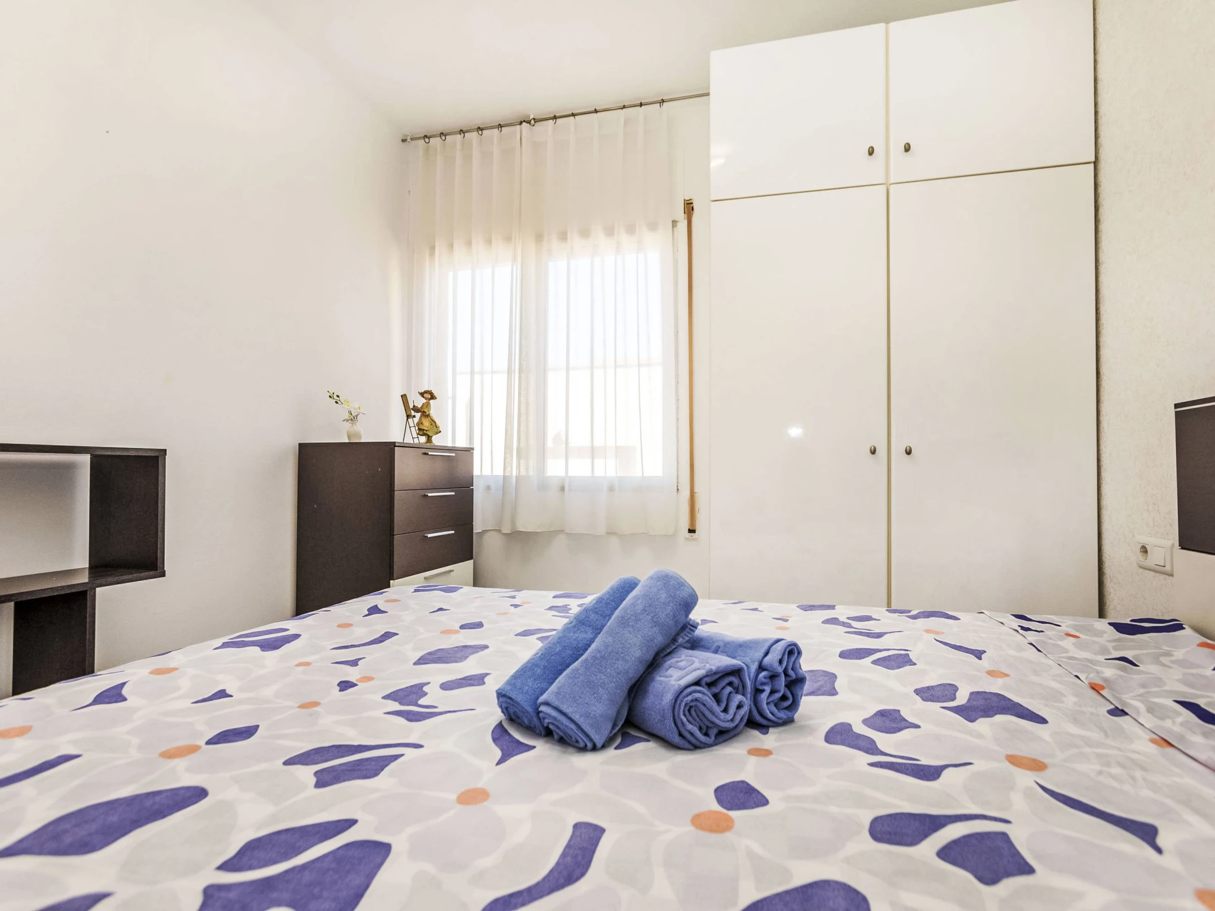 "Palamos", 3-Zimmer-Wohnung 70 m2. Objekt geeignet für 2 Erwachsene + 2 Kinder. Zweckmässig und komfortabel eingerichtet: Wohn-/Esszimmer mit Esstisch, Digital-TV und Klimaanlage. Ausgang zum Balkon. 1 Zimmer mit 1 franz. Bett (135 cm). 1 Zimmer mit 1 Bett (130 cm, Länge 185 cm). Küche (Backofen, 4 Glaskeramikplatten, Toaster, Wasserkocher, Mikrowelle, elektrische Kaffeemaschine). Dusche/WC. Keine Heizmöglichkeit. Balkon. Balkonmöbel. Seitliche Sicht auf das Meer. Zur Verfügung: Waschmaschine, Bügeleisen, Haartrockner. Bitte beachten: geeignet für Familien. Kein Fahrstuhl. [hidden]