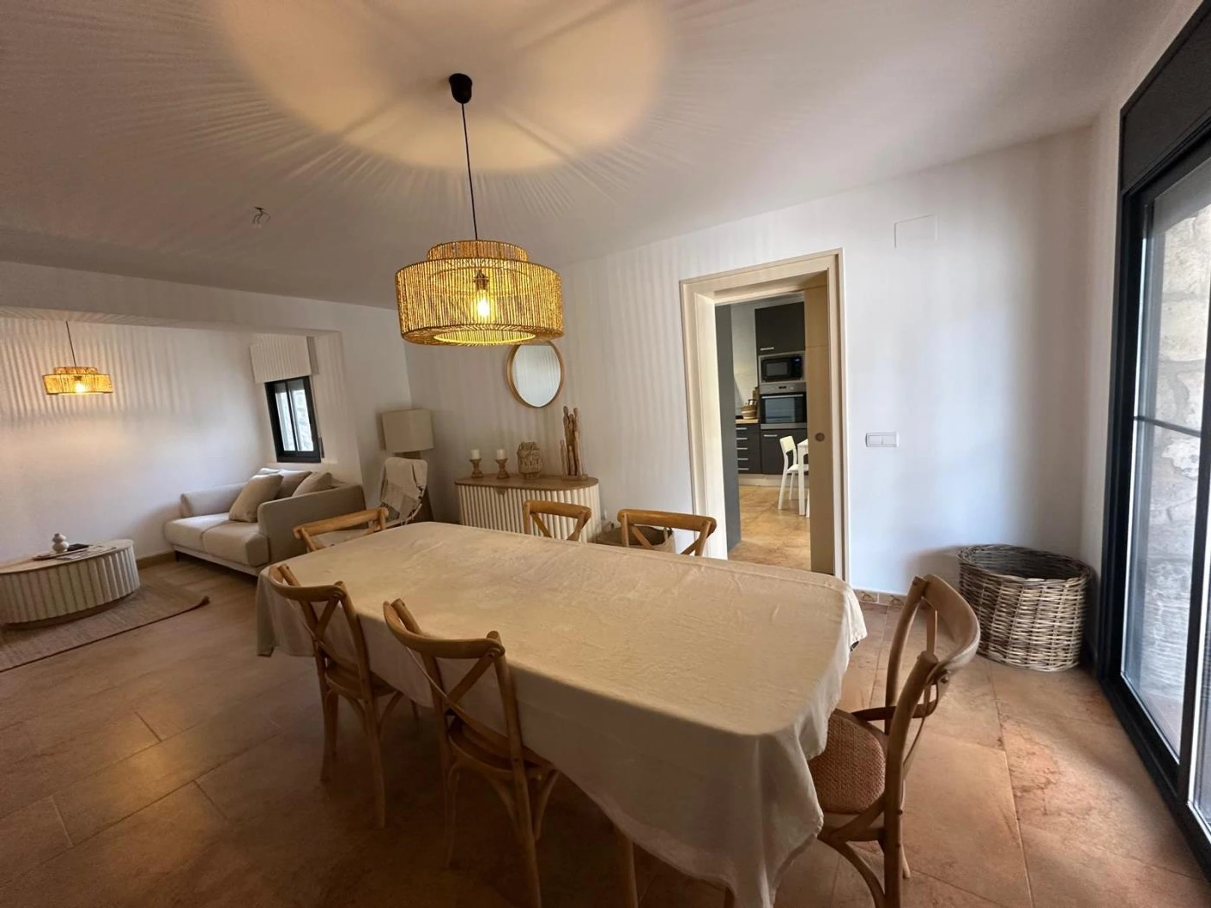Das einstöckige Haus verfügt über ein Wohn-/Esszimmer mit Kamin und Zugang zu einer großen Terrasse.Eine moderne und gut ausgestattete Kü[hidden] gibt 4 Schlafzimmer, ein Schlafzimmer mit Doppelbett (160) mit eigenem Bad mit Dusche, ein Schlafzimmer mit Doppelbett (160), ein Schlafzimmer mit Doppelbett (140) und ein weiteres Badezimmer mit Dusche.