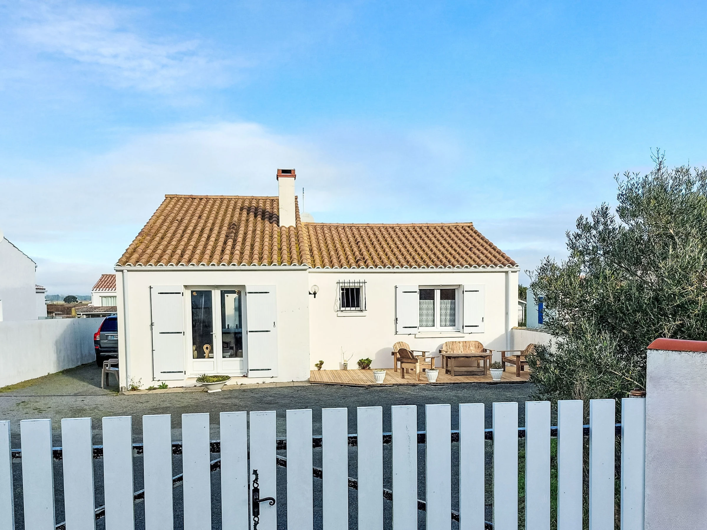 L'Epine-Noirmoutier: Haus "La Bosse (Villa + Dépendance)". 1.7 km vom Zentrum von L'Epine, 5 km vom Zentrum von Noirmoutier-en-L'Ile, 400 m vom Waldrand, 630 m vom Meer, 630 m vom Strand, in einer Sackgasse. Zur Alleinbenutzung: Grundstück 870 m2 (eingezäunt) mit Rasen, wunderschöner Garten zum Entspannen. Terrasse (60 m2), Parkplatz (für 3 Autos). Einkaufsgeschäft 1.7 km, Bar 200 m, Bushaltestelle "RP de l'Europe, La Guérinière" 4.8 km, Sandstrand "de la Bosse" 630 m. Sporthafen, Segelschule 800 m. Nahe gelegene Sehenswürdigkeiten: Marais Salants de l'île de Noirmoutier 500 m, La Guérinière 5 km, Port de l'Herbaudière 6 km, Bois de la Chaize 8 km, Le Gois 13 km, Challans 40 km.