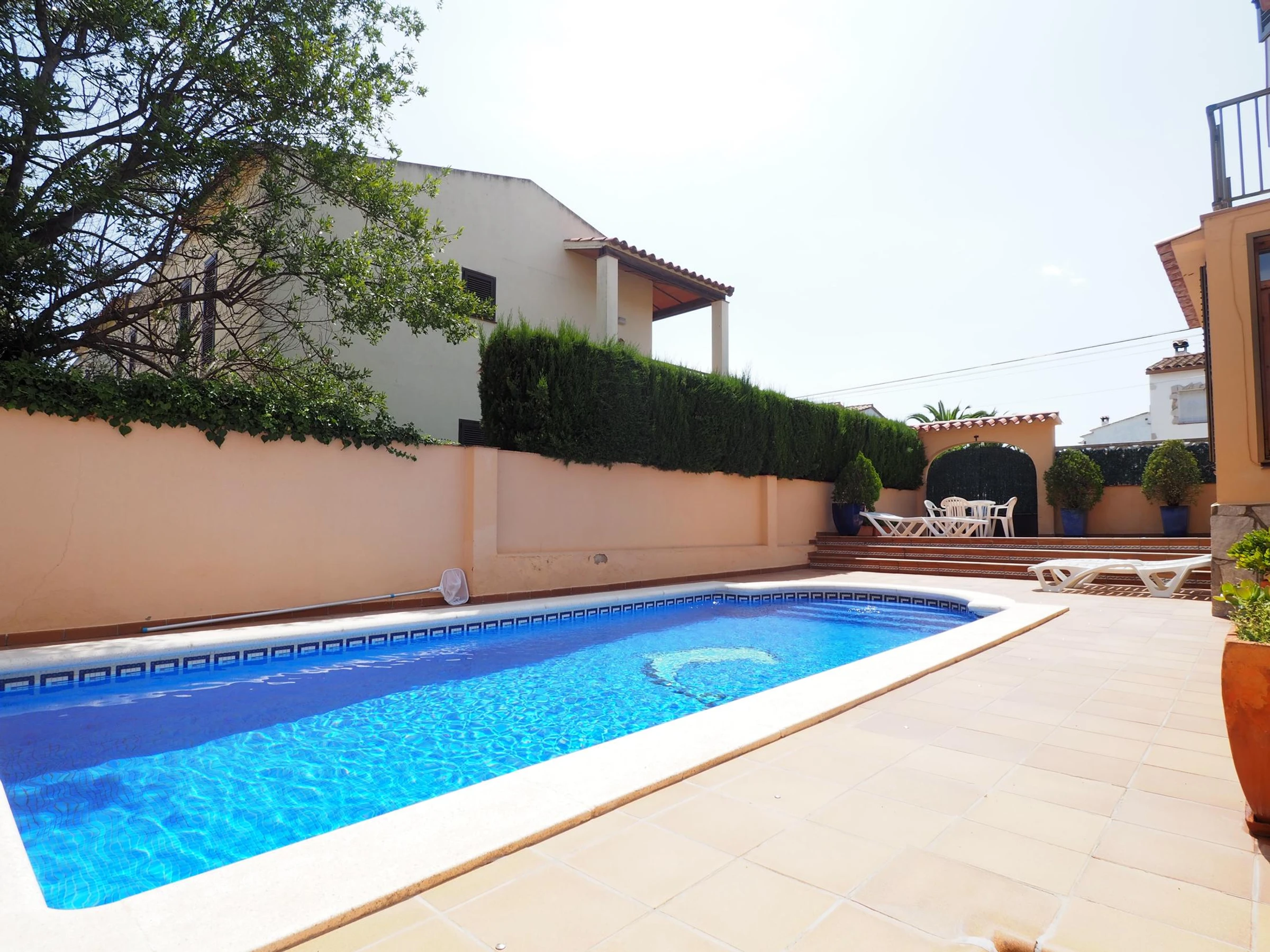 Villa FLUVIÀ mit 4 Schlafzimmern und privatem Pool. Das Haus ist wie folgt aufgeteilt: Erdgeschoss mit großem Wohn-/Esszimmer, separater Küche und einem Schlafzimmer (2 Einzelbetten) mit eigenem Duschbad. Im Obergeschoss befinden sich 3 Schlafzimmer (2 Doppelbetten, 2 Einzelbetten), ein Badezimmer mit Badewanne und eine Terrasse. Der gesamte Garten ist gefliest und bietet einen Essbereich, einen Grillplatz und einen großen 8 x 4 Meter großen Swimmingpool mit Liegestühlen. Sat-TV und WLAN sind inklusive. Nur 10 Gehminuten vom Strand von Riells und allen Geschäften entfernt. Vermietung von Sonntag bis Sonntag. [hidden] / Nichtraucherunterkunft / Maximale Belegung: 8 Personen (einschließlich Kinder und Babys) *Die Fotos sind nicht verbindlich. Möbel und Dekoration können von den Abbildungen abweichen. Energieausweis (EPC): 241 kWh/m², 43 kg CO₂/m² NRA: ESFCTU00001701000010079200000000000000[hidden]-778
