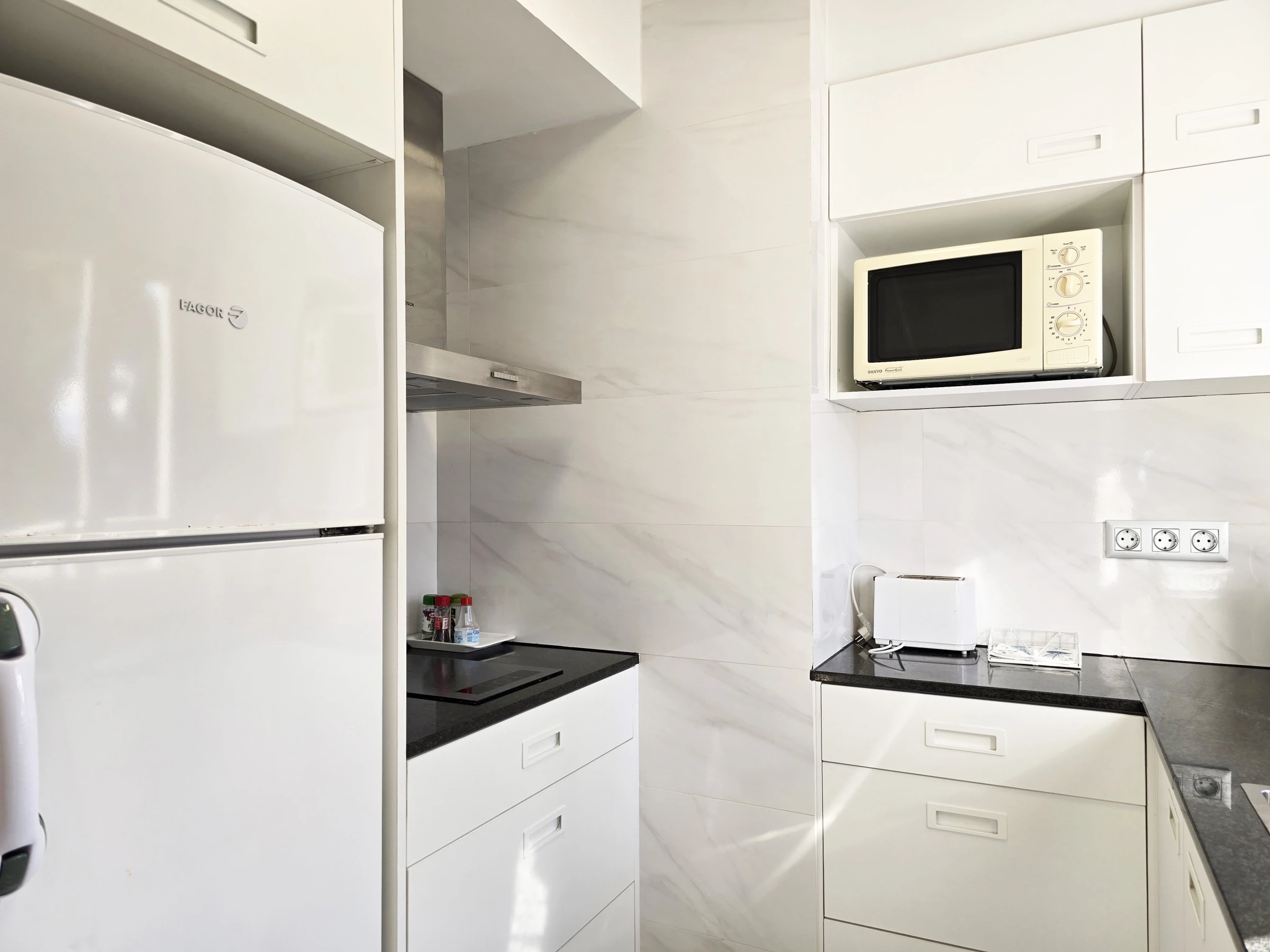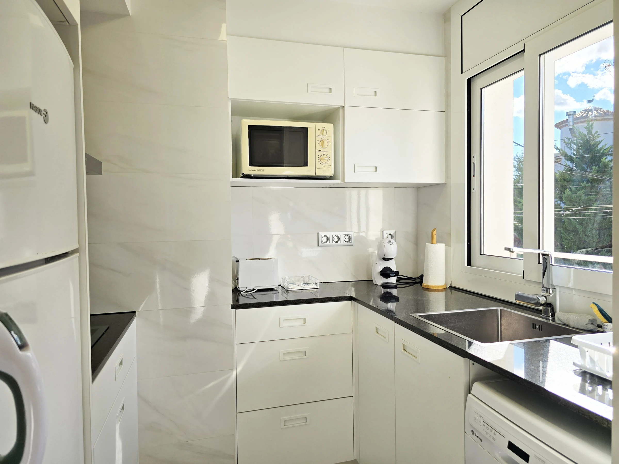 Dieses separate küche, mit ceranfeld, ist ausgestattet in kühlschrank, mikrowelle, gefrierschrank, spülmaschine und kaffeemaschine.