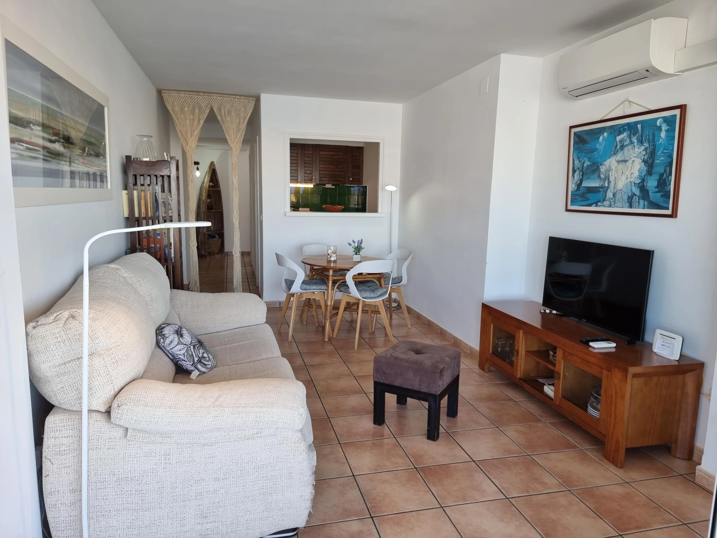 Die Wohnung verfügt über zwei Schlafzimmer (eines mit Doppelbett und eines mit Dreibettzimmer), ein Badezimmer, eine voll ausgestattete Küche, ein Wohnzimmer und eine Terrasse mit Meerblick.