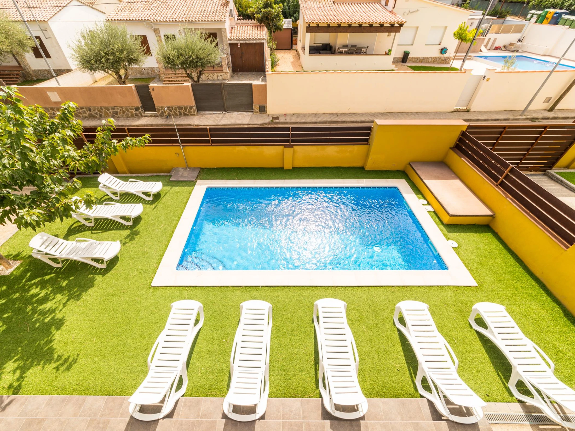 Die Unterkunft verfügt über garten, gartenmöbel, umzäuntes grundstück, terrasse, waschmaschine, grill, bügeleisen/-brett, internet (WLAN), haartrockner, balkon, heizung, klimaanlage, swimming-pool privater pool, parkplatz im freien in auf dem grundstück, 1 Fernseher.