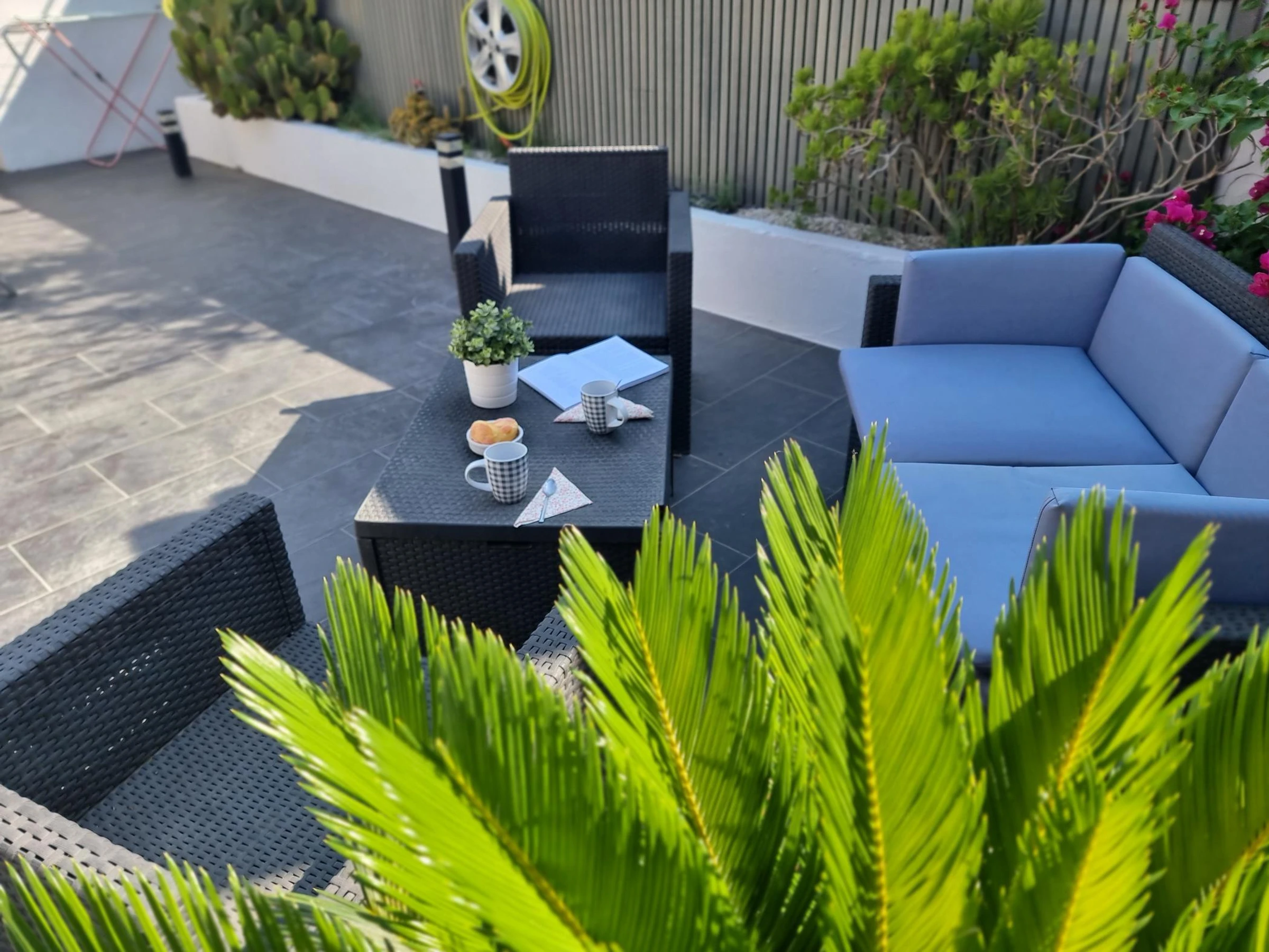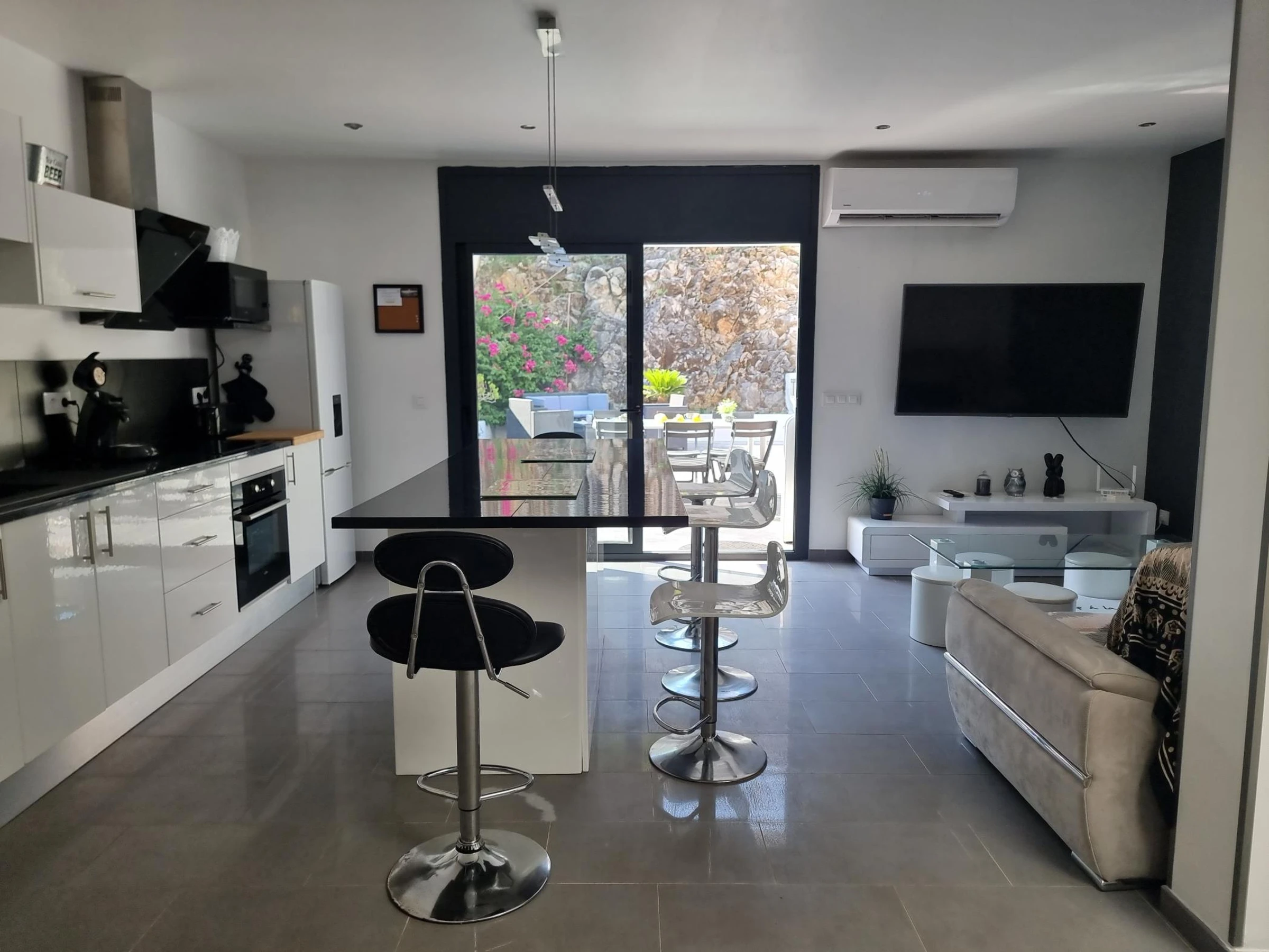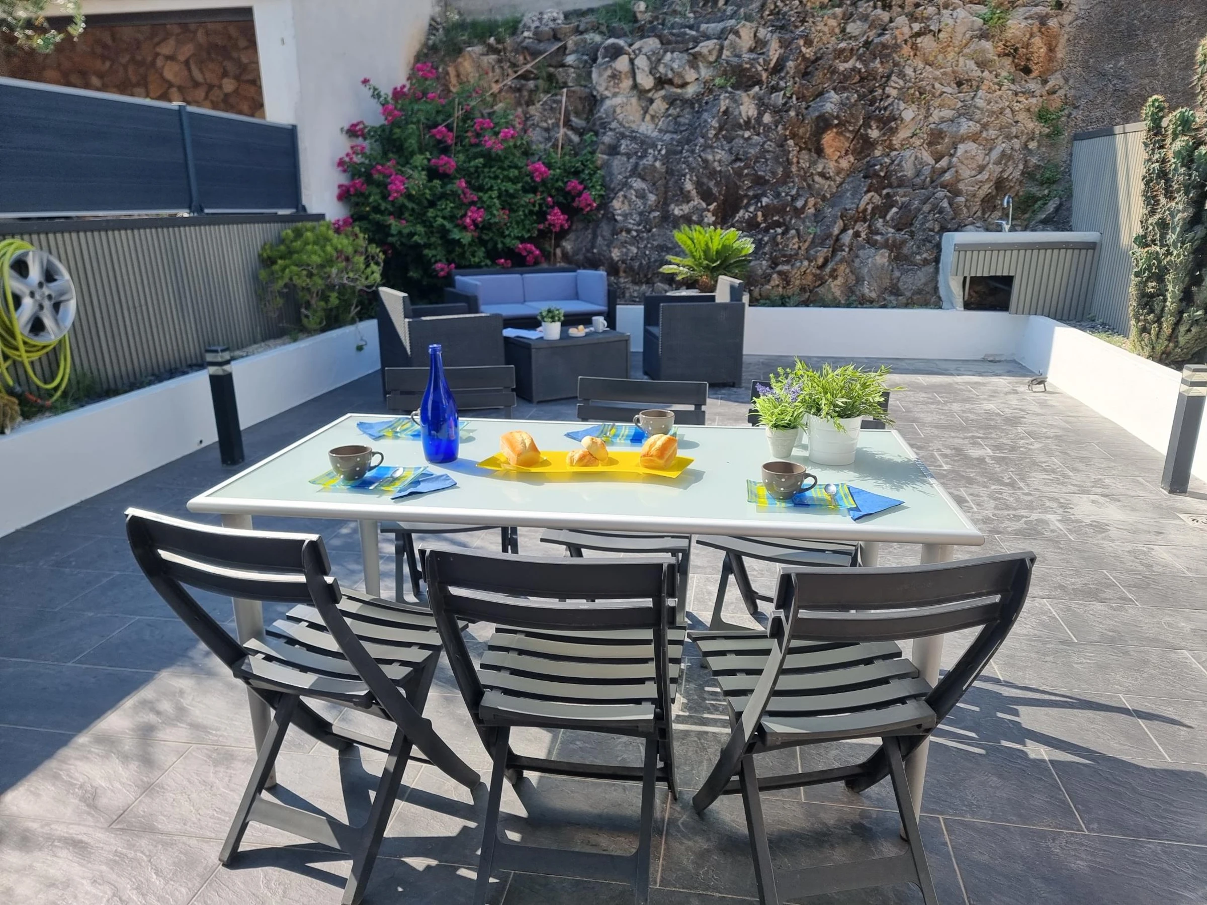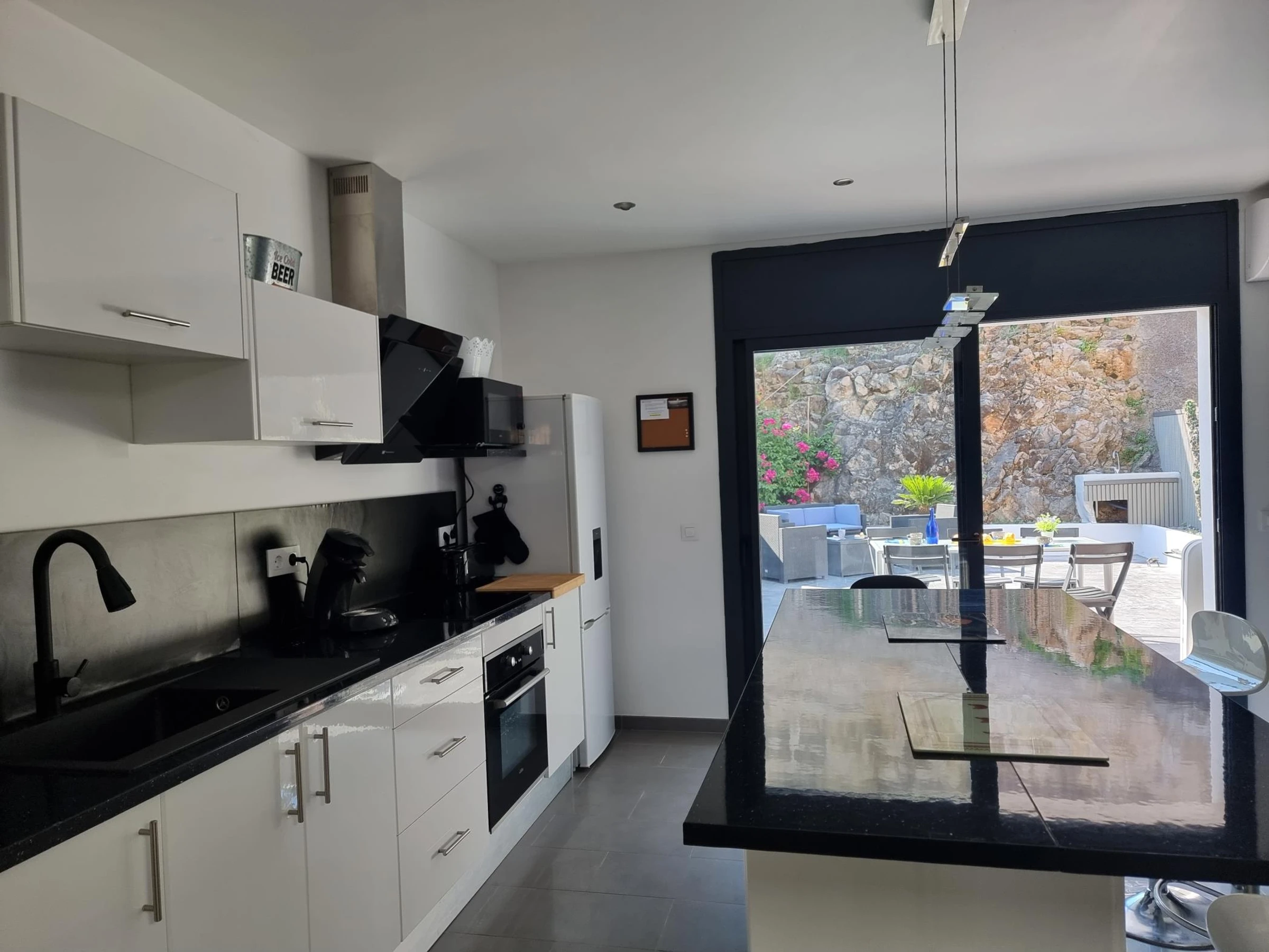 Das Haus liegt in einer ruhigen Wohngegend am Ortseingang. Es verfügt über zwei Doppelzimmer, ein Badezimmer und eine geräumige Wohnküche mit direktem Zugang zu einer großen Terrasse mit Grill.