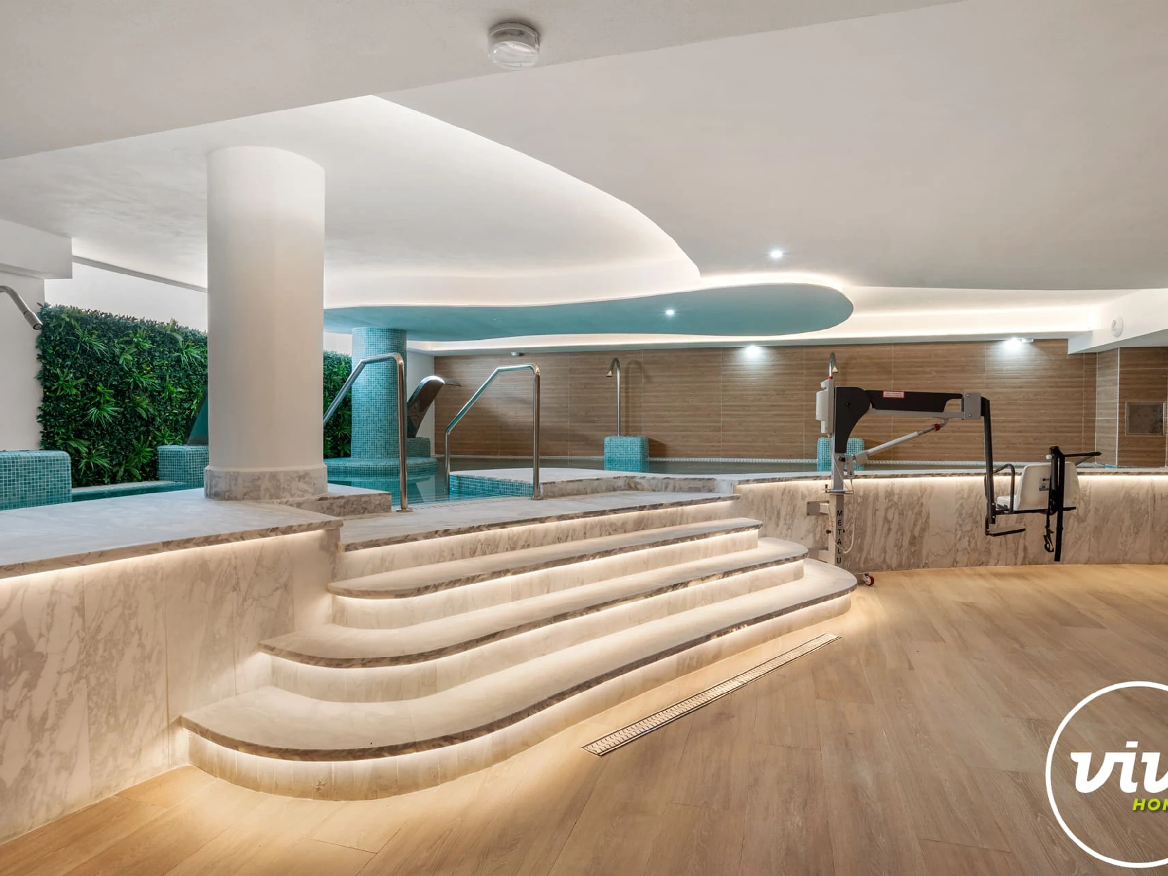 Die Unterkunft verfügt über aufzug, gartenmöbel, umzäuntes grundstück, 18 m² terrasse, waschmaschine, trockner, bügeleisen/-brett, safe, internet (WLAN), haartrockner, balkon, fitnessraum, spa, zentralheizung, klimaanlage in der ganzen unterkunft, swimming-pool gemeinschaftlicher swimming pool + kinderbecken, klimatisierter pool gemeinschaftlicher swimming-pool, garage in auf dem grundstück, 1 Fernseher.