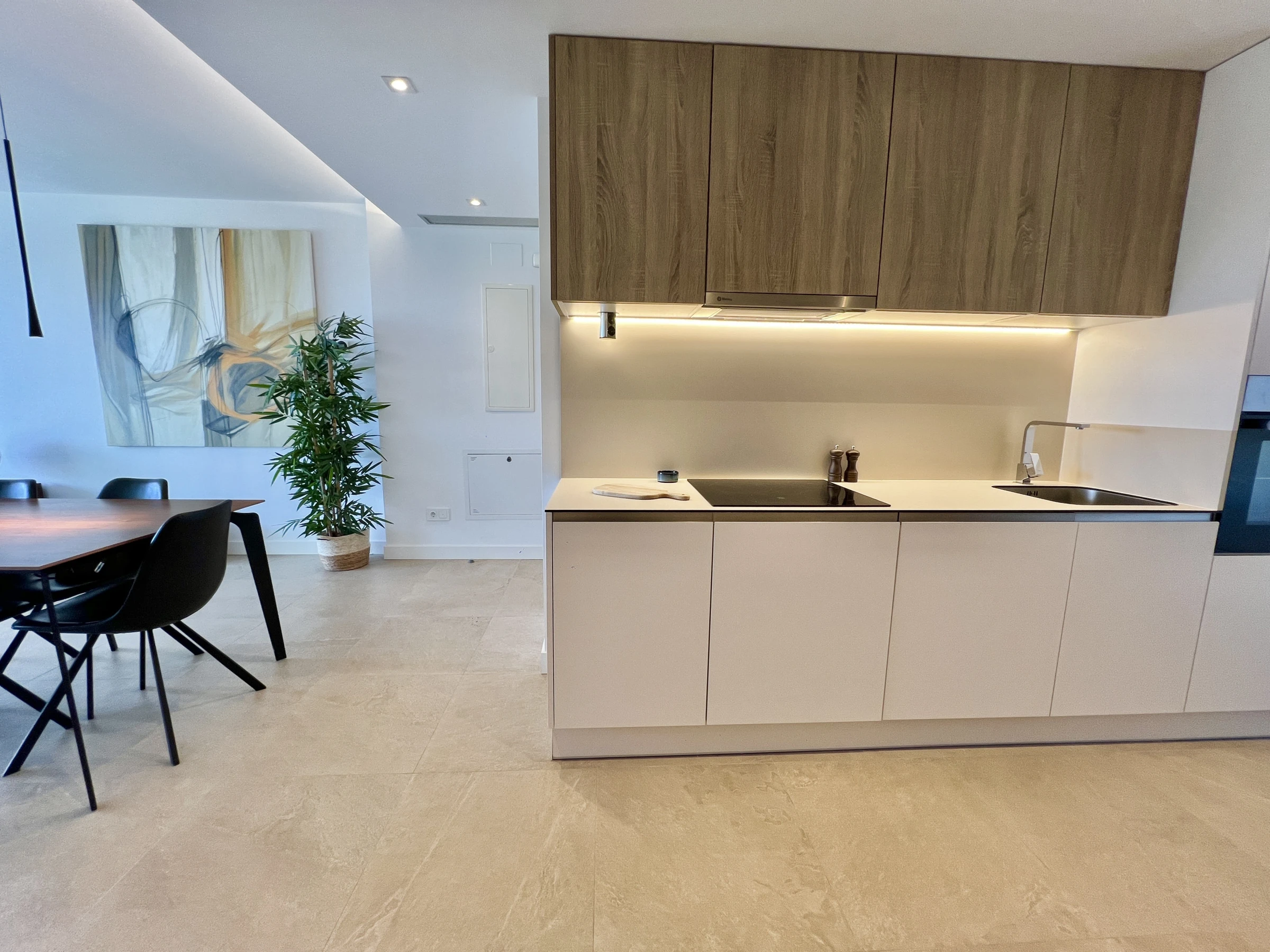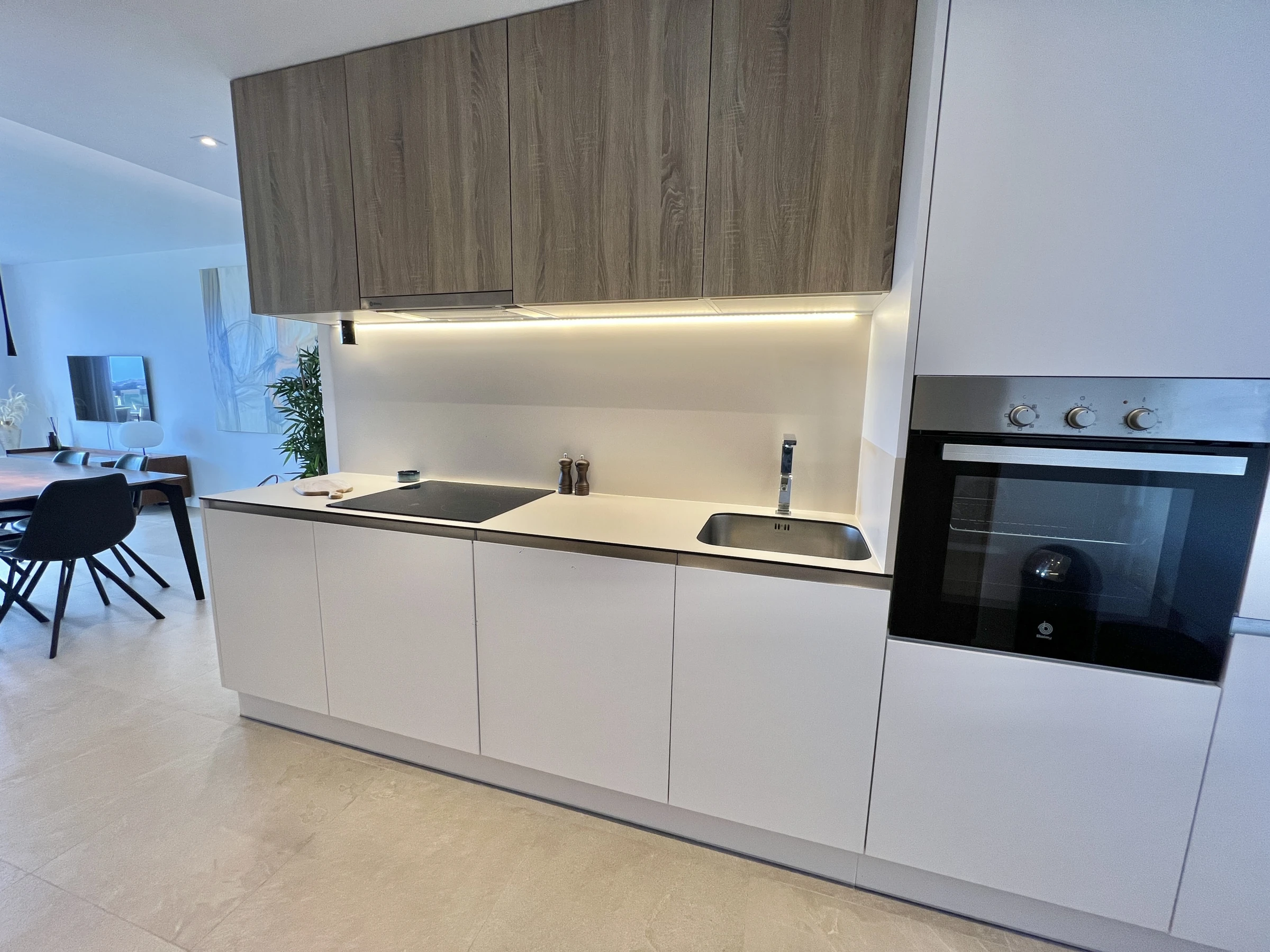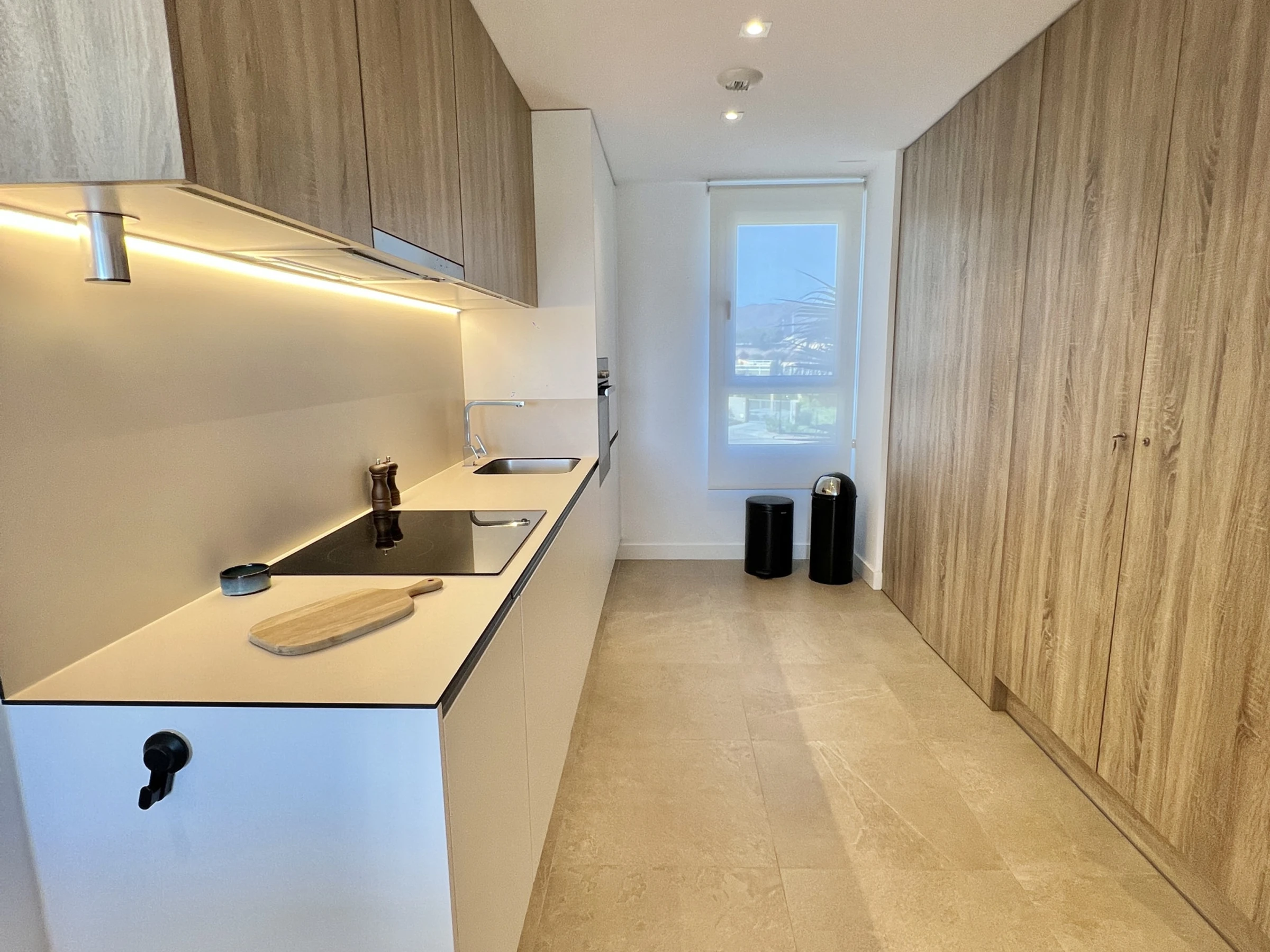 Dieses offene küche, elektrisches kochfeld, ist ausgestattet in kühlschrank, mikrowelle, backofen, gefrierschrank, spülmaschine, geschirr/besteck, kochutensilien, kaffeemaschine, toaster und wasserkocher.