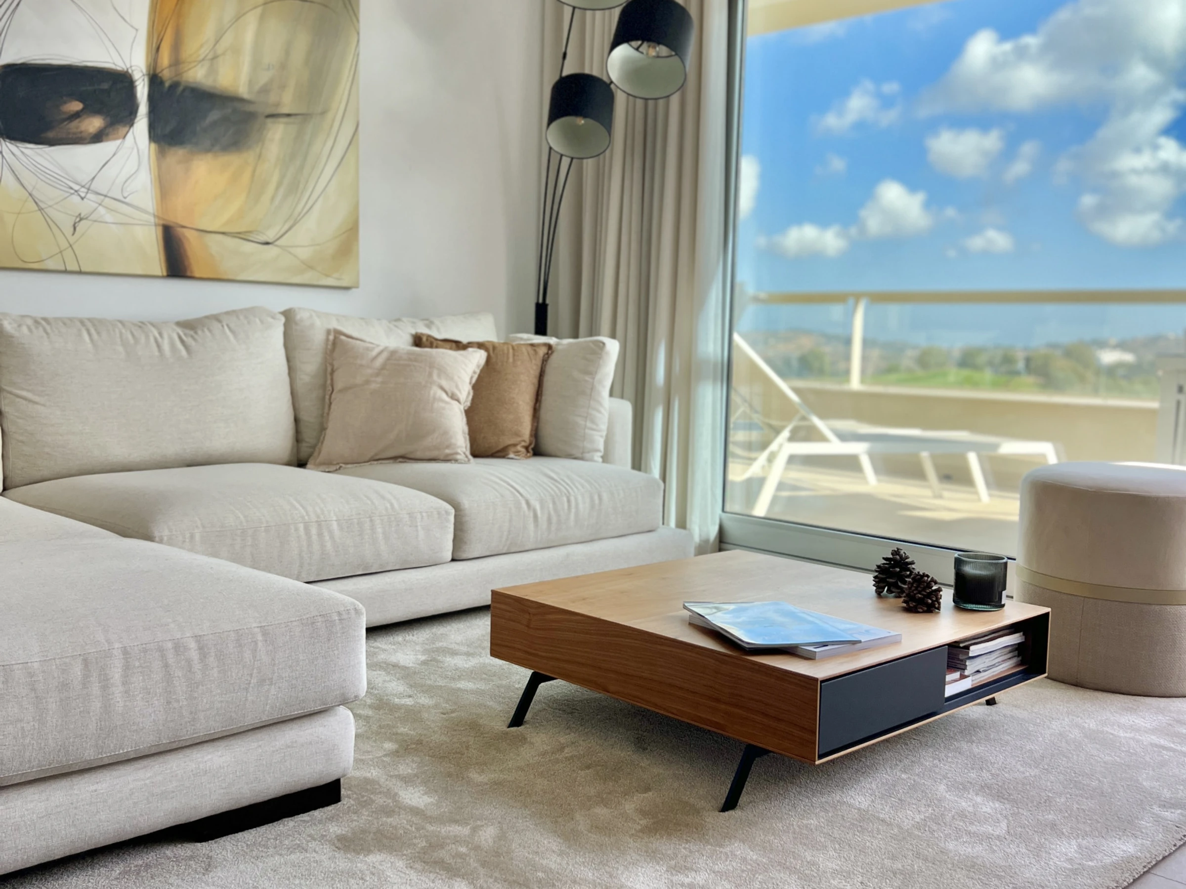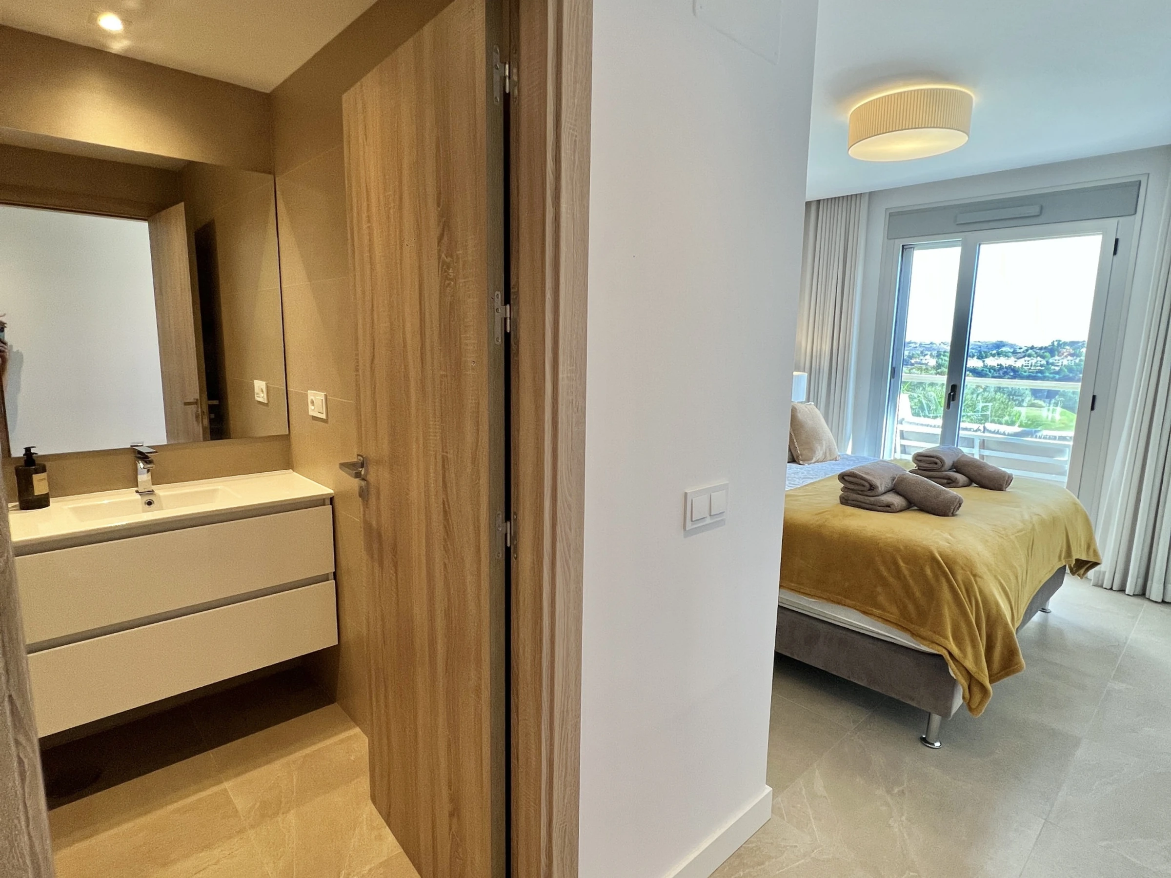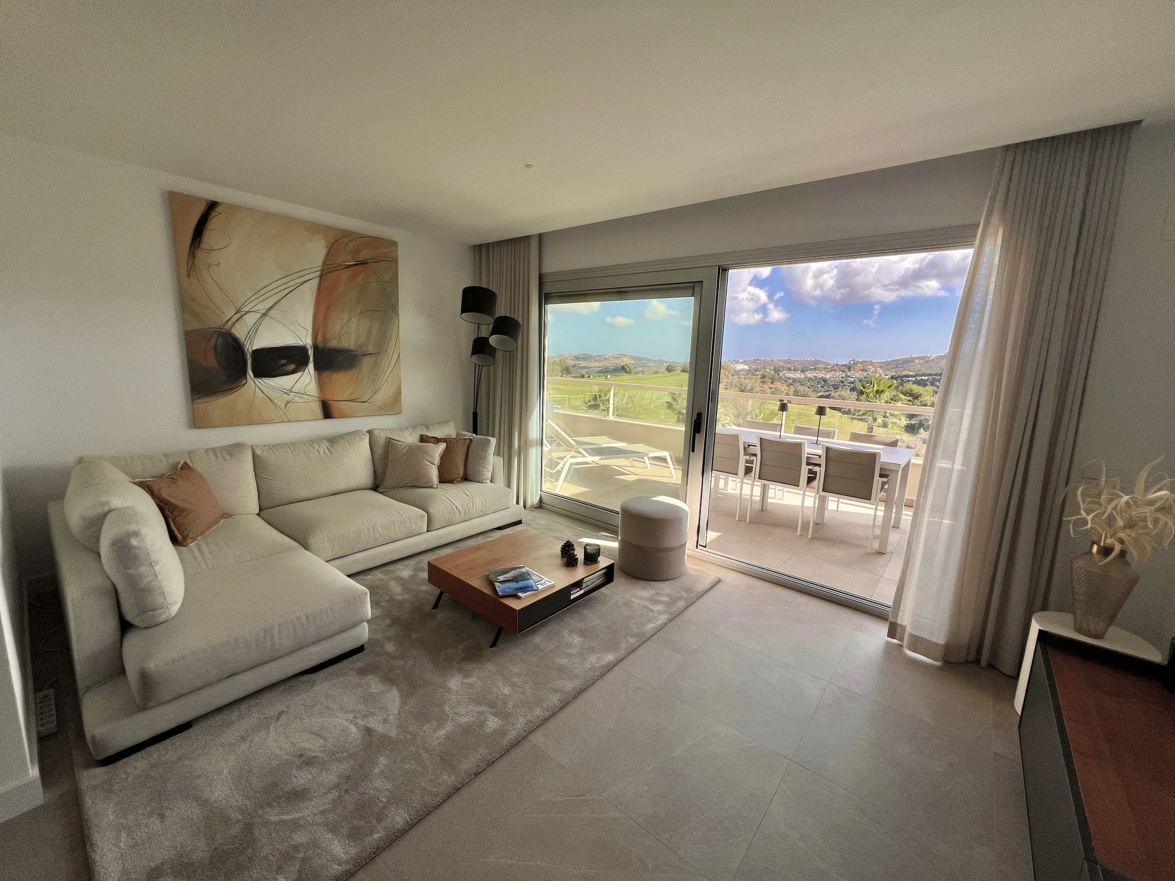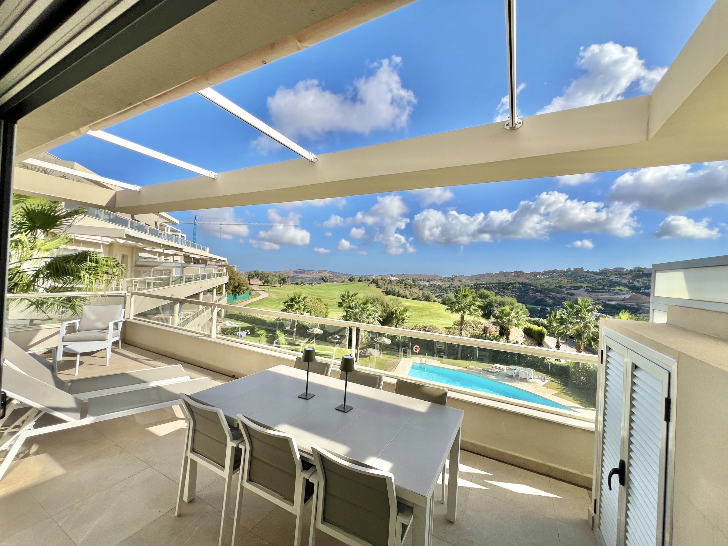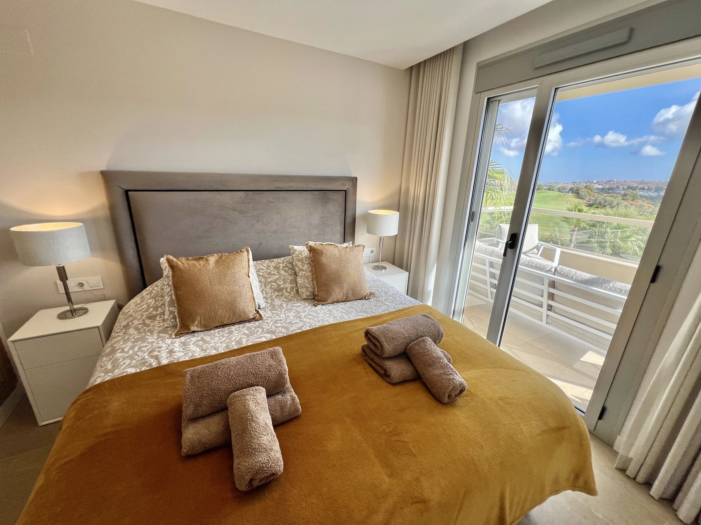 Unterkunft Unterkunft hat 90 m² befindet sichgeschmackvoll ausgestattet und moderne, Die Unterkunft befindet sich in der Nähe von direkt am golfplatz, mit Blick auf den Garten und den Pool.