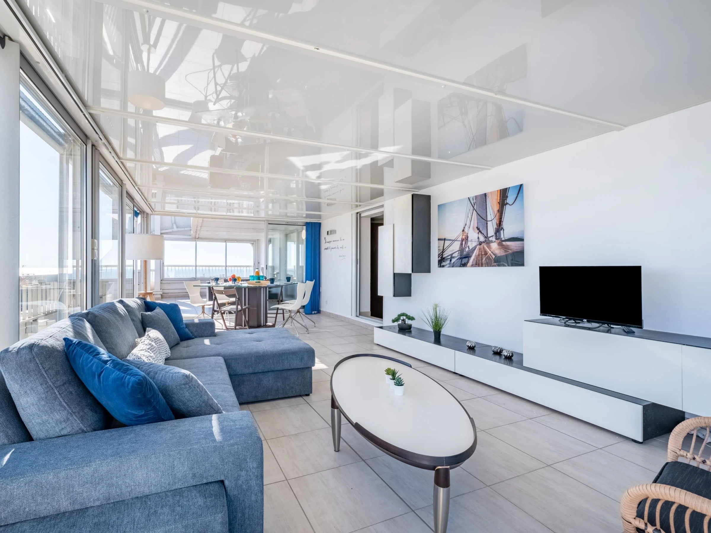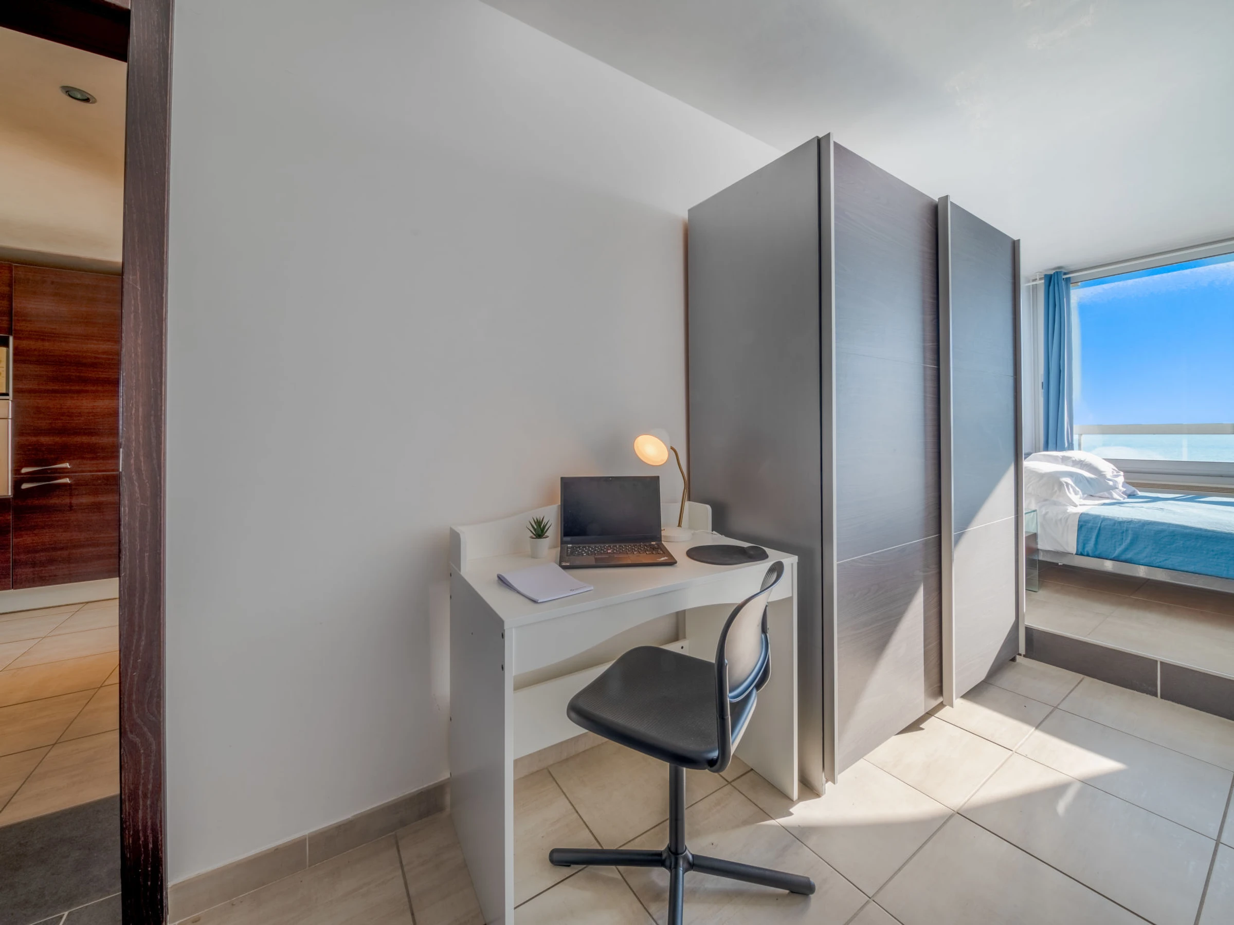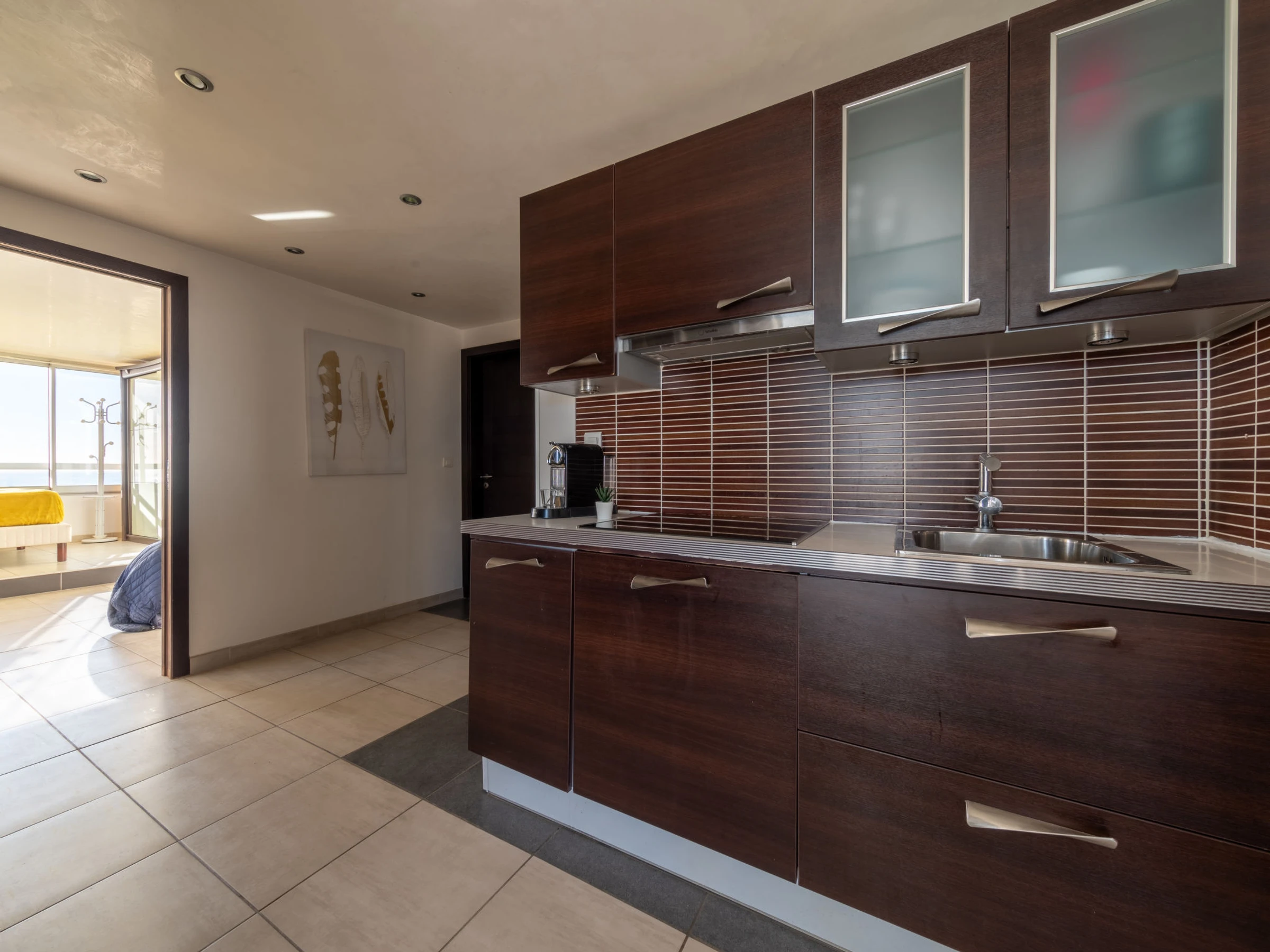 3-Zimmer-Wohnung 130 m2 im 7. Stock. Geräumig, komfortabel und schön eingerichtet: Wohn-/Esszimmer mit TV (Flachbildschirm). Ausgang zur Terrasse. 1 Zimmer mit 1 Bett (90 cm, Länge 190 cm), 1 franz. Bett (160 cm, Länge 190 cm), Klimaanlage. 1 Zimmer mit 1 Bett (80 cm, Länge 190 cm), 1 franz. Bett (140 cm, Länge 190 cm). Küche (Backofen, Geschirrspüler, 4 Induktionskochplatten, Toaster, Wasserkocher, Mikrowelle, elektrische Kaffeemaschine, Kapseln für die Kaffeemaschine (NESPRESSO) extra). Dusche/WC. E-Heizung. Grosse Terrasse 30 m2. Terrassenmöbel. Sicht auf das Meer. Zur Verfügung: Waschmaschine. Internet (Wireless LAN, gratis). Garage (1 Auto), Höhe 180 cm, Breite 270 cm. Bitte beachten: Rauchmelder. Inserat einer Privatperson nach Artikel 155, IV, CGI.