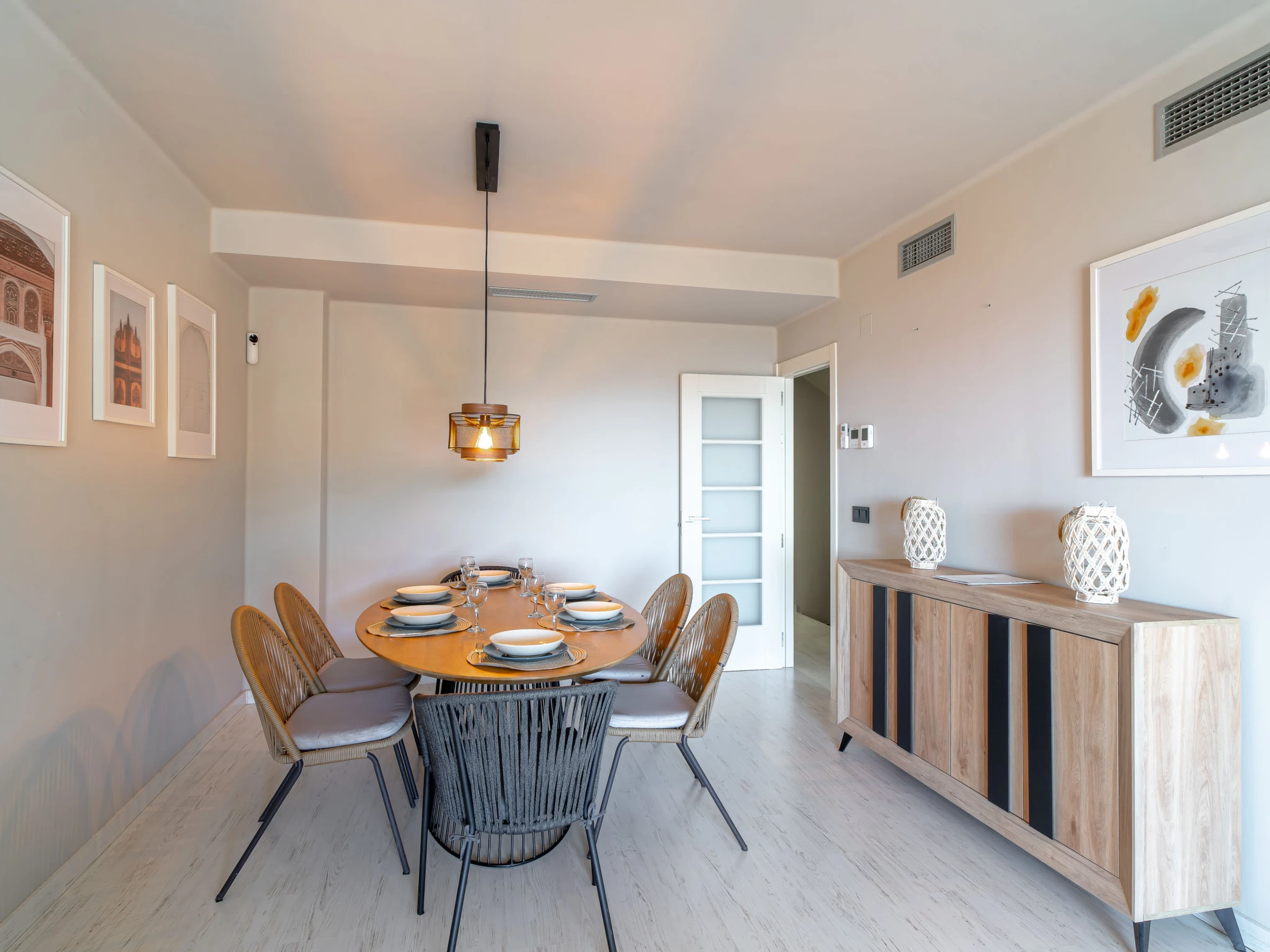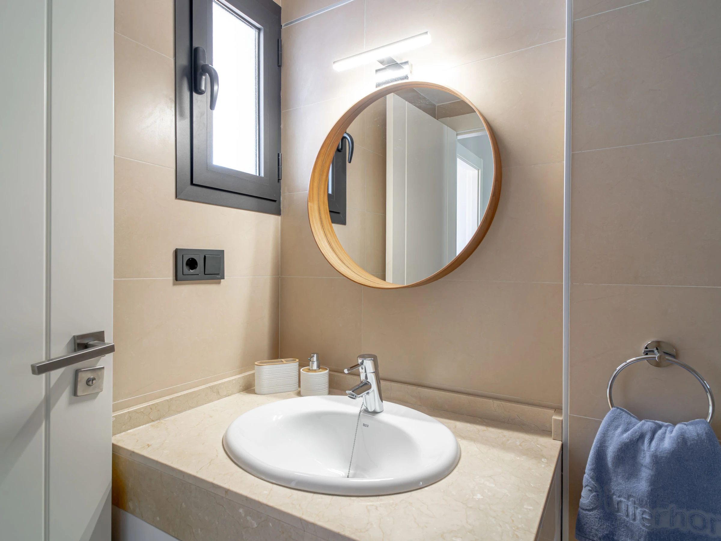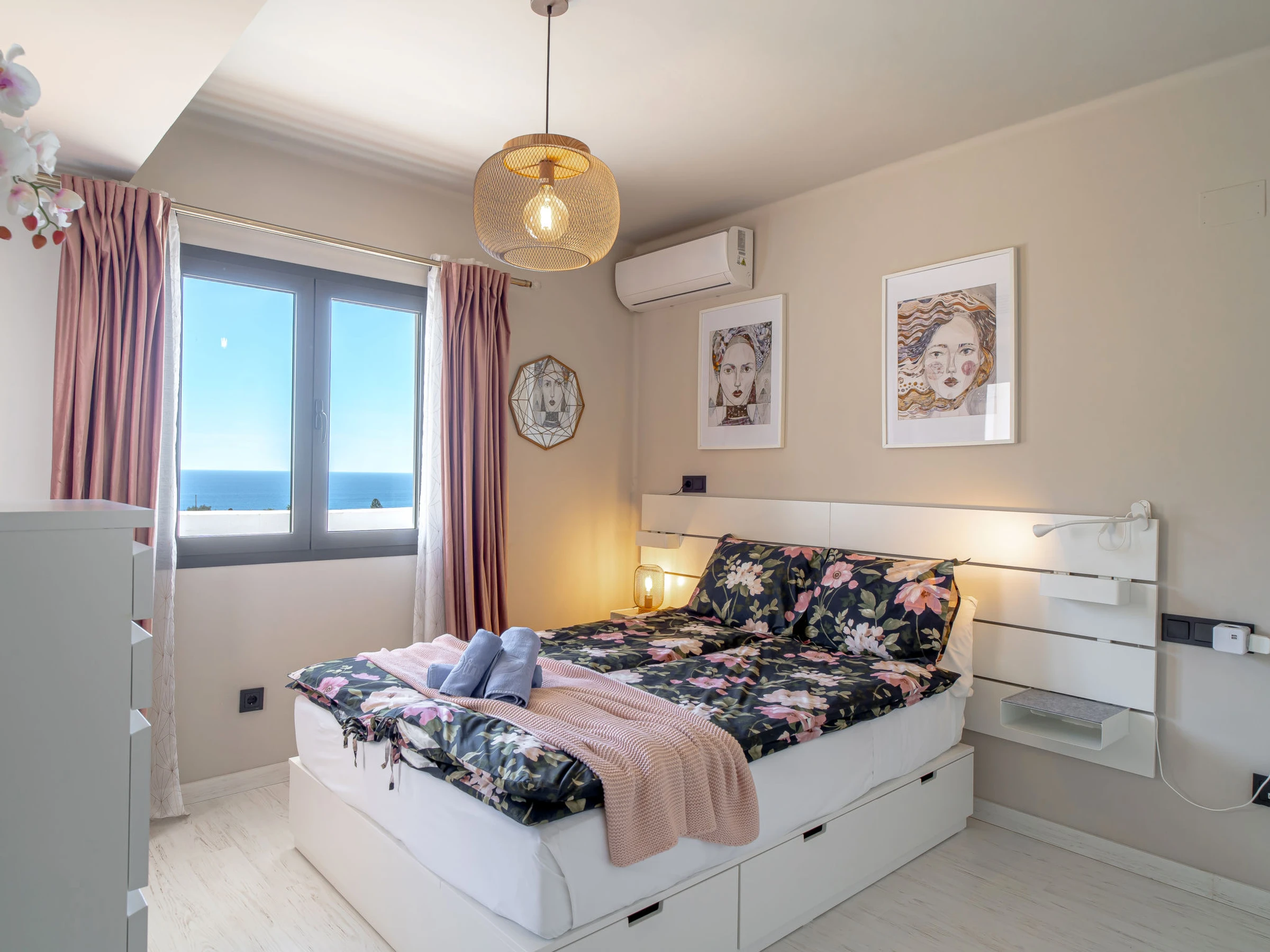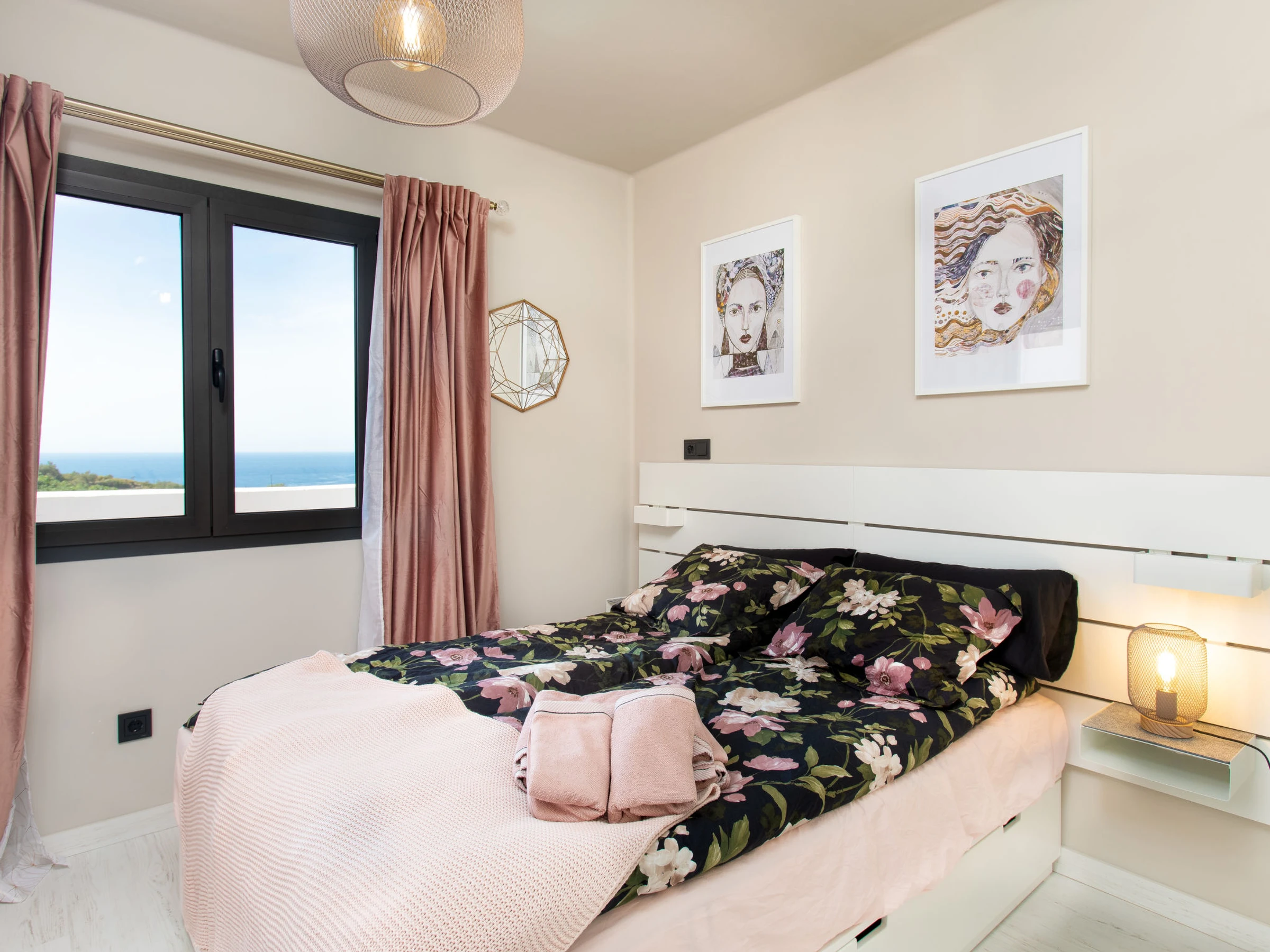 "Melon", 4-Zimmer-Reihenhaus [hidden] m2. Geräumig und hell, komfortabel und geschmackvoll eingerichtet: Wohn-/Esszimmer mit Digital-TV und Klimaanlage. Ausgang zur Terrasse. Küche (Backofen, Geschirrspüler, 4 Glaskeramikplatten, Toaster, Wasserkocher, Mikrowelle, elektrische Kaffeemaschine). Dusche/WC. Keine Heizmöglichkeit. Obergeschoss: 1 Zimmer mit 1 franz. Bett ([hidden] cm, Länge [hidden] cm), Klimaanlage. Ausgang zur Terrasse. 1 Zimmer mit 1 franz. Bett ([hidden] cm, Länge [hidden] cm), Klimaanlage. Ausgang zur Terrasse. Bad/WC. 2. Obergeschoss: 1 Zimmer mit 1 franz. Bett ([hidden] cm, Länge [hidden] cm), Klimaanlage. Ausgang zur Terrasse. Dusche/WC. 2 grosse Terrassen. Terrassenmöbel. Panoramasicht auf das Meer. Zur Verfügung: Waschmaschine, Bügeleisen, Babybett bis 3 Jahre, Haartrockner. Internet (WLAN, gratis). [hidden] // Reg. Nr.: ESFCTU[hidden][hidden][hidden]3