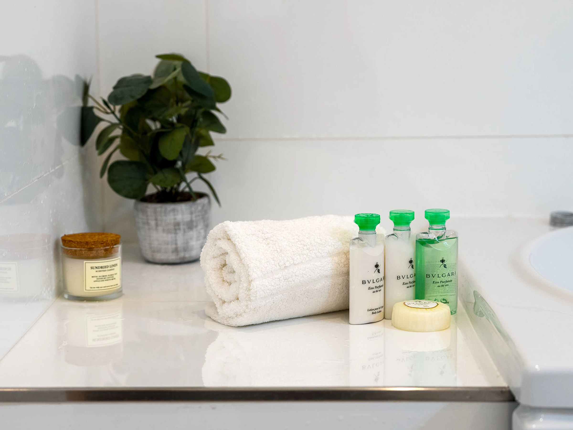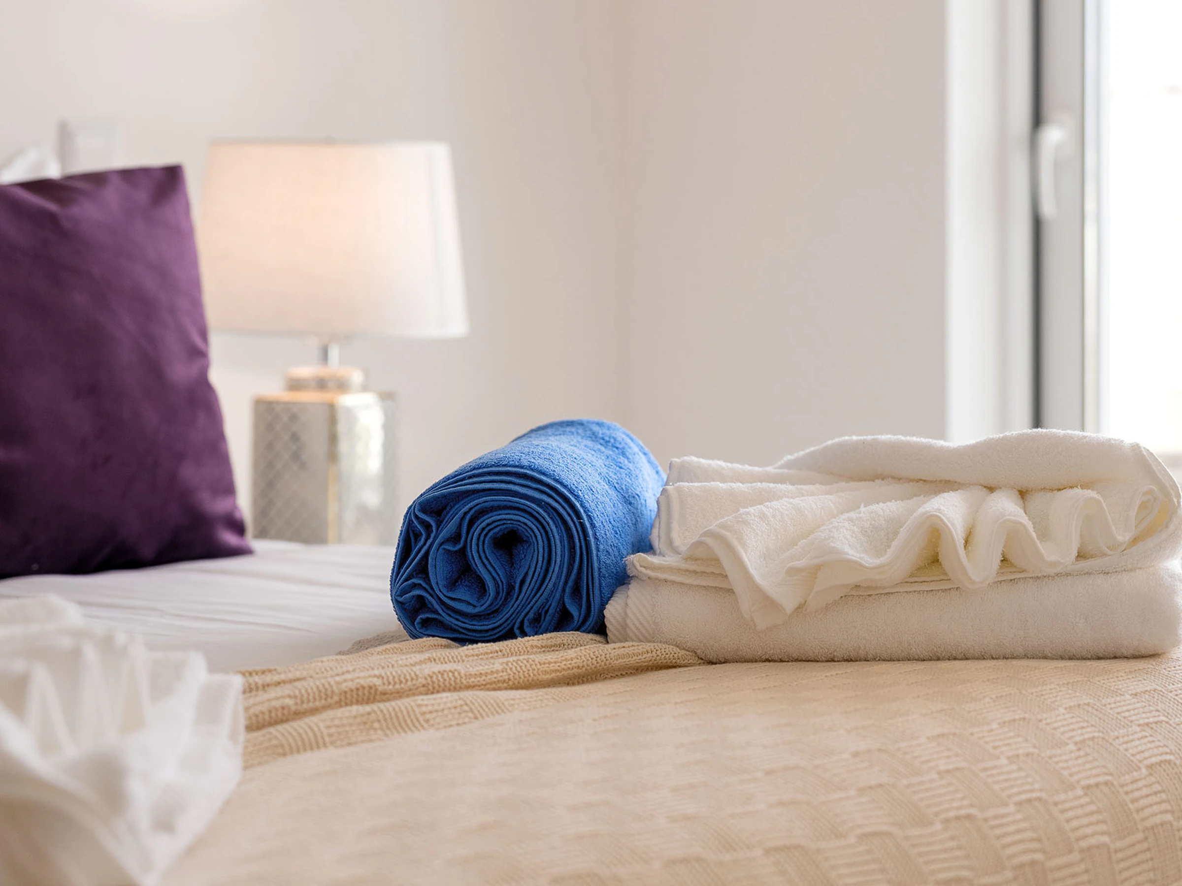 Alle Bettwäsche und Handtücher werden gestellt, ebenso wie Annehmlichkeiten für den ersten Tag wie Duschgel und Toilettenpapier.