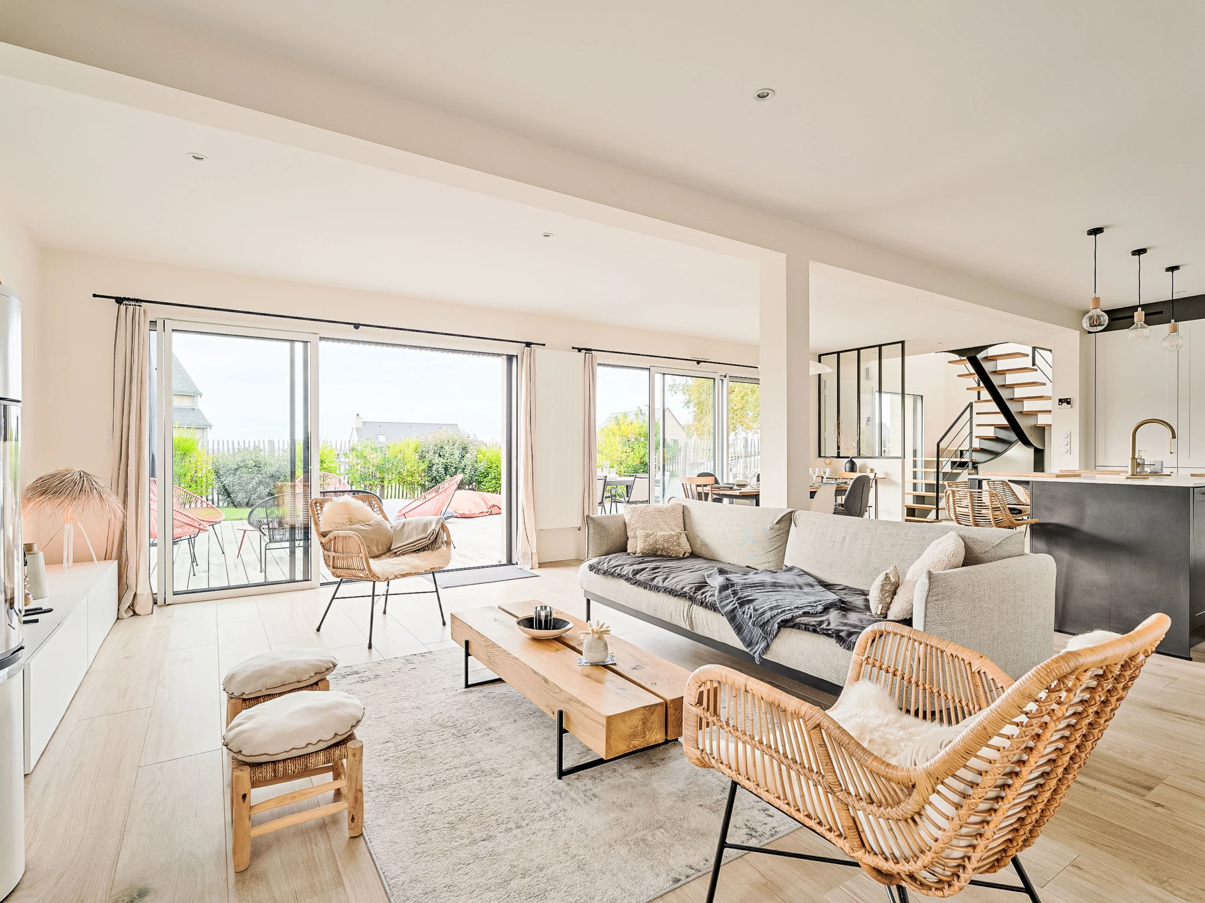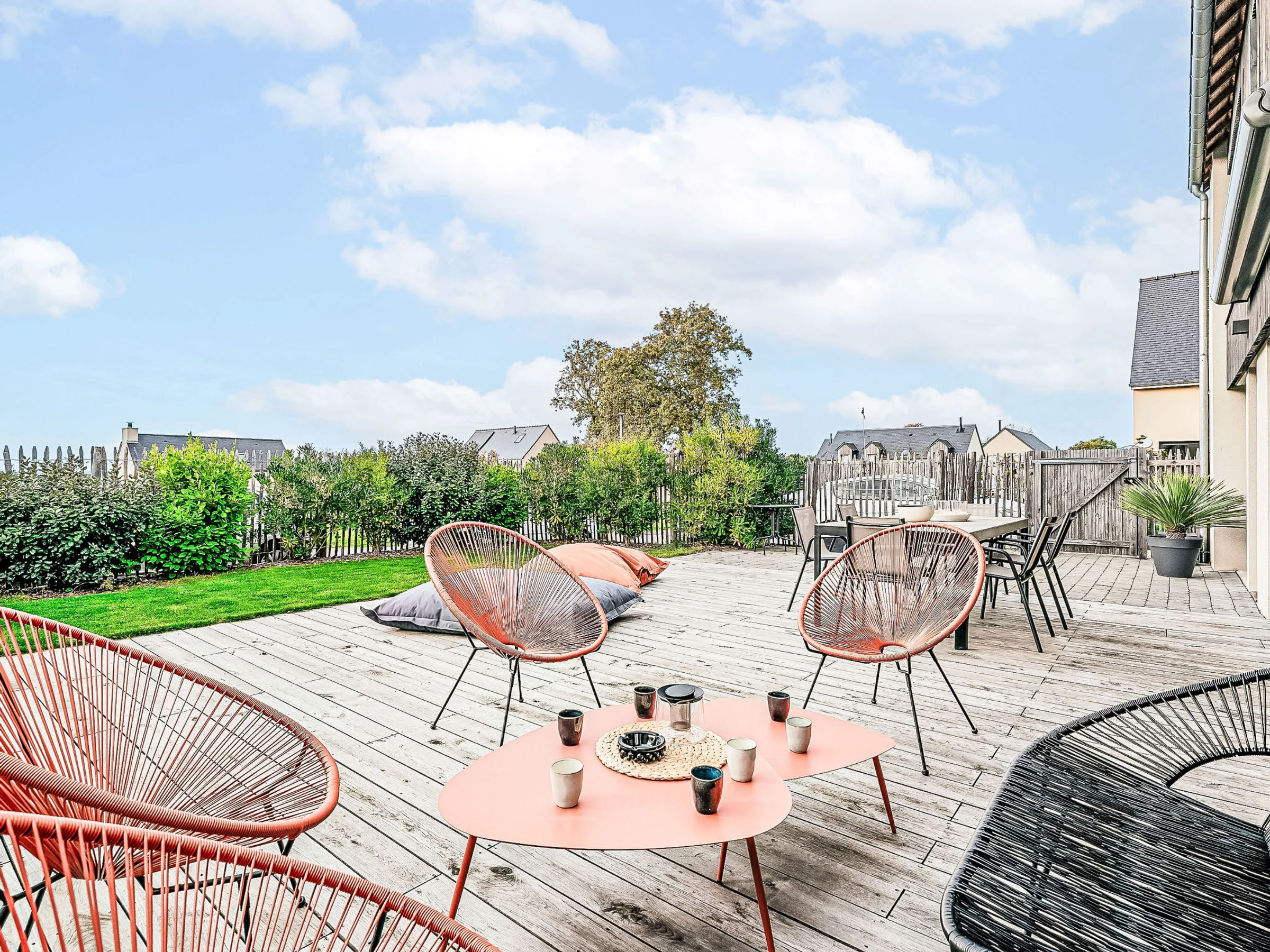 "Les Oyats", 5-Zimmer-Villa 135 m2. Modern und geschmackvoll eingerichtet: Wohn-/Esszimmer mit offenem Kamin und TV (Flachbildschirm). 2 Zimmer, jedes Zimmer mit 1 franz. Bett (140 cm, Länge 200 cm). 2 Zimmer, jedes Zimmer mit 1 Doppelbett (160 cm, Länge 200 cm). Offene Küche (Geschirrspüler, 4 Induktionskochplatten, Toaster, Wasserkocher, Mikrowelle, Tiefkühler, elektrische Kaffeemaschine, Kapseln für die Kaffeemaschine (Nespresso) extra, Kochinsel). 2 Duschen, 2 sep. WC's. E-Heizung. Grosse Terrasse 70 m2. Terrassenmöbel, Gartengrill. Zur Verfügung: Waschmaschine, Wäschetrockner. Internet (WLAN, gratis). Bitte beachten: geeignet für Familien. Rauchmelder. Inserat einer Privatperson nach Artikel 155, IV, CGI.