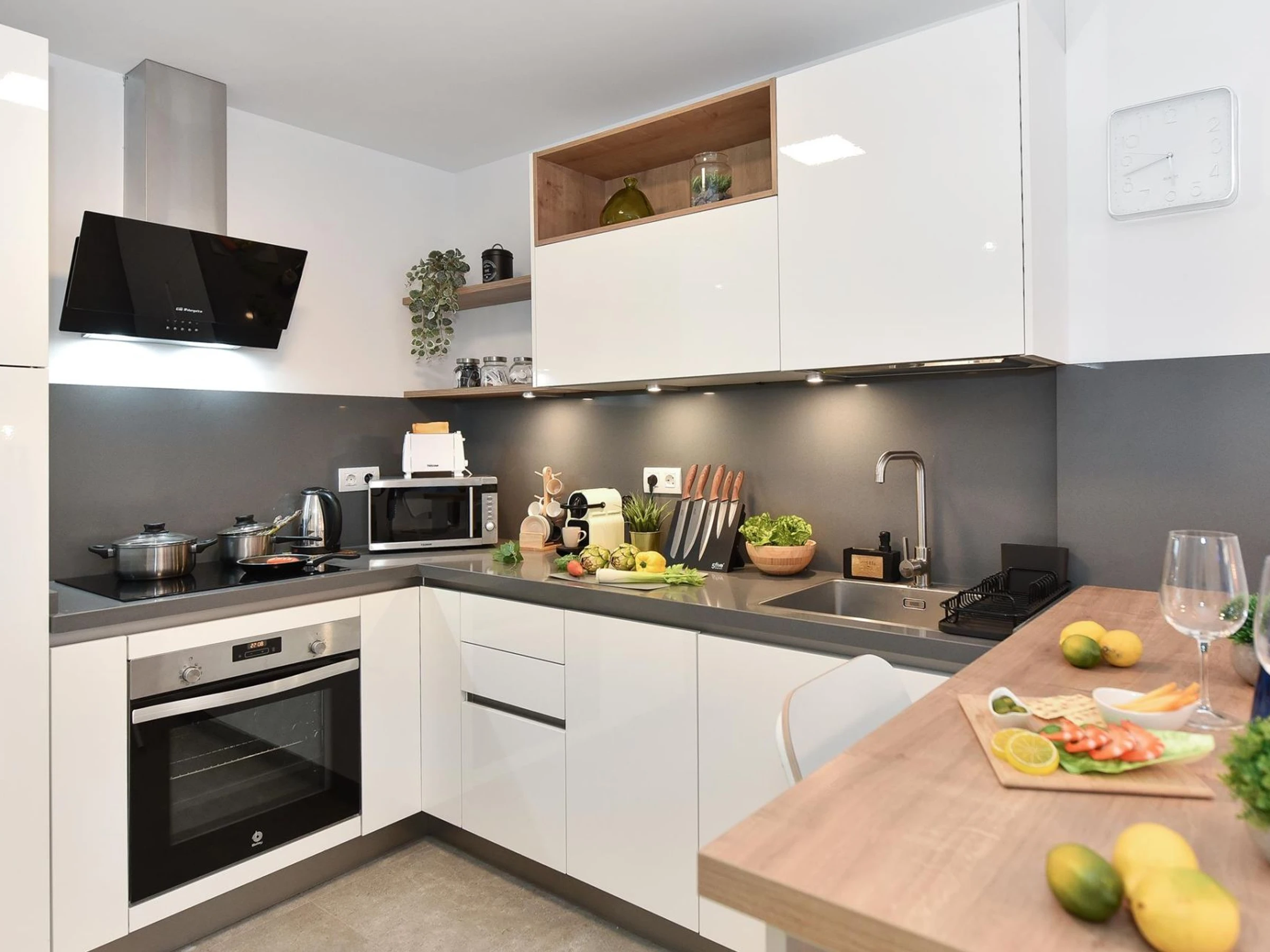 Dieses küche, ist ausgestattet in mikrowelle, backofen, spülmaschine, kochutensilien, kaffeemaschine, toaster und wasserkocher.