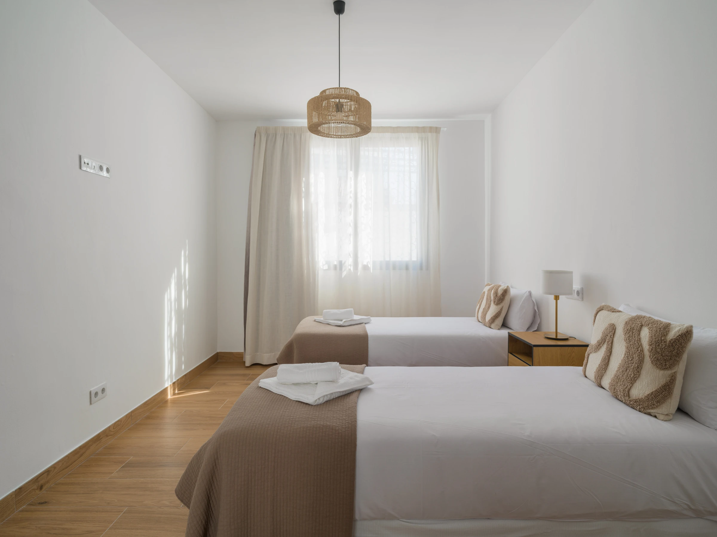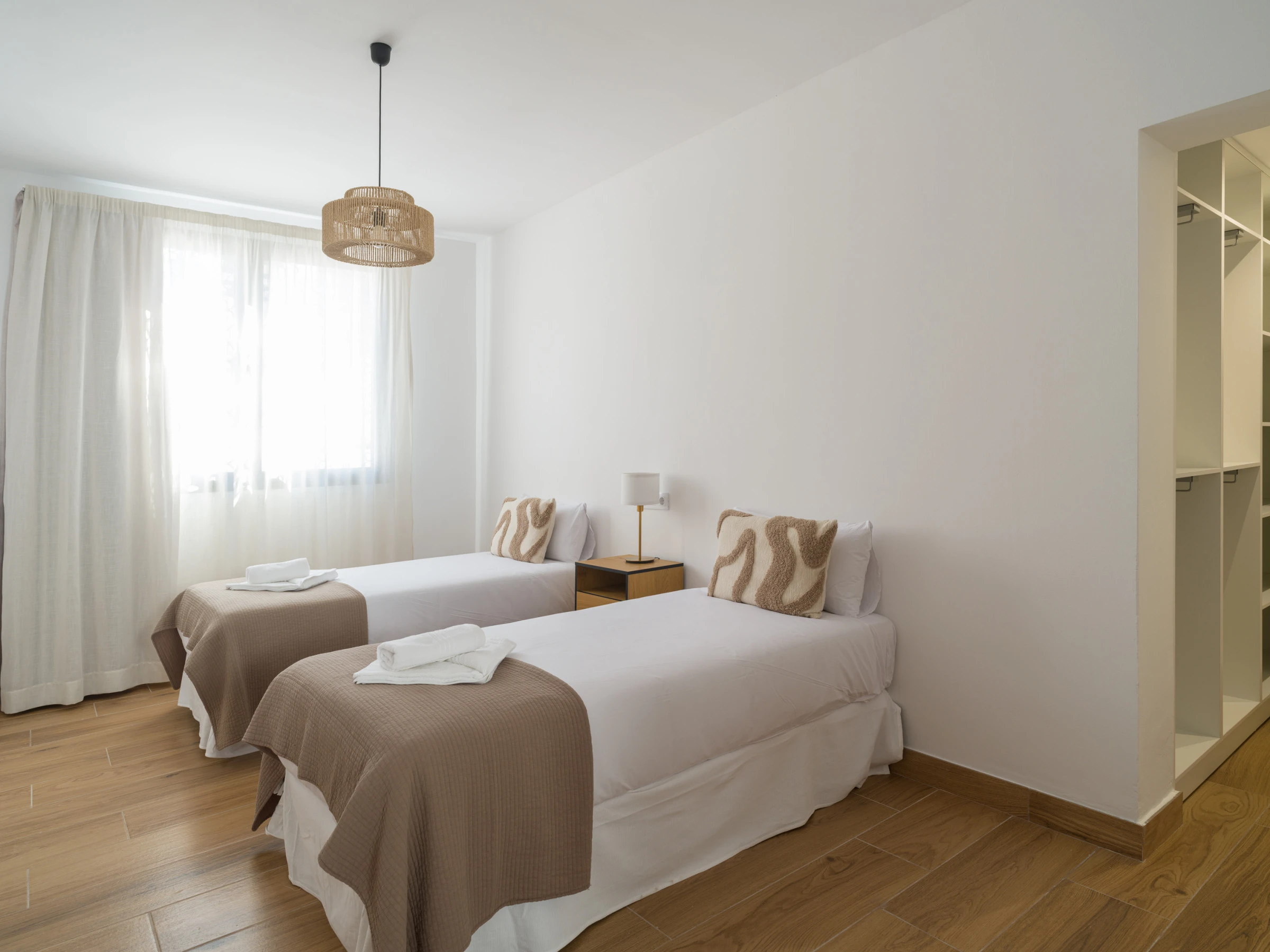 Zweites Schlafzimmer mit zwei Einzelbetten und einem separaten Ankleidezimmer.