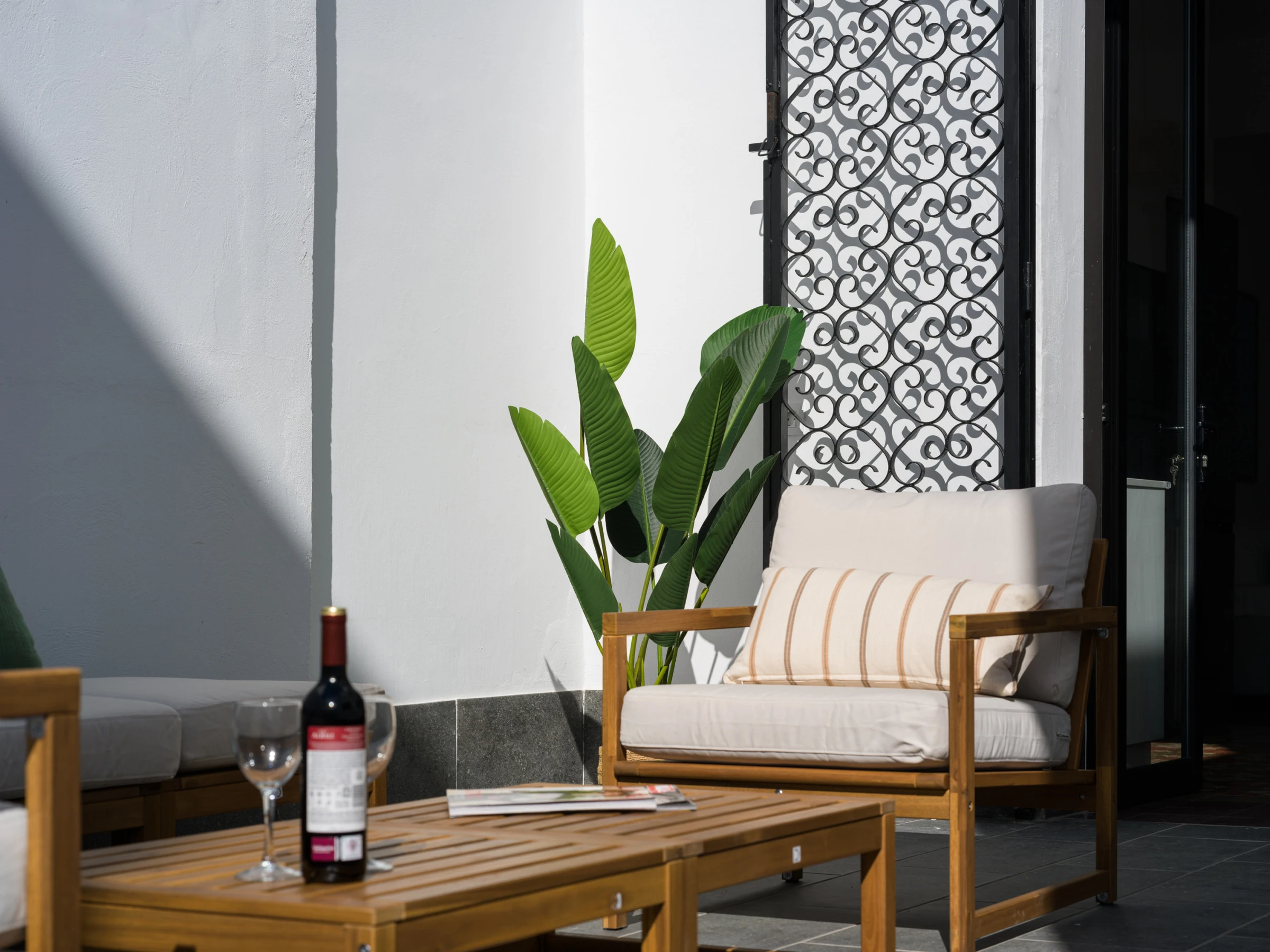 Eine der besondersten Ecken ist die große Terrasse von etwa 40 m², ausgestattet mit gemütlichen Sesseln und Zonen mit Schatten und Sonne. Ein perfekter Raum zum Lesen, Sonnenbaden, Genießen eines ruhigen Gesprächs oder einfach nur zum Entspannen im Freien, in völliger Privatsphäre.