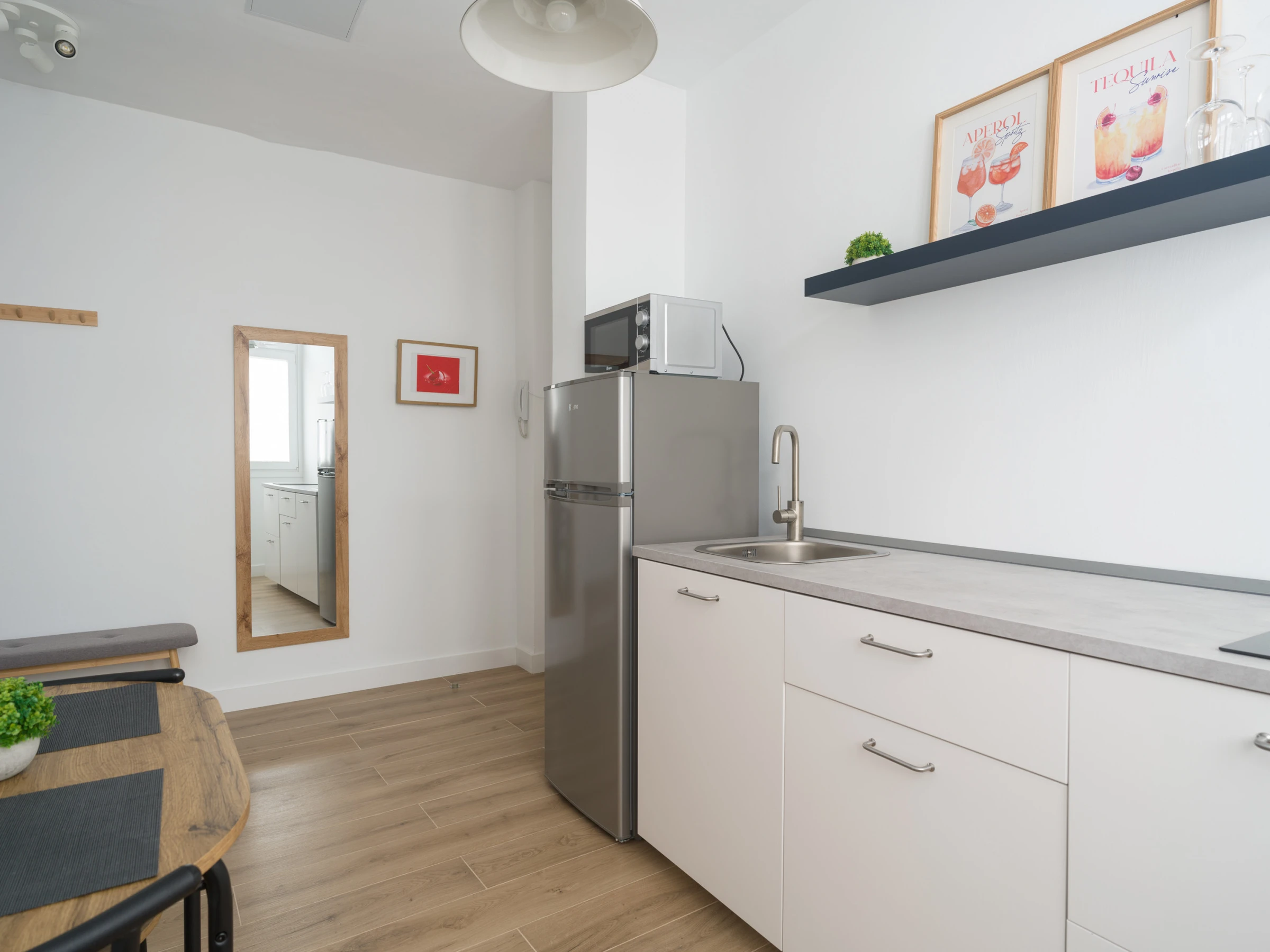 Die Unterkunft verfügt über 1 Schlafzimmer mit Doppelbett aus viskoelastischem Schaum und Platz für bis zu 2 Personen. Es gibt 1 vollständiges Badezimmer mit begehbarer Dusche, Duschkopf mit Griff und stufenloser Zugang, perfekt um deinen Komfort zu gewährleisten. Der Raum ist mit Barrierefreiheit im Sinn gestaltet, mit breiten Türen im Schlafzimmer, beleuchteter Weg zum Eingang. Die separate Induktionsküche ist vollständig ausgestattet mit Kühlschrank, Gefrierschrank, Mikrowelle, Kaffeemaschine, Toaster, Wasserkocher, Entsafter und allen Utensilien, die du brauchst. Sie enthält Gewürze, Geschirr, Besteck und Kochgeschirr, damit du deine eigenen Mahlzeiten zubereiten kannst.