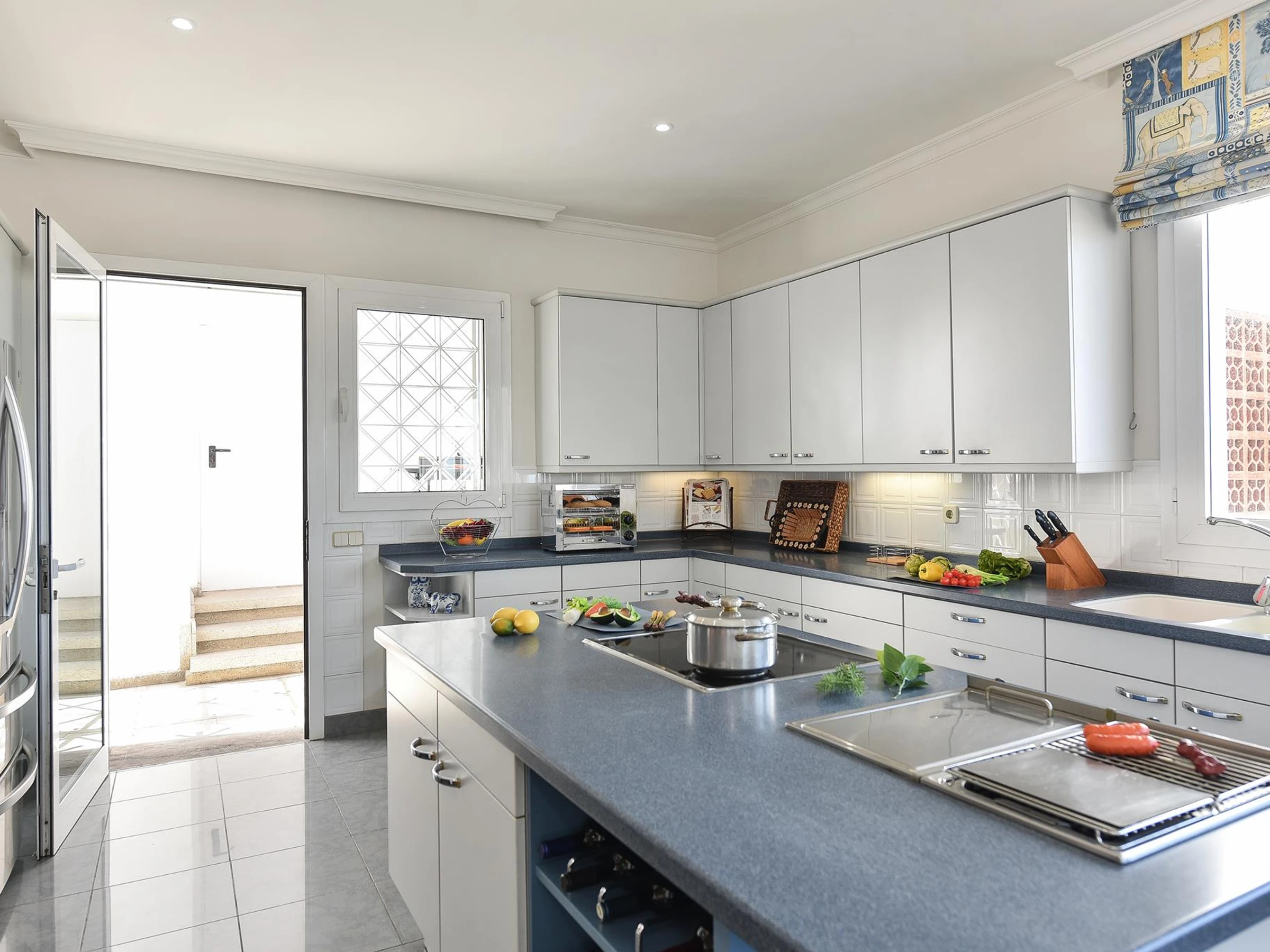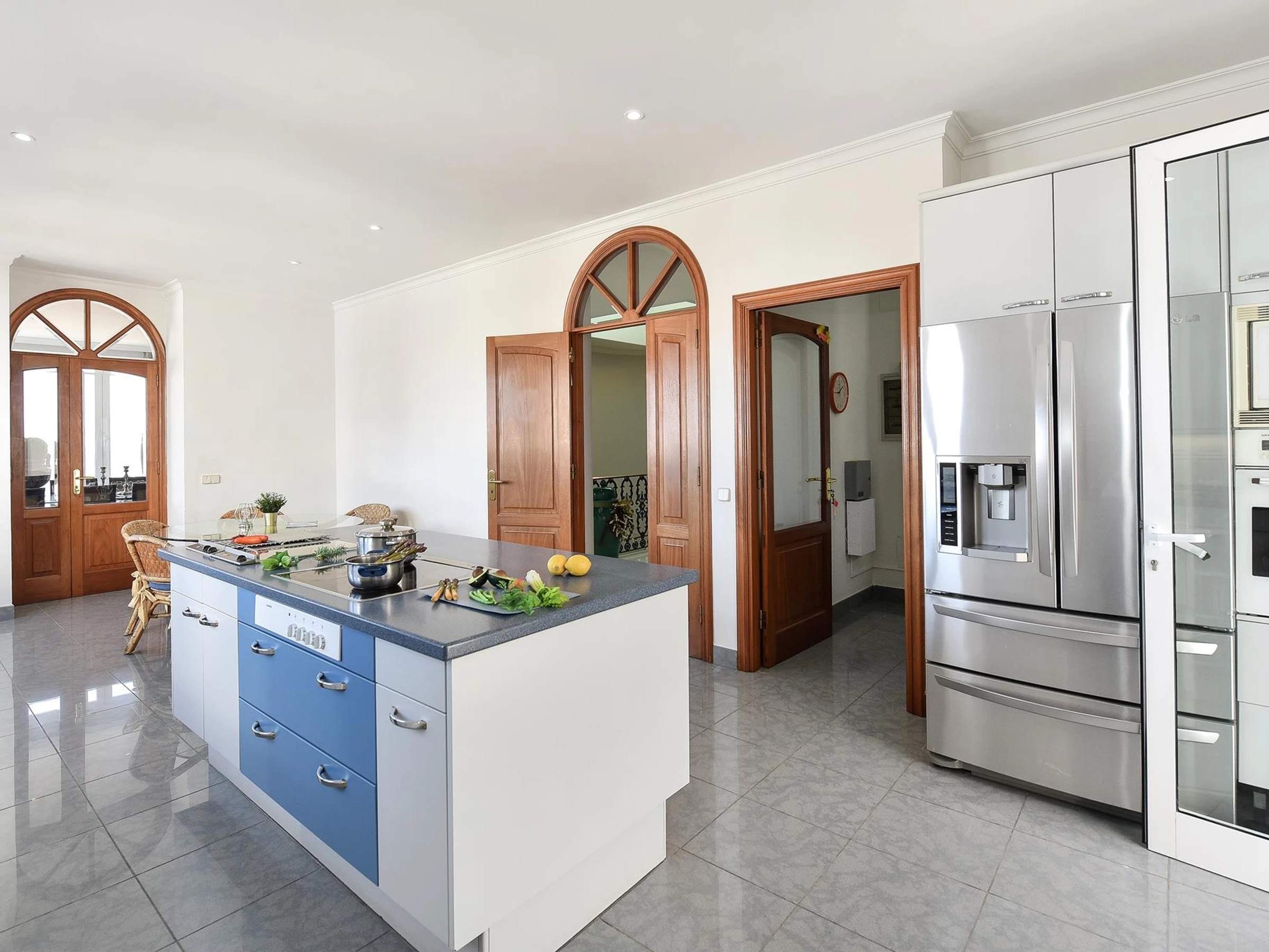 Dieses küche, ist ausgestattet in kühlschrank, mikrowelle, backofen, gefrierschrank, spülmaschine, kochutensilien, kaffeemaschine, toaster und wasserkocher.