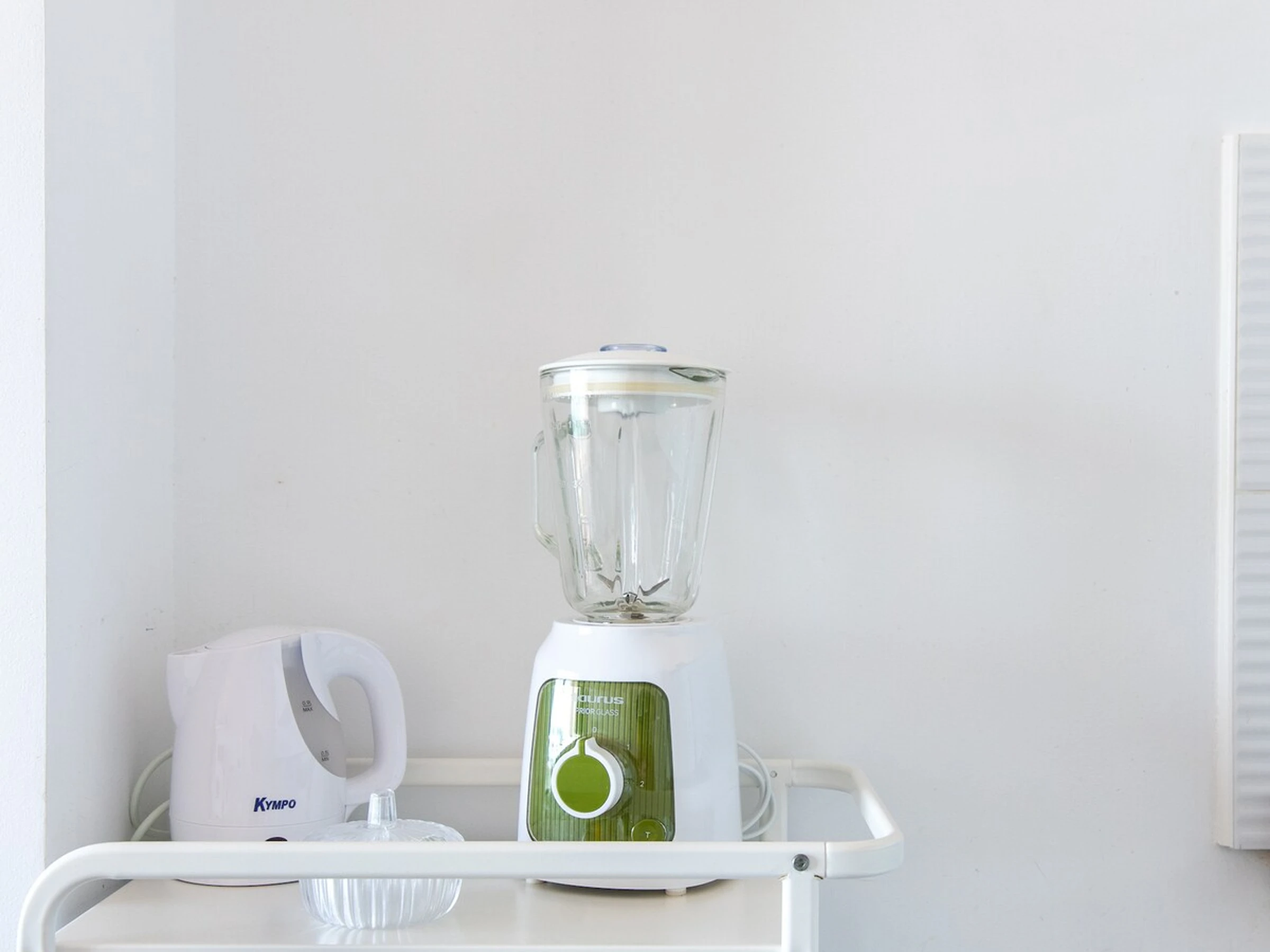 Dieses küche, ist ausgestattet in mikrowelle, kochutensilien und kaffeemaschine.