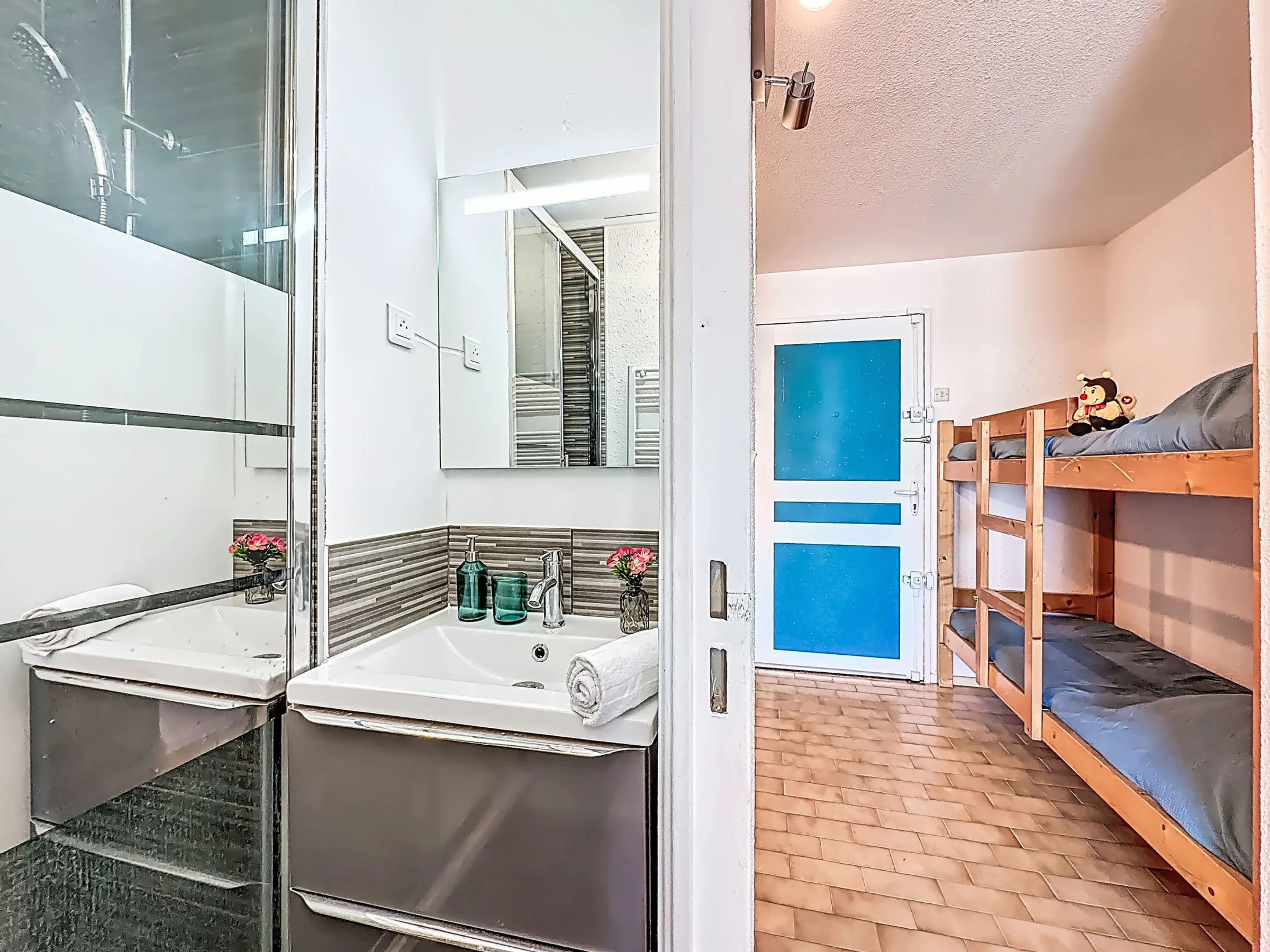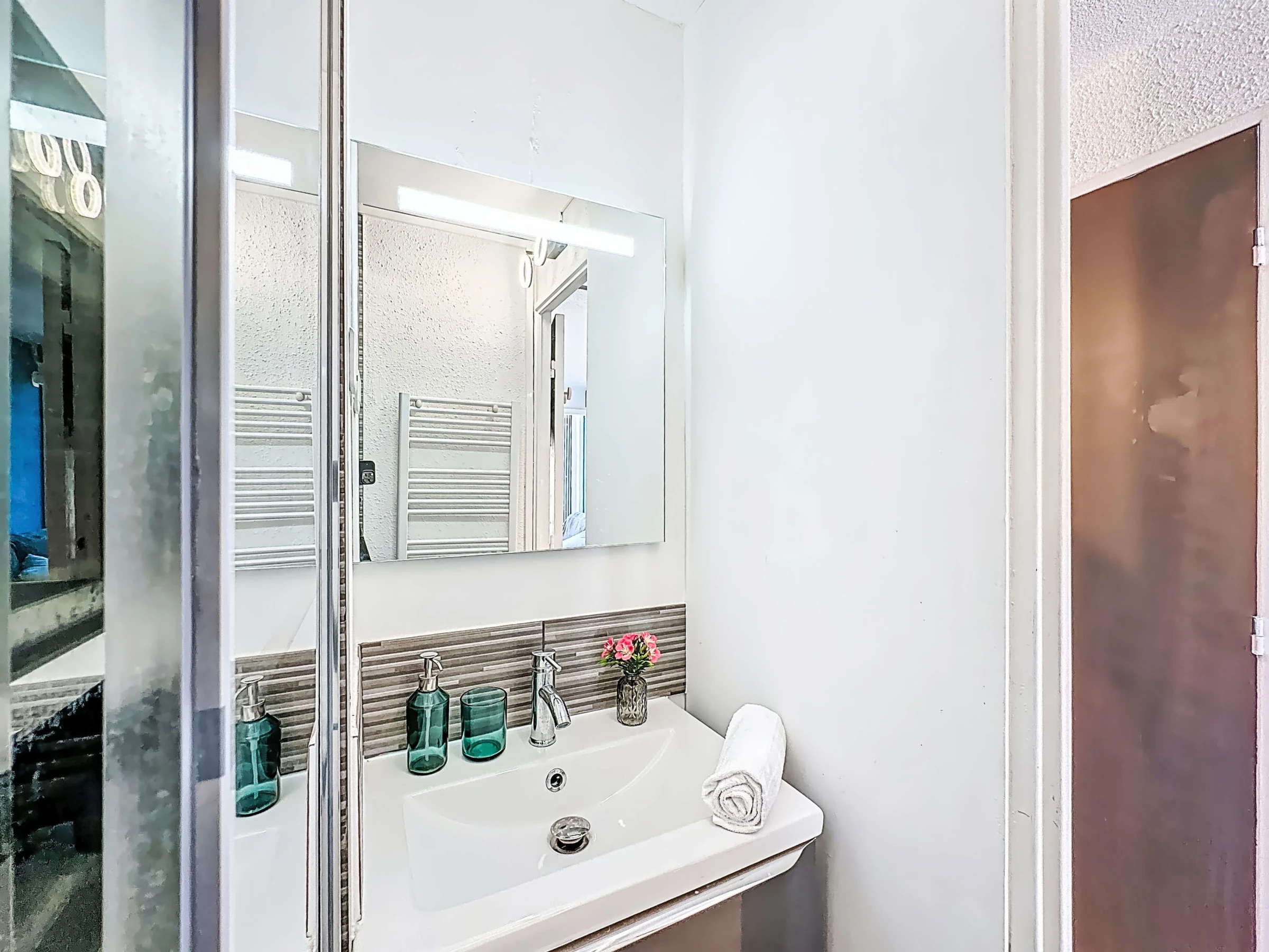 "Le Lagon Bleu", 1-Zimmer-Studio 22 m2 im 3. Stock. Objekt geeignet für 2 Erwachsene + 2 Kinder. Schön eingerichtet: Wohn-/Esszimmer mit 1 Doppeldiwanbett (140 cm, Länge 190 cm), TV (Flachbildschirm). Eingang mit 2 Betten (80 cm, Länge 190 cm). Offene Küche (2 Flammen, Toaster, Wasserkocher, Mikrowelle, Tiefkühler, elektrische Kaffeemaschine, Kapseln für die Kaffeemaschine (nespresso) extra). Dusche, sep. WC. Klimaanlage. Balkon 3 m2. Sicht auf das Schwimmbad. Zur Verfügung: Waschmaschine. Internet (WLAN, extra). Garage Nr. x. Bitte beachten: Rauchmelder. Inserat einer Privatperson nach Artikel 155, IV, CGI.