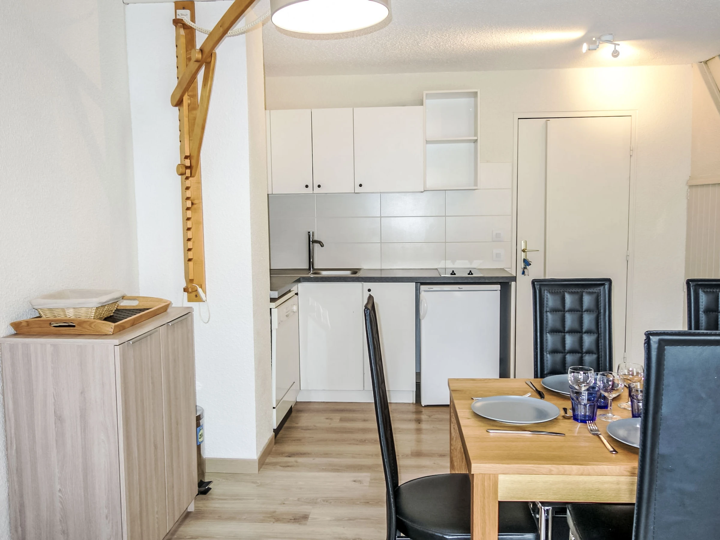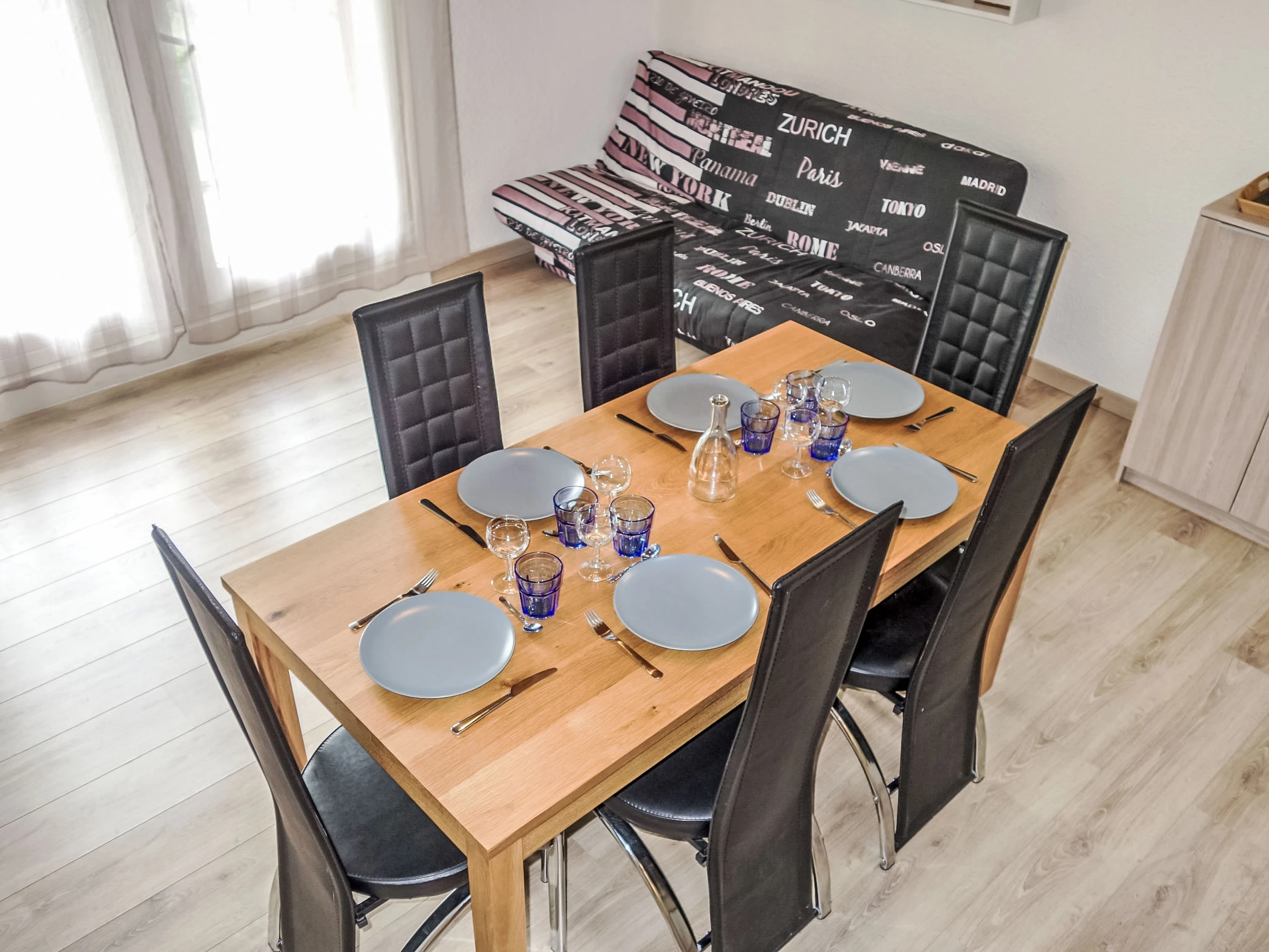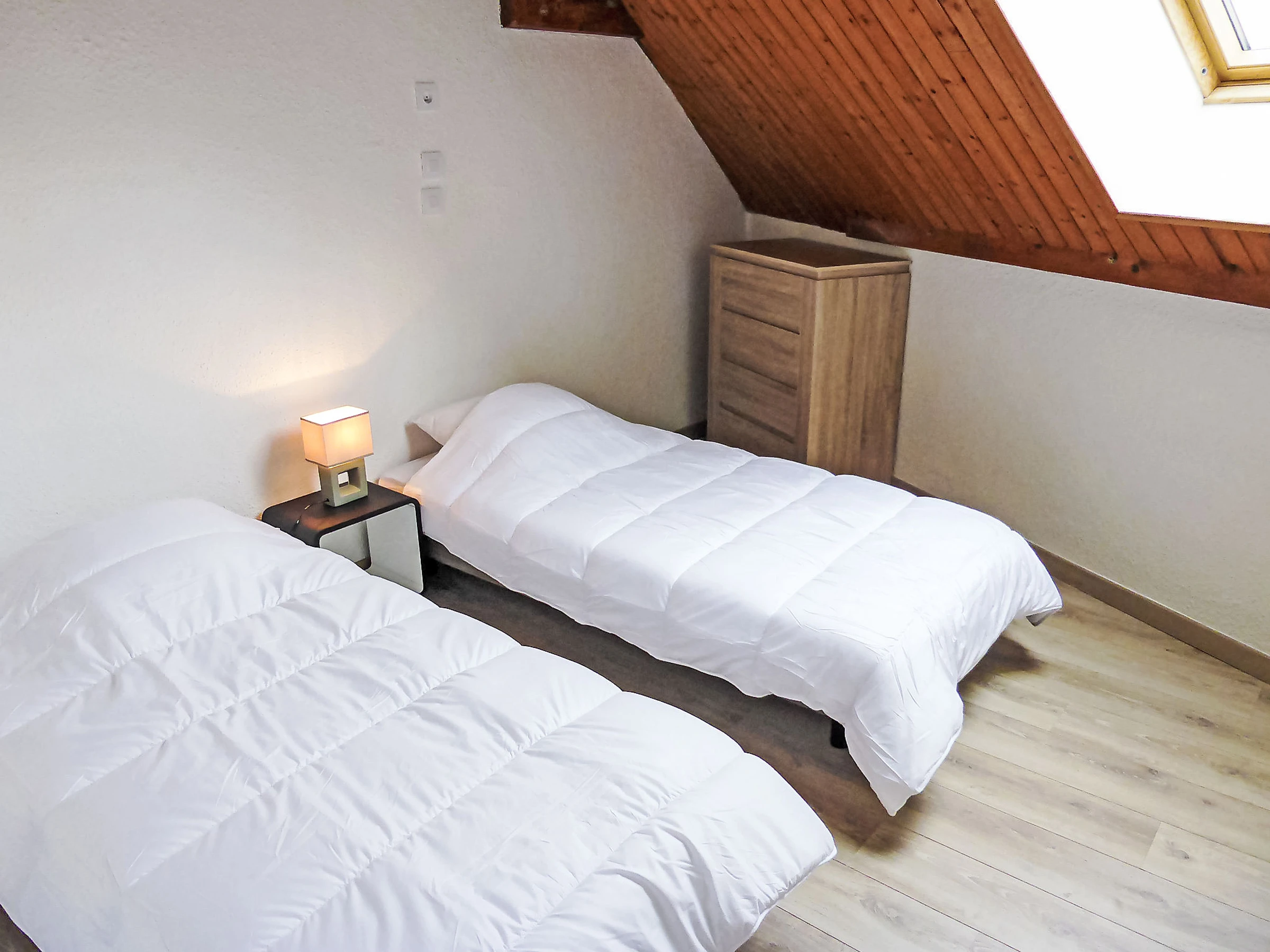 3-Zimmer-Wohnung 60 m2 auf 2 Stockwerken im 4. Stock. Renoviert im Jahre 2015: Wohn-/Esszimmer mit 1 Doppeldiwanbett und TV. Kochnische (Geschirrspüler, 2 Glaskeramikplatten, Toaster, Wasserkocher, Mikrowelle, elektrische Kaffeemaschine, Racletteofen). Dachgeschoss: 1 Zimmer, Deckenhöhe 120 - 230 cm mit 1 Doppelbett (140 cm, Länge 190 cm). 1 Zimmer, Deckenhöhe 120 - 230 cm mit Dachfenster mit 2 Betten (90 cm, Länge 190 cm). Bad, Dusche/WC. E-Heizung. Balkon, Südlage. Zur Verfügung: Internet (WLAN, extra). Parkplatz Nr. 630 (überdacht). Bitte beachten: Rauchmelder. [hidden]