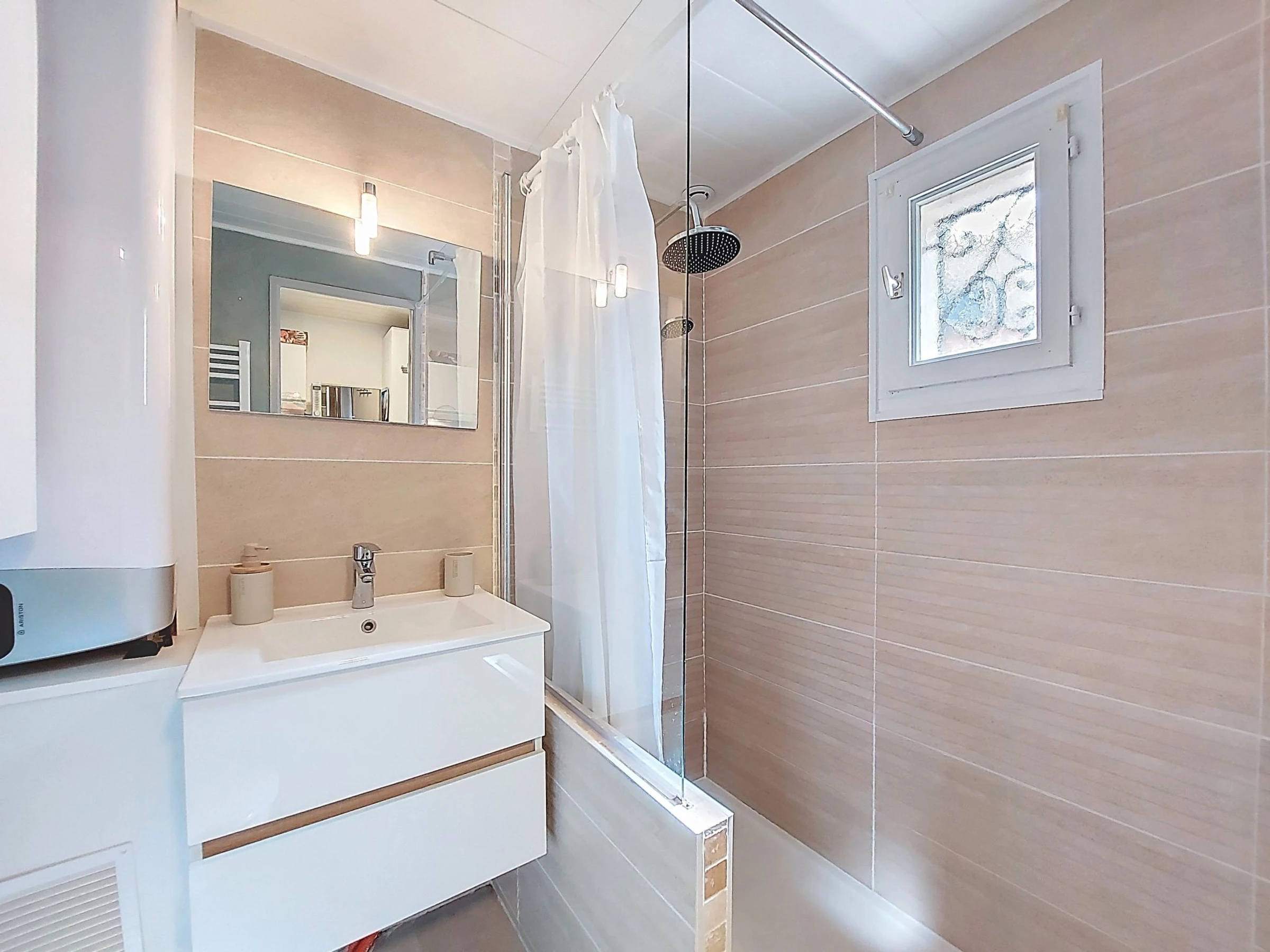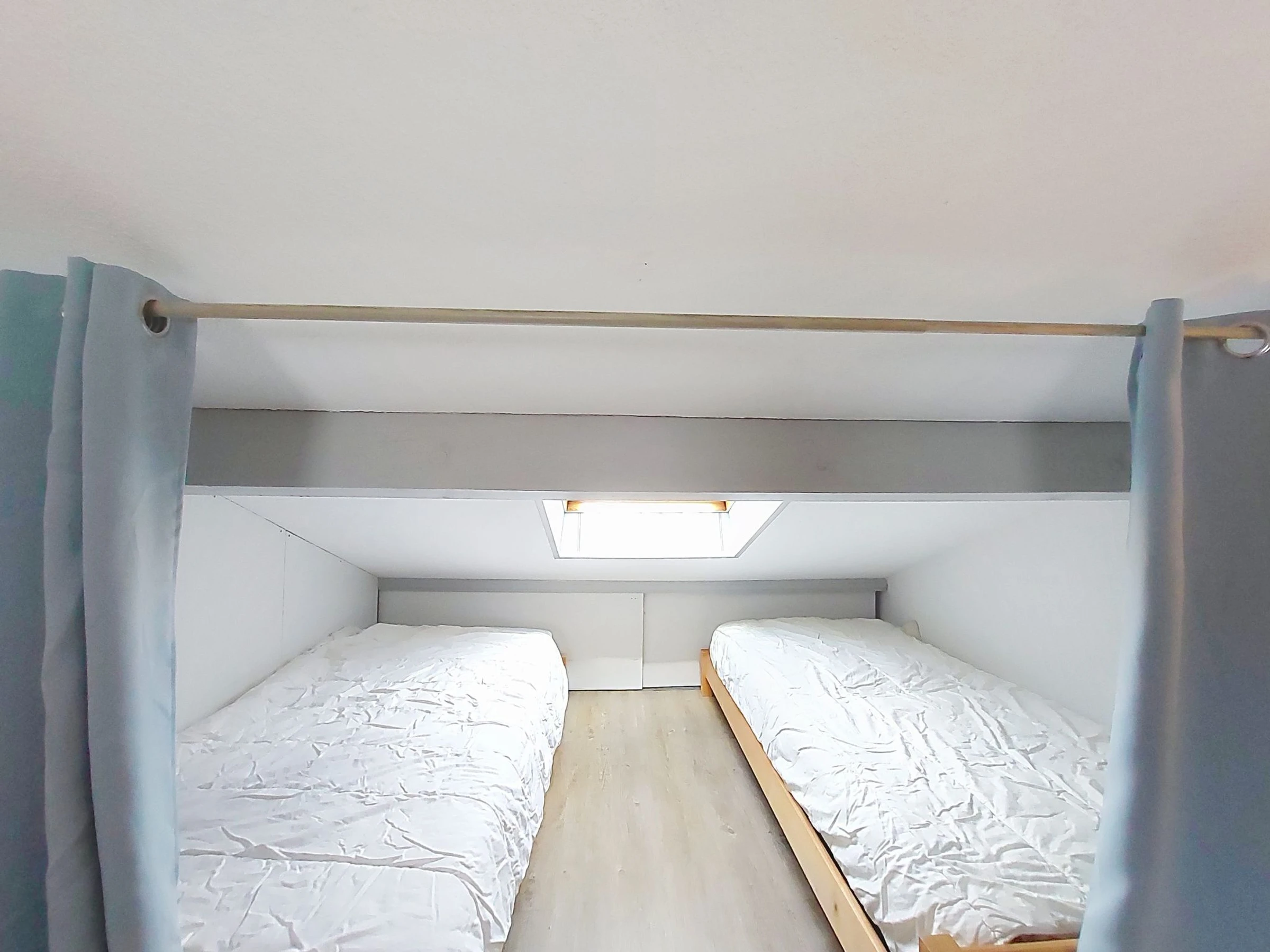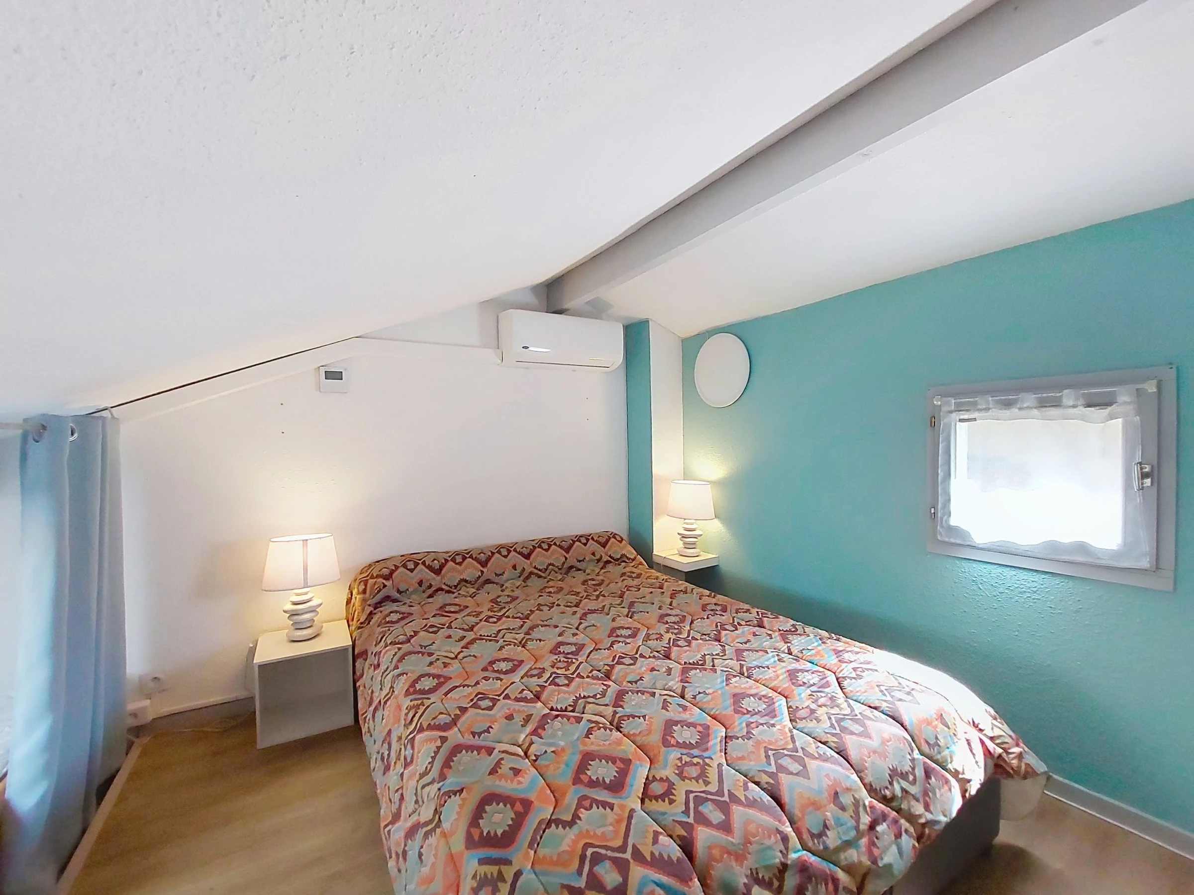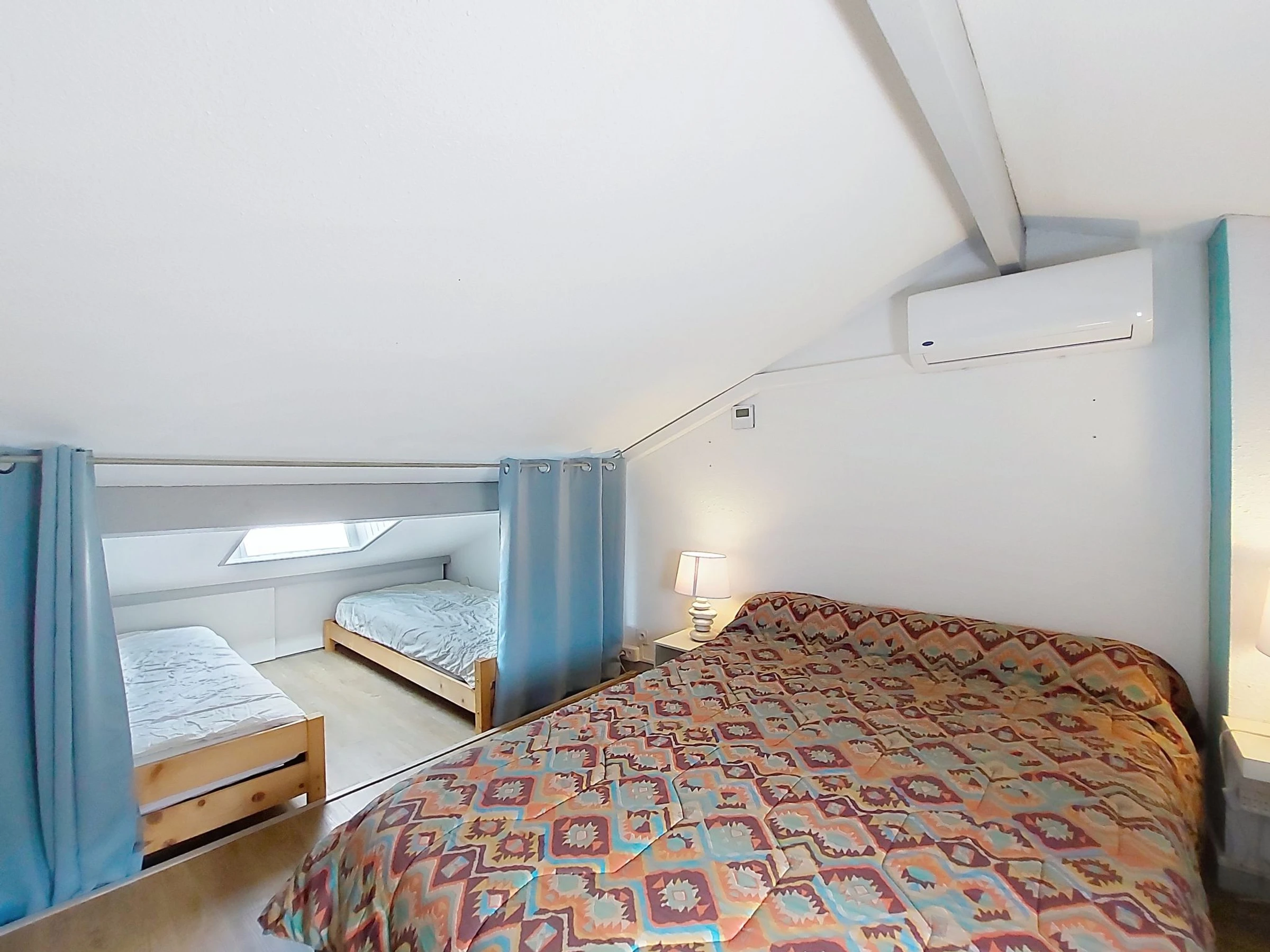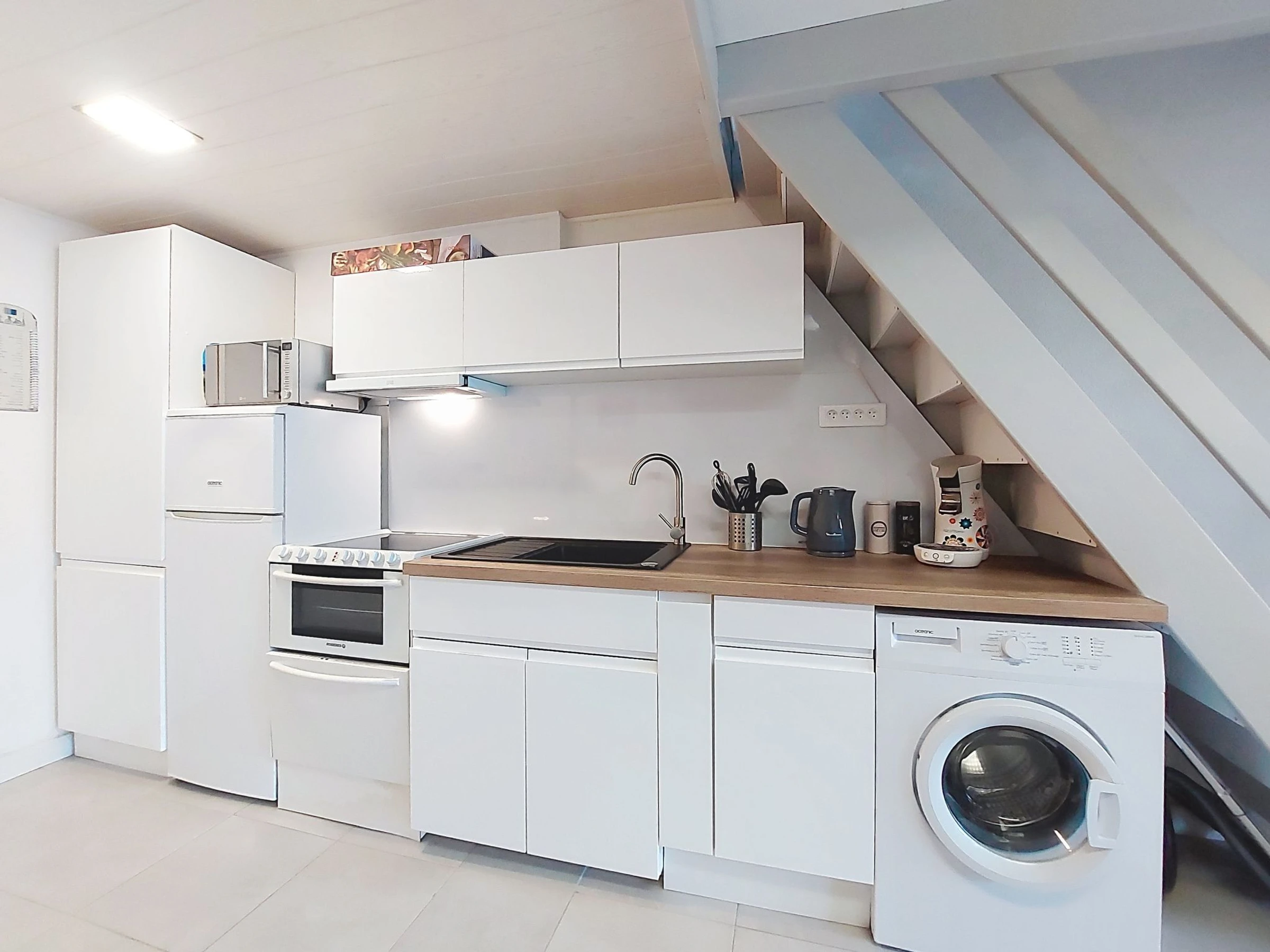 2-Zimmer-Reihenhaus 30 m2 auf 2 Stockwerken. Wohn-/Esszimmer mit TV (Flachbildschirm). Ausgang zur Terrasse. Kochnische (Backofen, Geschirrspüler, 3 Glaskeramikplatten, Toaster, Wasserkocher, Tiefkühler, elektrische Kaffeemaschine). Dusche/WC. E-Heizung, Klimaanlage. Obergeschoss: abgeschrägte Galerie mit 2 Betten (90 cm, Länge 190 cm), 1 franz. Bett (1 x 140 cm, Länge 190 cm), TV (Flachbildschirm). Terrasse 6 m2, Gartensitzplatz 20 m2. Terrassenmöbel, Elektrogrill. Zur Verfügung: Waschmaschine. Internet (WLAN, extra). Parkplatz. Bitte beachten: 1 kleines Haustier/Hund erlaubt. Rauchmelder. Inserat einer Privatperson nach Artikel 155, IV, CGI.