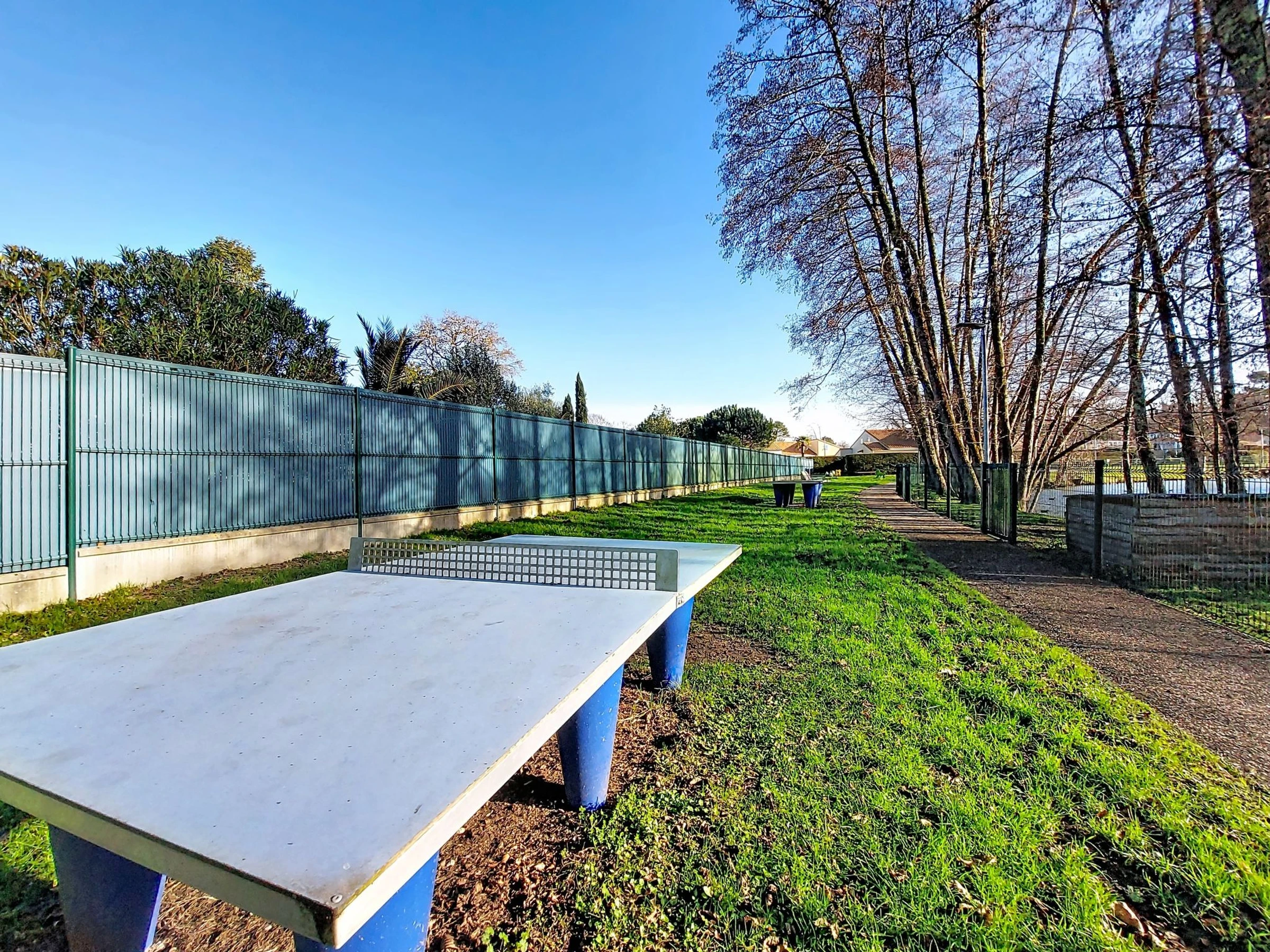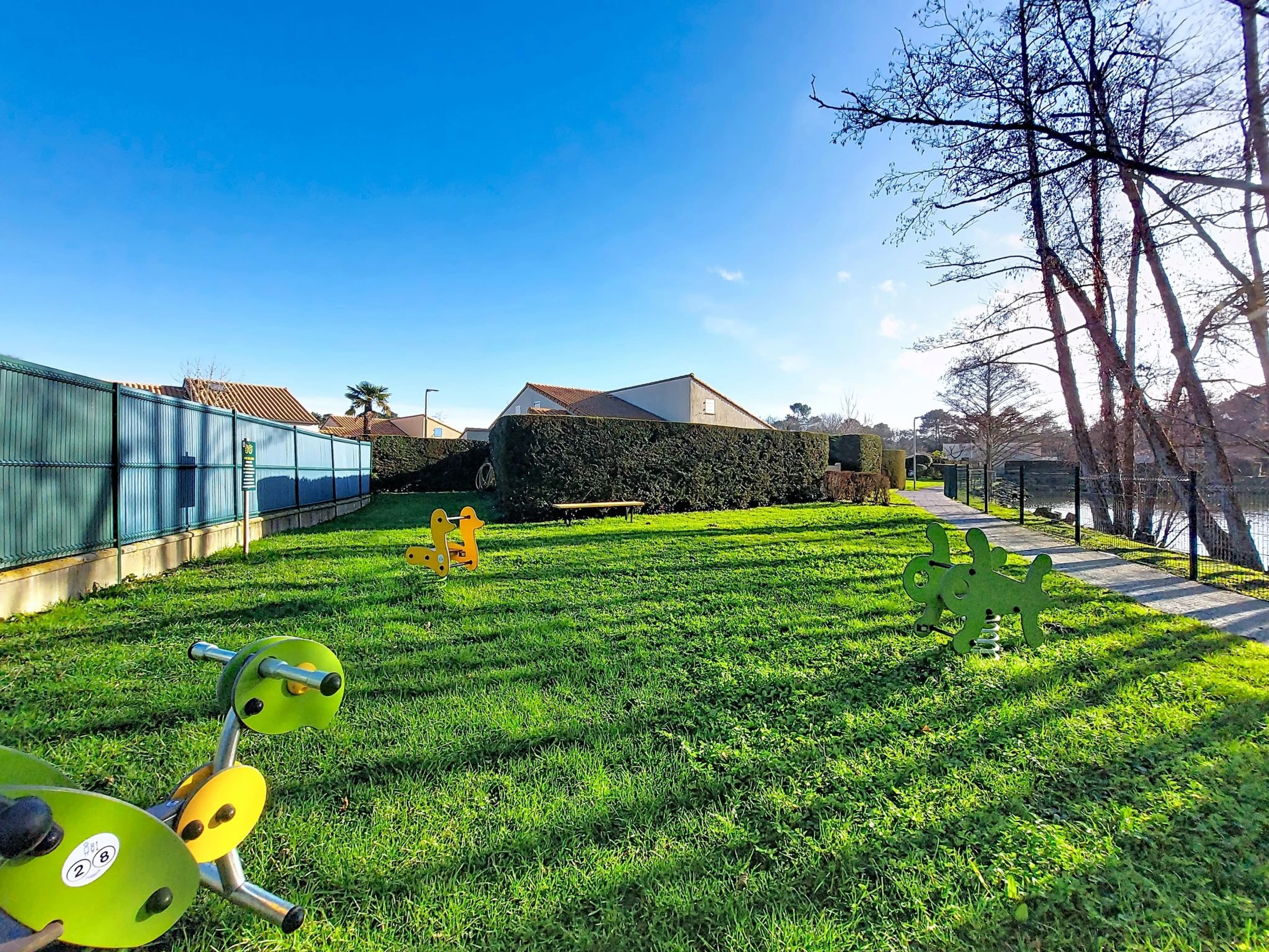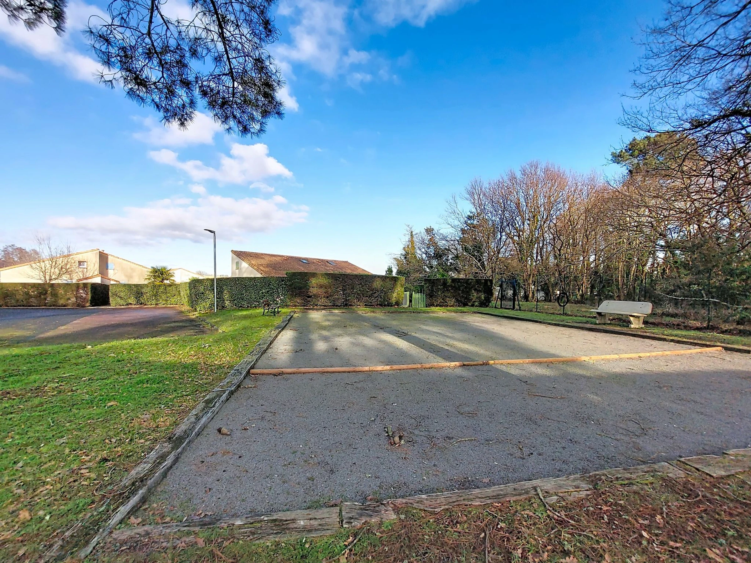 Les Mathes: Grosse Residenz "Le Clos des Chênes". 160 Häuser in der Residenz. Am Ortsrand, 1.6 km vom Zentrum von Les Mathes, 4.5 km vom Meer, 4.5 km vom Strand. Zur Mitbenutzung: Grundstück, Bäumen, Naturteich, Schwimmbad eingezäunt (saisonale Verfügbarkeit: [hidden] - [hidden] Tennis, Tischtennis, Boccia, Volleyball, Kinderspielplatz, Parkplatz (beschränkte Anzahl). Einkaufsgeschäft 1.6 km, Lebensmittelgeschäft 1.3 km, Supermarkt 1.3 km, Restaurant 1.6 km, Bäckerei 1.6 km, Café 1.6 km, Fahrradverleih 1.1 km, Bushaltestelle "Montsouci" 50 m, Bahnstation "Royan" 19 km, Sandstrand "Plage de La Palmyre" 4.5 km, Thermalbad "Thalassothérapie Thalazur Royan" 20 km. Sporthafen 4.5 km, Golfplatz (9 Loch) 6 km, Surfschule 3.5 km, Reitstall 1.5 km, Radweg 50 m. Nahe gelegene Sehenswürdigkeiten: Centre Poney Découverte 300 m, Karting Les Mathes 1 km, Parc attractions LunaPark (Juillet-Août) 1.5 km, Zagal Cabaret équestre 1.5 km, Hippodrome Royan Atlantique - La Palmyre 4 km, Zoo de La Palmyre 4.5 km. Die Schlüsselübergabe findet bei der Agentur in La Palmyre statt, 4 km.