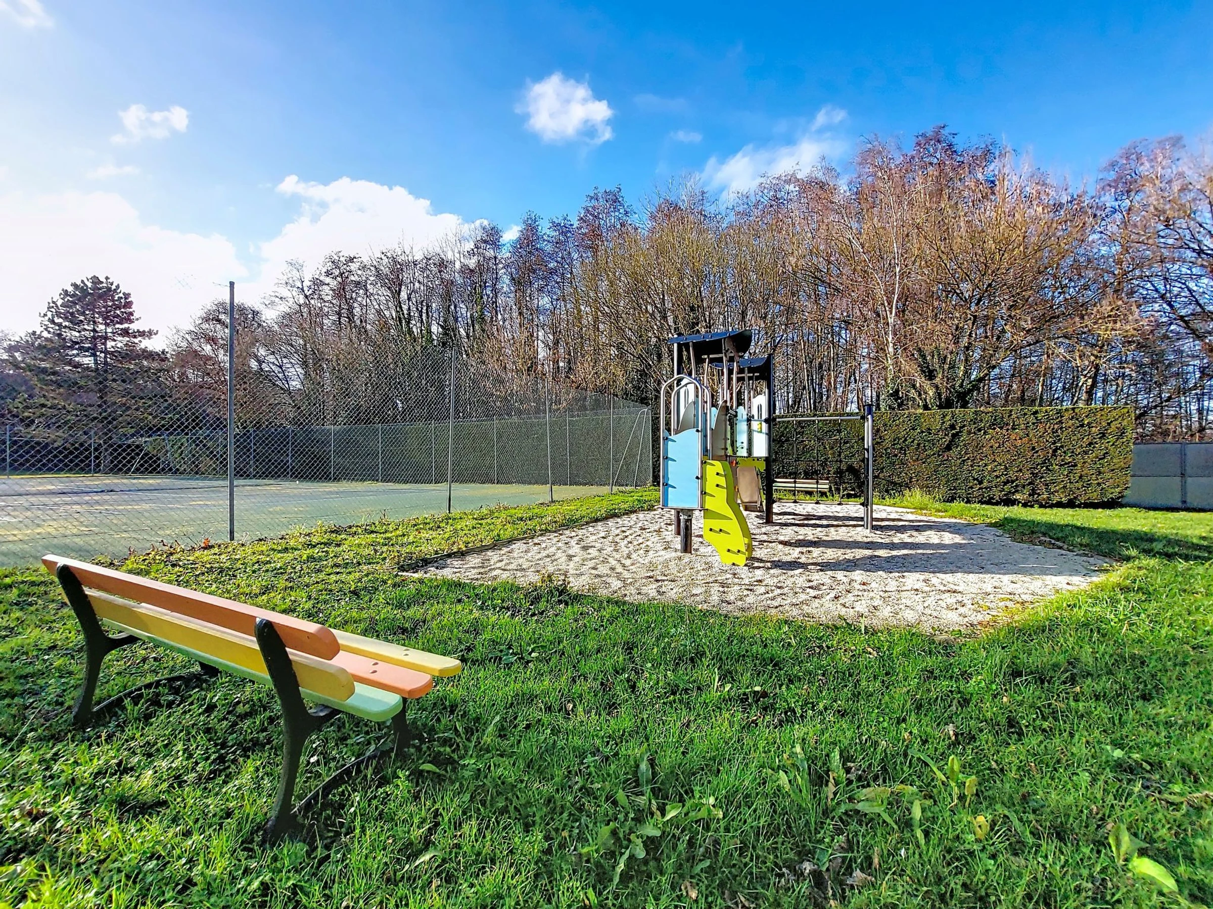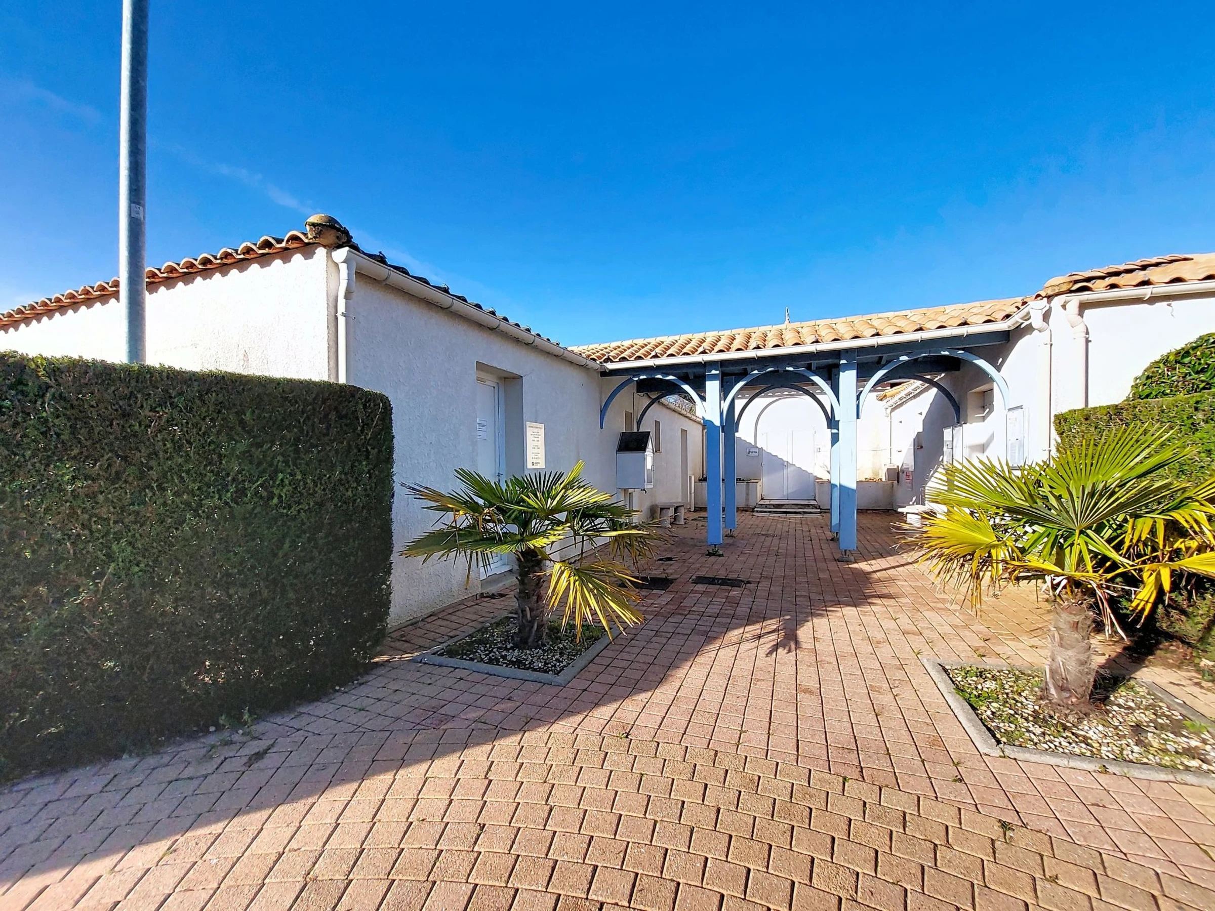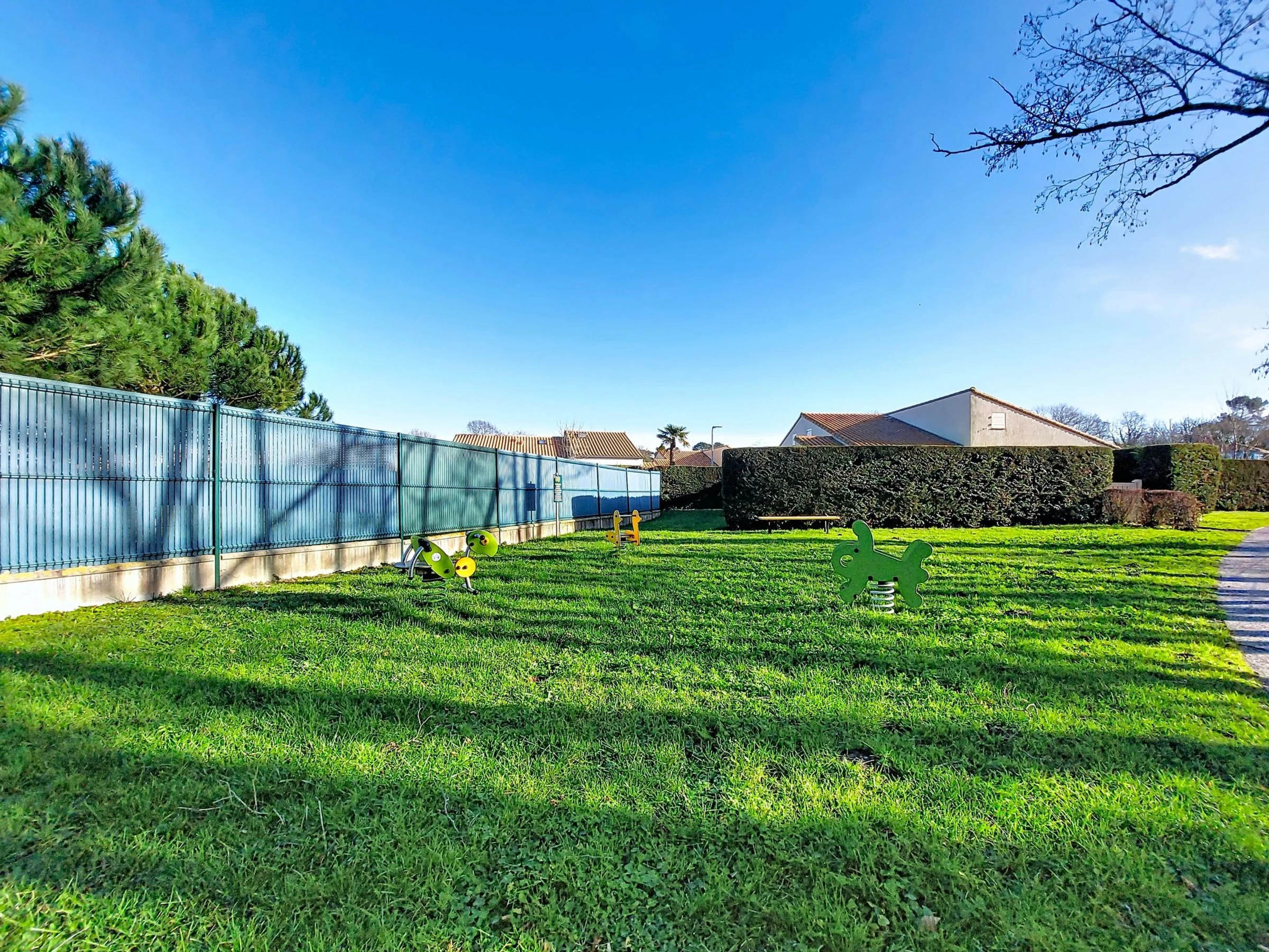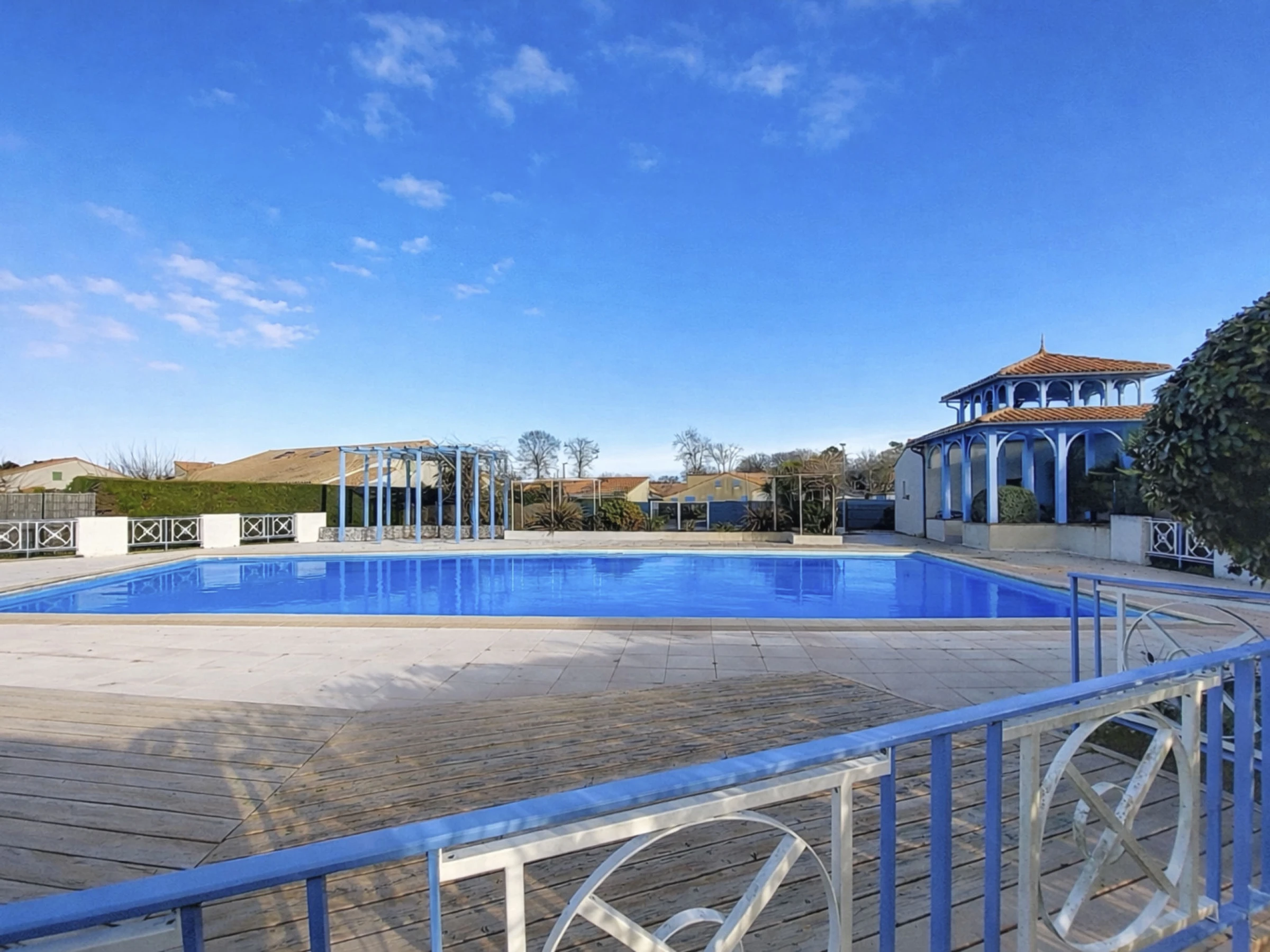 Les Mathes: Grosse Residenz "Le Clos des Chênes". 160 Häuser in der Residenz. Am Ortsrand, 1.6 km vom Zentrum von Les Mathes, 4.5 km vom Meer, 4.5 km vom Strand. Zur Mitbenutzung: Grundstück, Bäumen, Naturteich, Schwimmbad eingezäunt (saisonale Verfügbarkeit: [hidden] - [hidden] Tennis, Tischtennis, Boccia, Volleyball, Kinderspielplatz, Parkplatz (beschränkte Anzahl). Einkaufsgeschäft 1.6 km, Lebensmittelgeschäft 1.3 km, Supermarkt 1.3 km, Restaurant 1.6 km, Bäckerei 1.6 km, Café 1.6 km, Fahrradverleih 1.1 km, Bushaltestelle "Montsouci" 50 m, Bahnstation "Royan" 19 km, Sandstrand "Plage de La Palmyre" 4.5 km, Thermalbad "Thalassothérapie Thalazur Royan" 20 km. Sporthafen 4.5 km, Golfplatz (9 Loch) 6 km, Surfschule 3.5 km, Reitstall 1.5 km, Radweg 50 m. Nahe gelegene Sehenswürdigkeiten: Centre Poney Découverte 300 m, Karting Les Mathes 1 km, Parc attractions LunaPark (Juillet-Août) 1.5 km, Zagal Cabaret équestre 1.5 km, Hippodrome Royan Atlantique - La Palmyre 4 km, Zoo de La Palmyre 4.5 km. Die Schlüsselübergabe findet bei der Agentur in La Palmyre statt, 4 km.