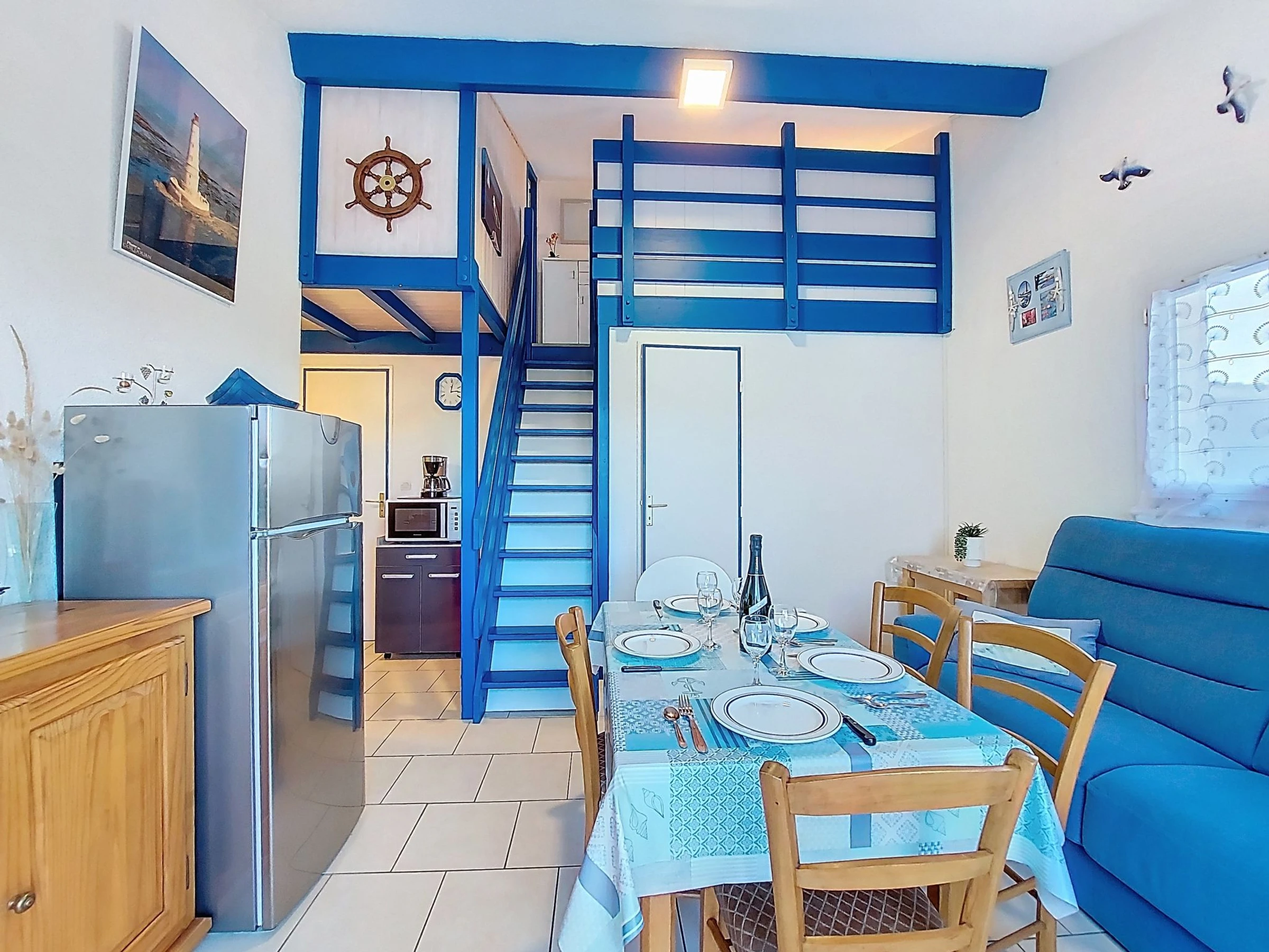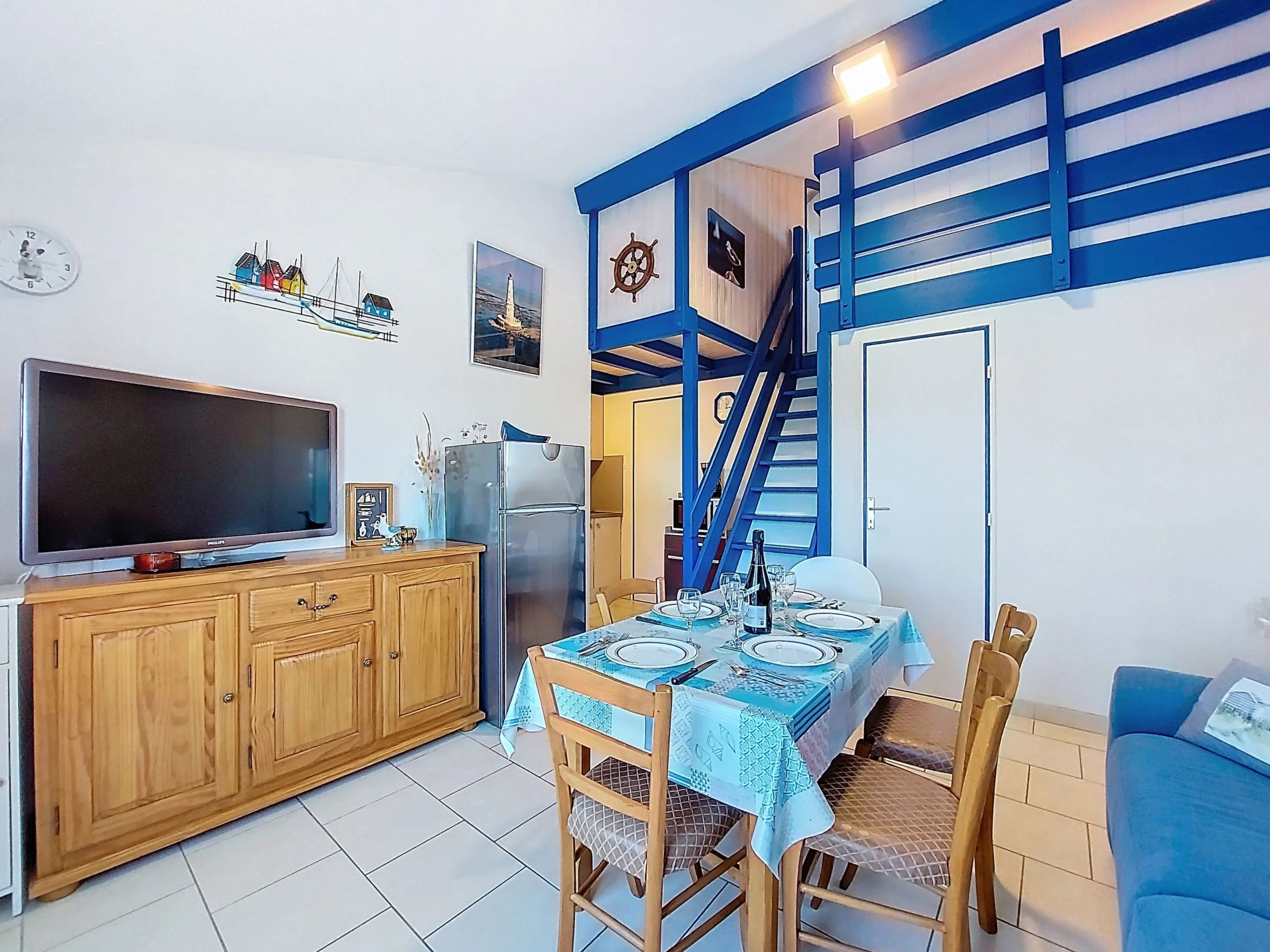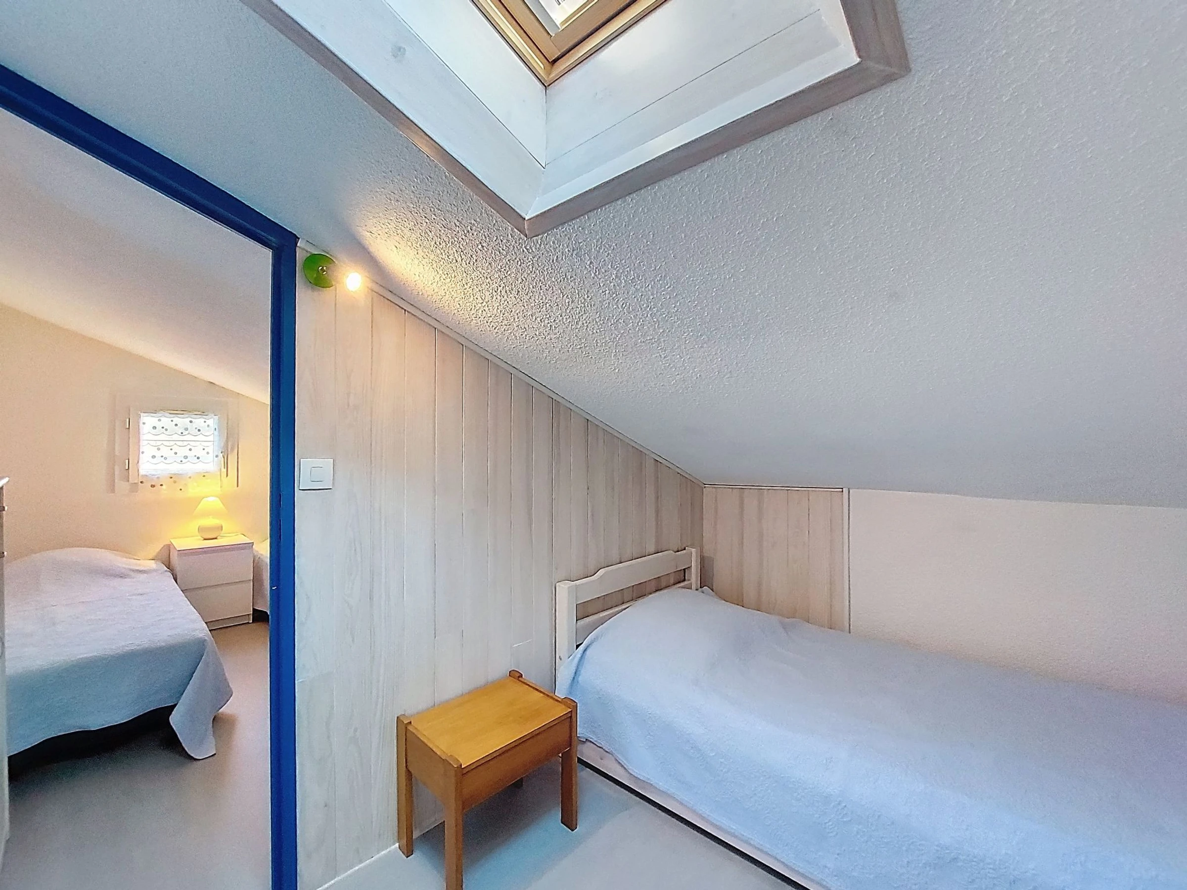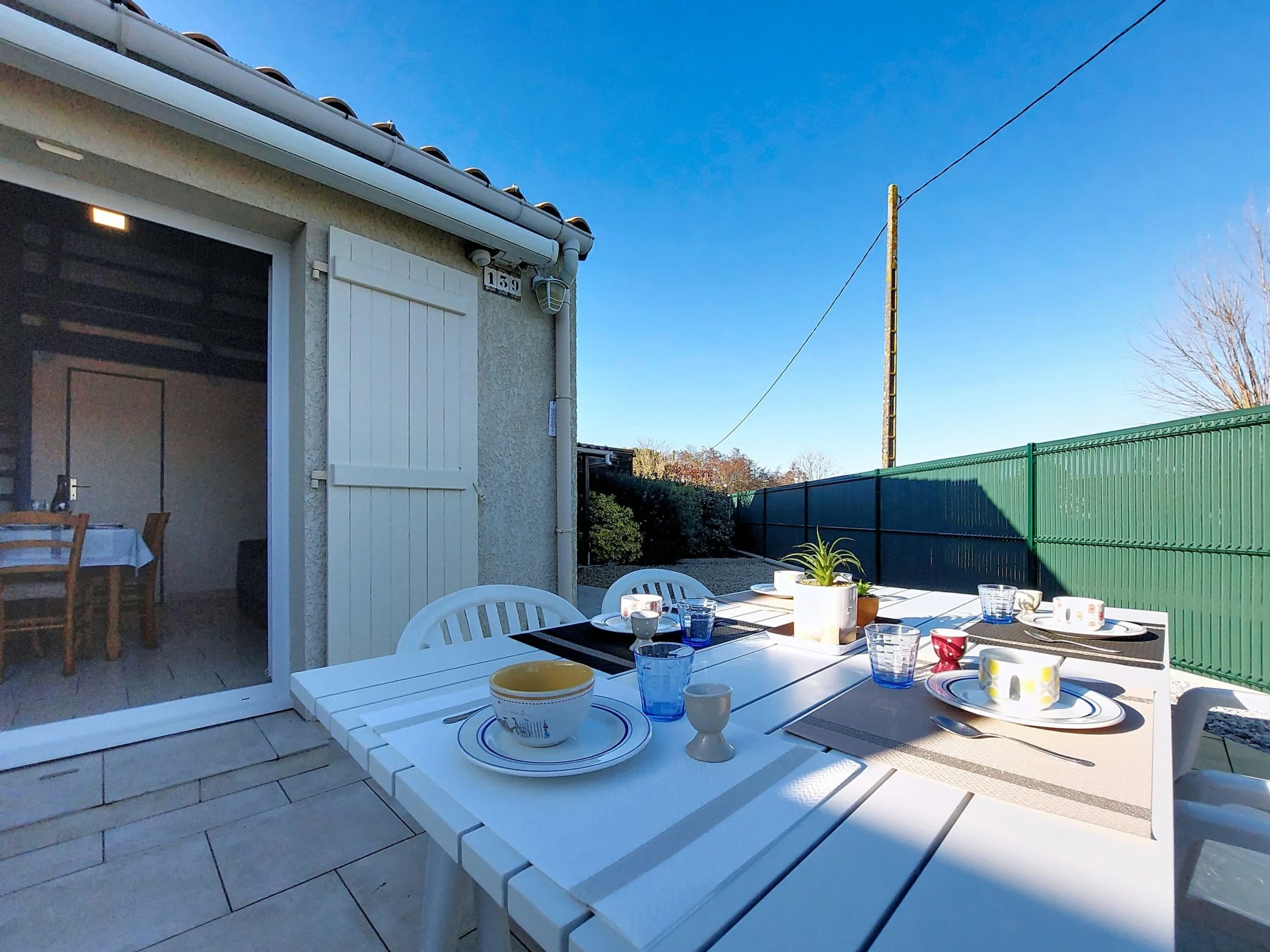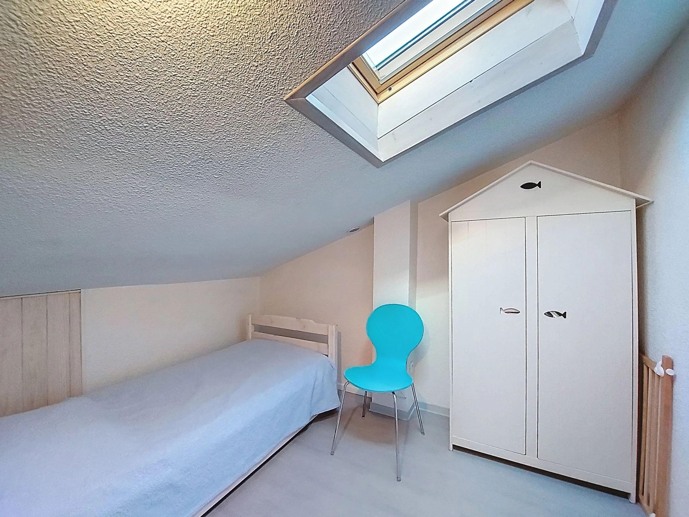 3-Zimmer-Reihenhaus 34 m2 auf 2 Stockwerken. Wohn-/Esszimmer mit Essecke und TV (Flachbildschirm). Ausgang zur Terrasse. 1 Zimmer mit 1 franz. Bett (1 x 140 cm, Länge 190 cm). Kochnische (Mini-Backofen, Geschirrspüler, 2 Glaskeramikplatten, Toaster, Wasserkocher, Mikrowelle, Tiefkühler, elektrische Kaffeemaschine). Dusche/WC. E-Heizung. Obergeschoss: abgeschrägte Galerie mit 2 Betten (90 cm, Länge 190 cm). 1 abgeschrägtes kleines Zimmer mit Dachfenster mit 1 Bett (90 cm, Länge 190 cm). Grosse Terrasse 70 m2, Südlage und Westlage. Terrassenmöbel, Gartengrill Elektrogrill. Zur Verfügung: Waschmaschine, Bügeleisen, Haartrockner. Internet (WLAN, extra). Parkplatz Nr. 139. Bitte beachten: Rauchmelder. Inserat einer Privatperson nach Artikel 155, IV, CGI.
