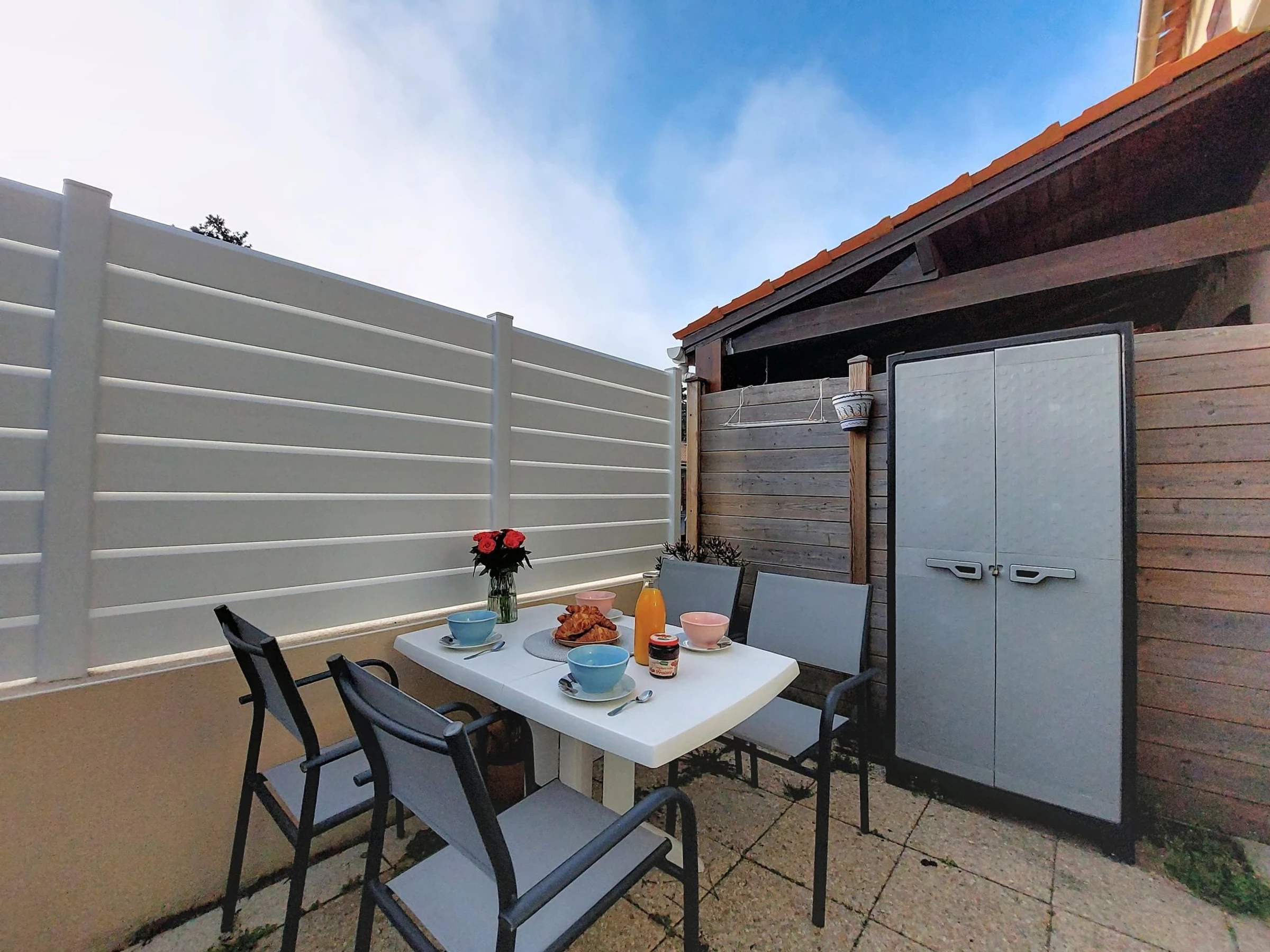 La Palmyre 15 km von Royan: Residenz "Les Jardins de la Palmyre". 42 Häuser in der Residenz. Im Ort, 100 m vom Zentrum von La Palmyre, zentrale Lage, 1 km vom Meer, 1 km vom Strand. Lebensmittelgeschäft, Supermarkt, Restaurant 200 m, Bäckerei 50 m, Fahrradverleih 200 m, Bushaltestelle "La Palmyre Office de Tourisme" 300 m, Bahnstation "Royan" 19 km, Sandstrand "La Palmyre" 1.3 km, Hallenbad 19 km, Thermalbad "Thalassothérapie Thalazur Royan" 16 km. Sporthafen 1.4 km, Golfplatz (9 Loch) 2 km, Surfschule 200 m, Tennis 1.2 km, Reitstall 1.5 km. Nahe gelegene Sehenswürdigkeiten: Zoo de La Palmyre 1.2 km, Hippodrome - La Palmyre 1 km, Luna Park (Juillet-Août) 5 km, Embarcadère Royan - Le Verdon 5 km, Centre aquatique Iléo - Ile d'Oléron 35 km, Fort Boyard - Ile d'Aix 60 km. Die Schlüsselübergabe findet bei der Agentur in La Palmyre statt, 1 km.