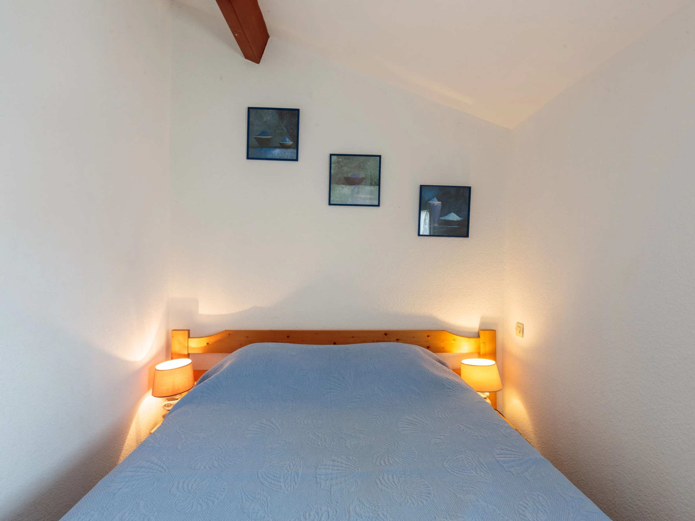3-Zimmer-Reihenhaus 32 m2 auf 2 Stockwerken, Südwestlage. Objekt geeignet für 2 Erwachsene + 2 Kinder. Wohnzimmer mit TV (Flachbildschirm). Ausgang zur Terrasse. Offene Küche (Mini-Backofen, Geschirrspüler, 4 Glaskeramikplatten, Toaster, Mikrowelle, elektrische Kaffeemaschine). Sep. WC. Obergeschoss: 1 Zimmer mit 1 franz. Bett (140 cm, Länge 190 cm). 1 Kinderzimmer mit 1 x 2 Etagenbetten (70 cm, Länge 190 cm). Dusche. E-Heizung. Terrasse 12 m2, Südwestlage. Terrassenmöbel. Zur Verfügung: Waschmaschine. Internet (Wireless LAN, gratis). Parkplatz Nr. 38 beim Haus. Bitte beachten: Maximal 1 Haustier/Hund erlaubt. Rauchmelder. Inserat einer Privatperson nach Artikel 155, IV, CGI.