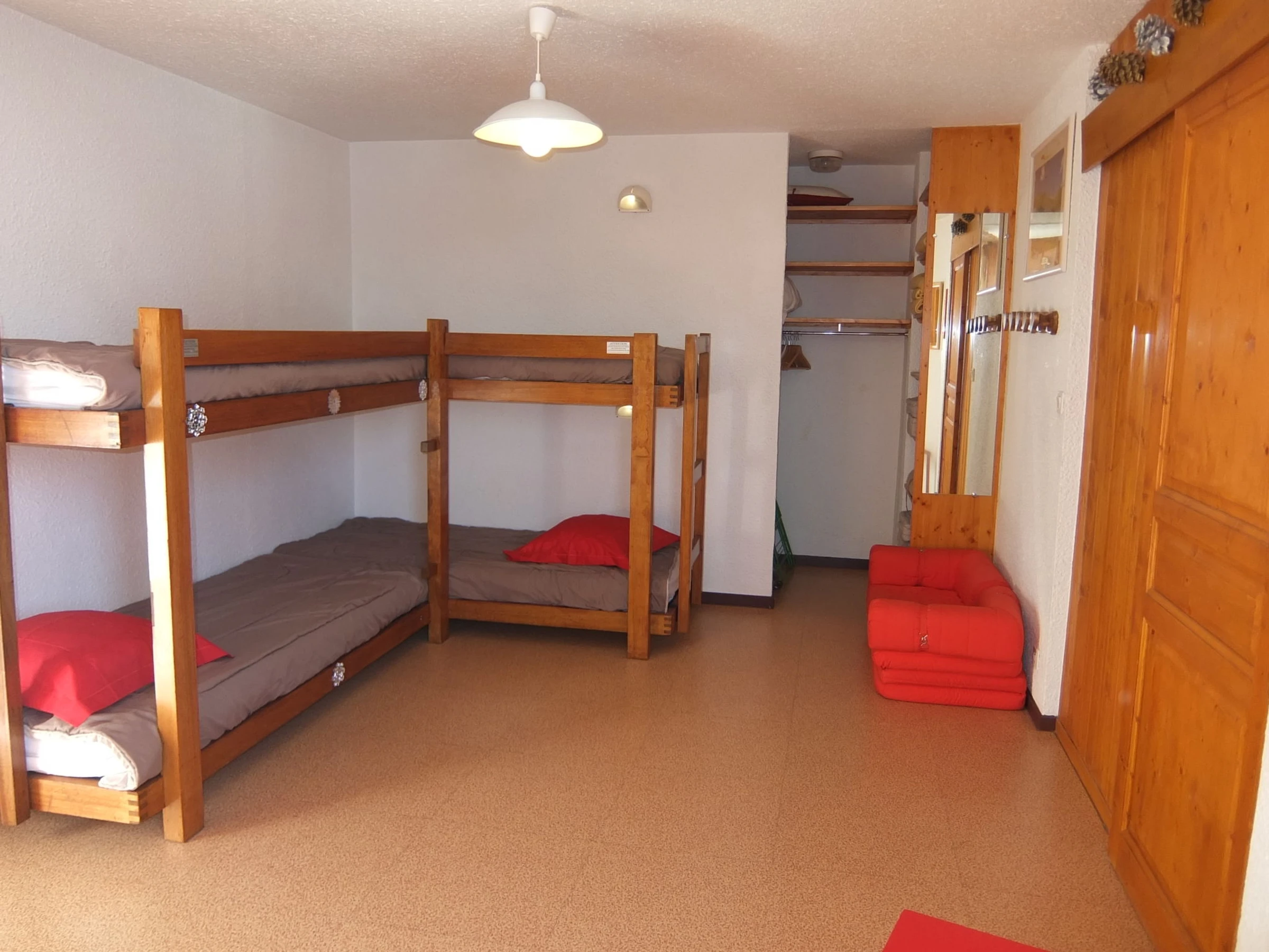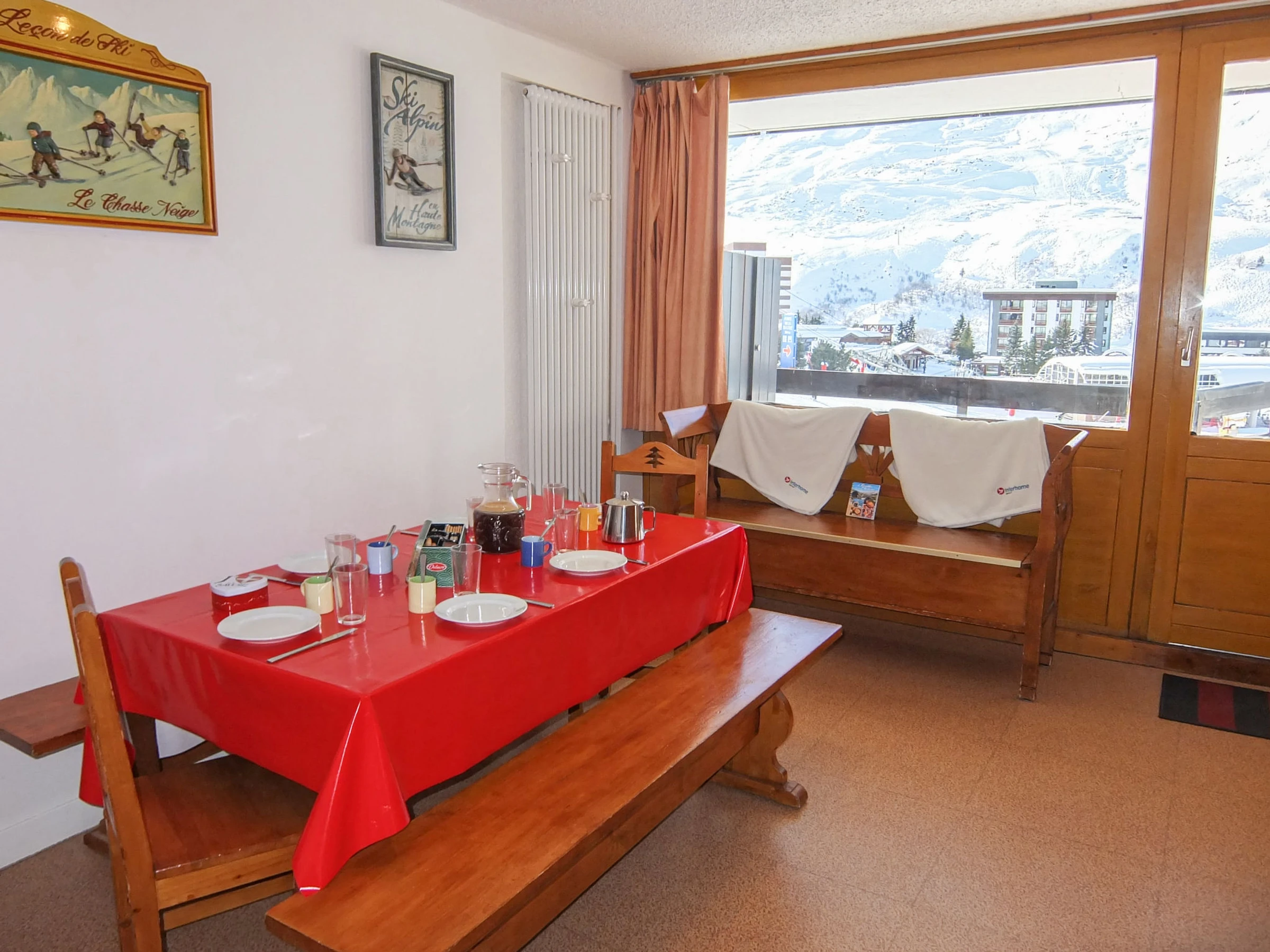 "Aravis 212", 3-Zimmer-Wohnung 50 m2 im 2. Stock. Sehr schön eingerichtet: Wohn-/Esszimmer mit TV (Flachbildschirm), Radio. Ausgang zum Balkon. 1 offenes Zimmer mit 2 x 2 Etagenbetten (80 cm, Länge 190 cm). 1 grosses Zimmer mit 1 Doppelbett (2 x 80 cm, Länge 200 cm). Offene Küche (Backofen, Geschirrspüler, 4 Glaskeramikplatten, Mikrowelle, elektrische Kaffeemaschine). Dusche, sep. WC. Grosser Balkon, Südlage und Westlage. Liegestühle (2). Sehr schöne Panoramasicht auf die Berge und die Skipiste. Zur Verfügung: Haartrockner. Internet (WLAN, extra). Bitte beachten: Rauchmelder. Skieinstellkasten: 1 (auf Höhe der Skipiste, hinter den Briefkästen). [hidden]