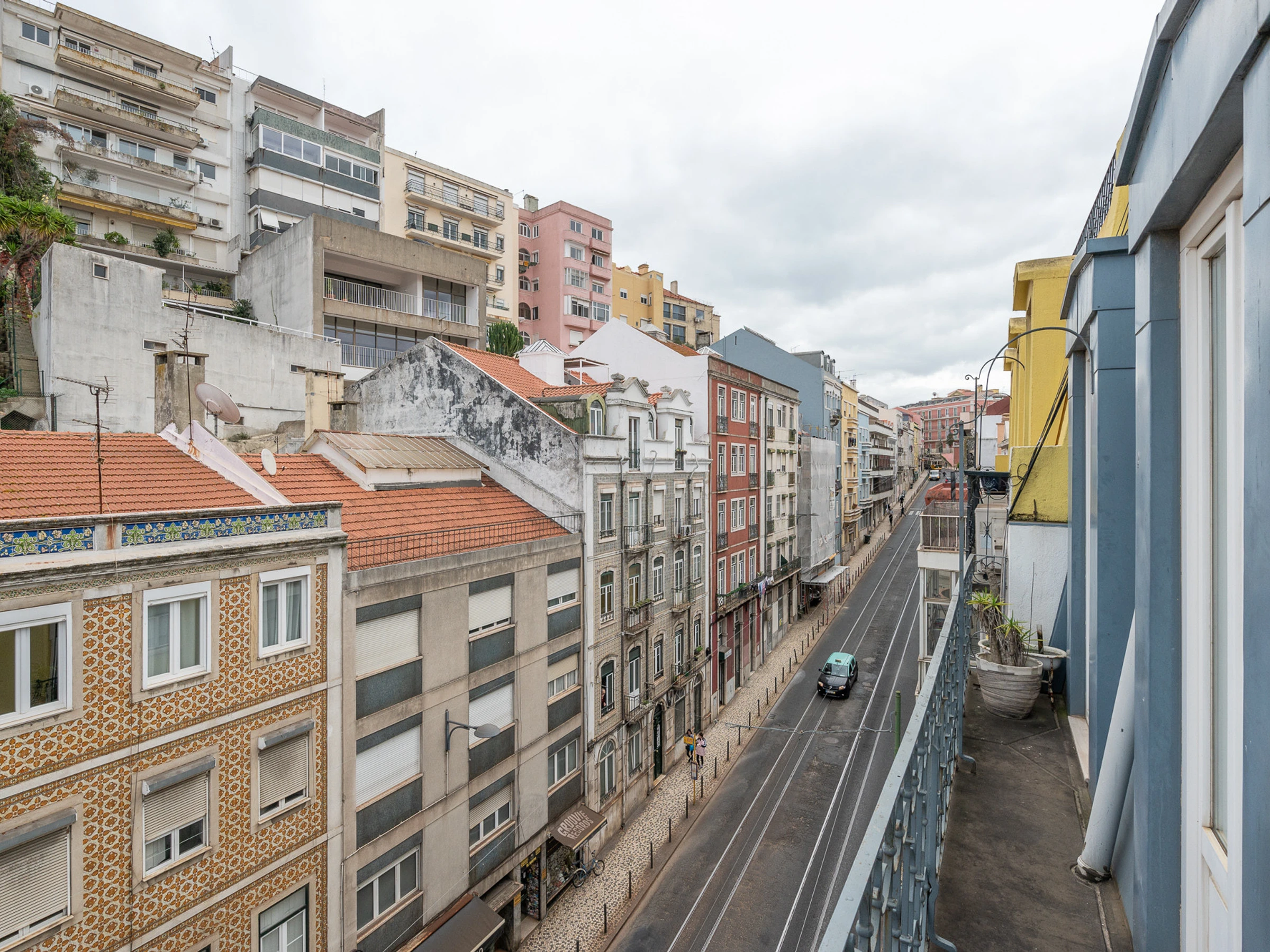 Willkommen in einem typischen Viertel Lissabons, wo Sie die Straßenbahn 28 direkt vor der Tür finden, die Sie überall hinbringt.