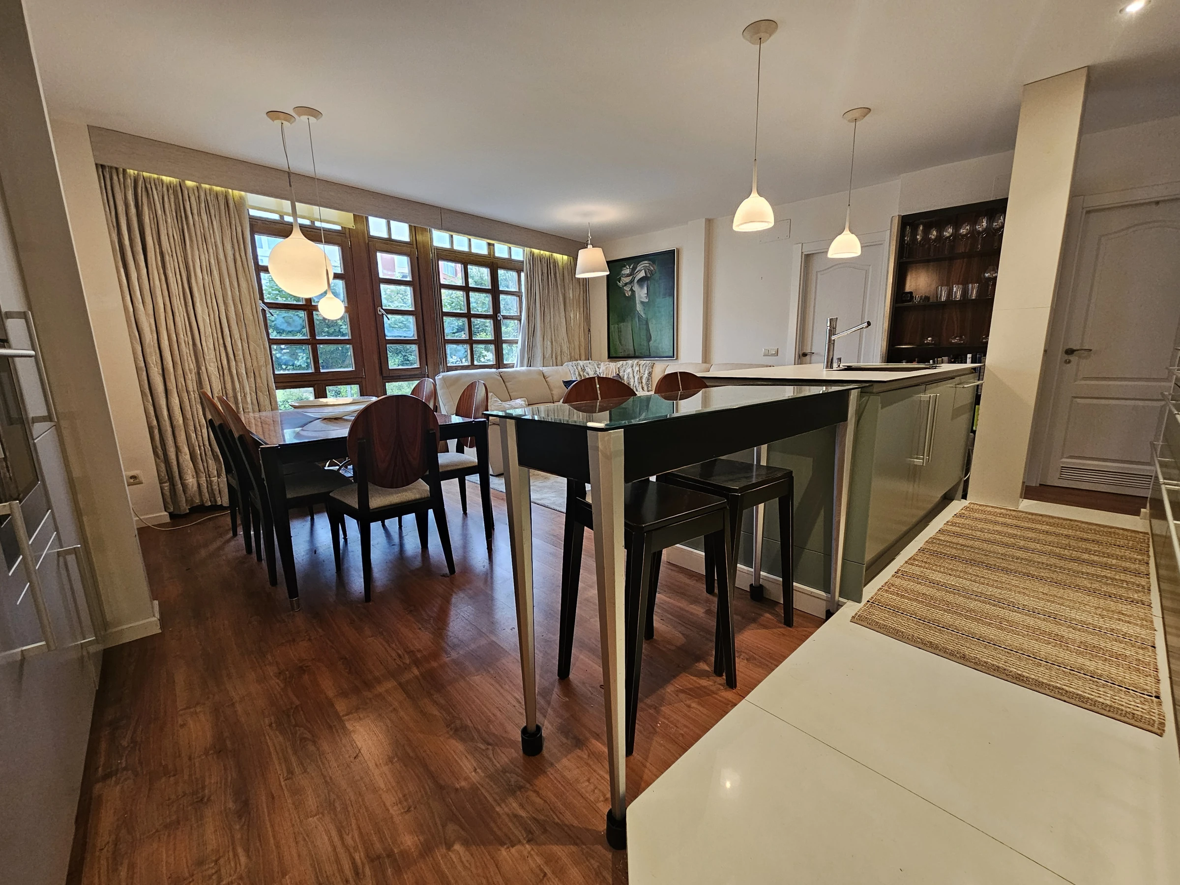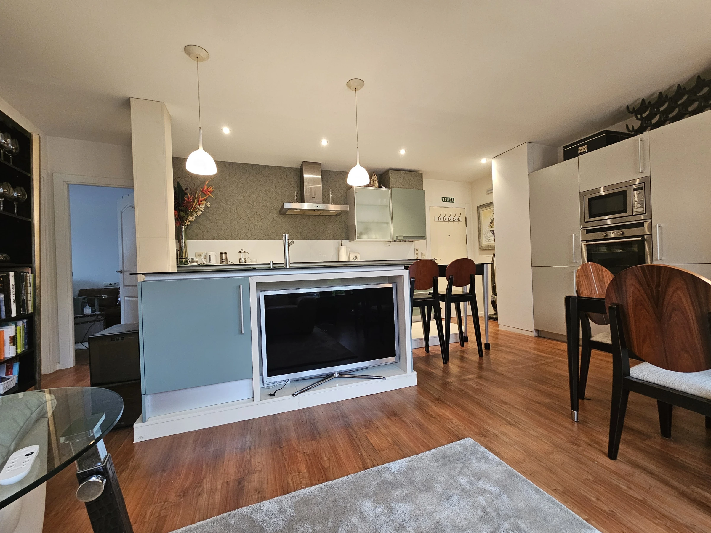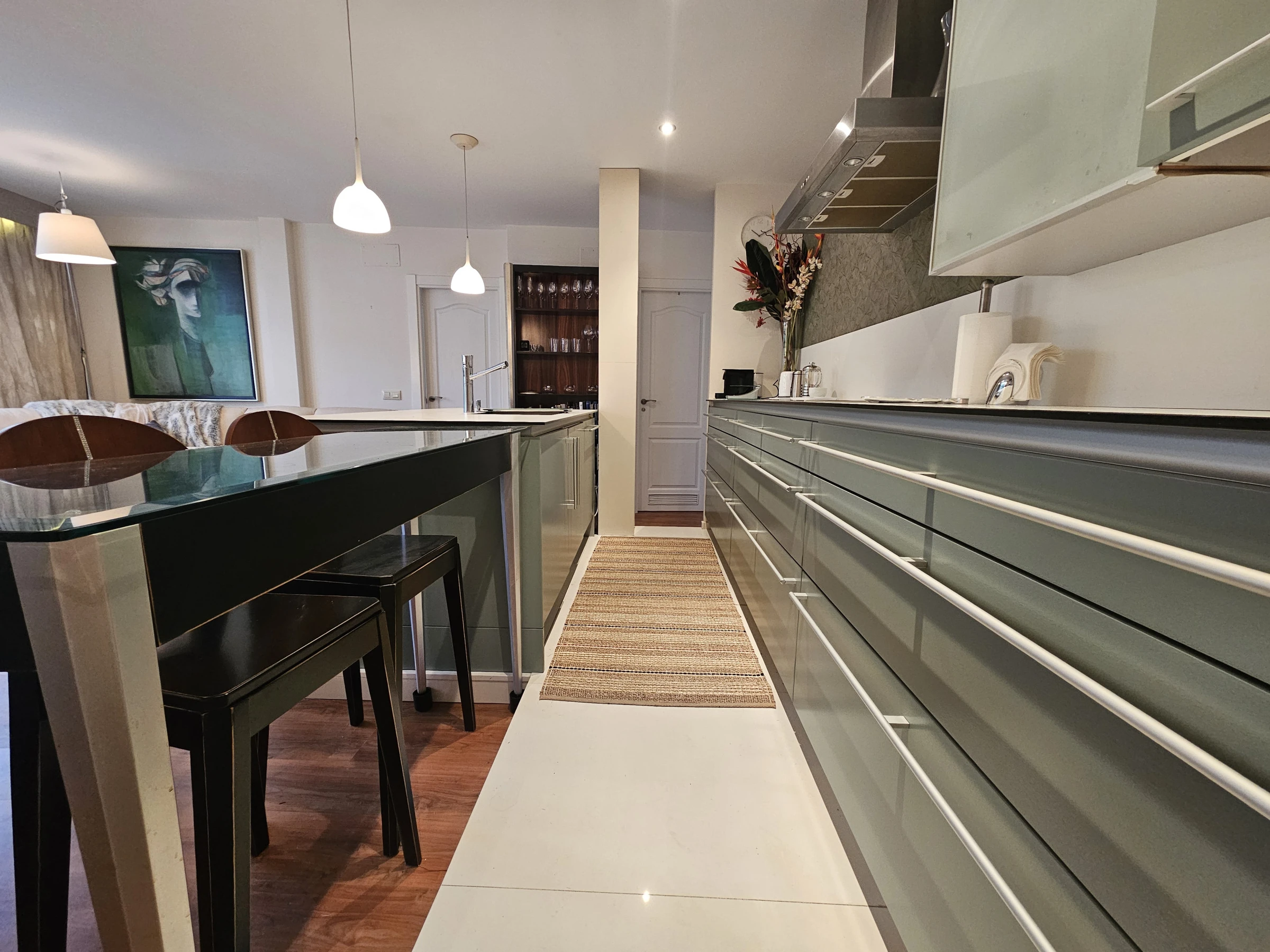 En este luminoso y moderno apartamento encontraréis 2 dormitorios : Un dormitorio principal con baño en suite y un segundo dormitorio con 2 camas individuales, escritorio y una amplia TV. El salón Comedor es el lugar perfecto para compartir momentos en familia y disfrutar del relax que proporciona el amplio sofá chaise long, este espacio conecta con una estupenda cocina americana moderna y totalmente equipada con todas las comodidades.