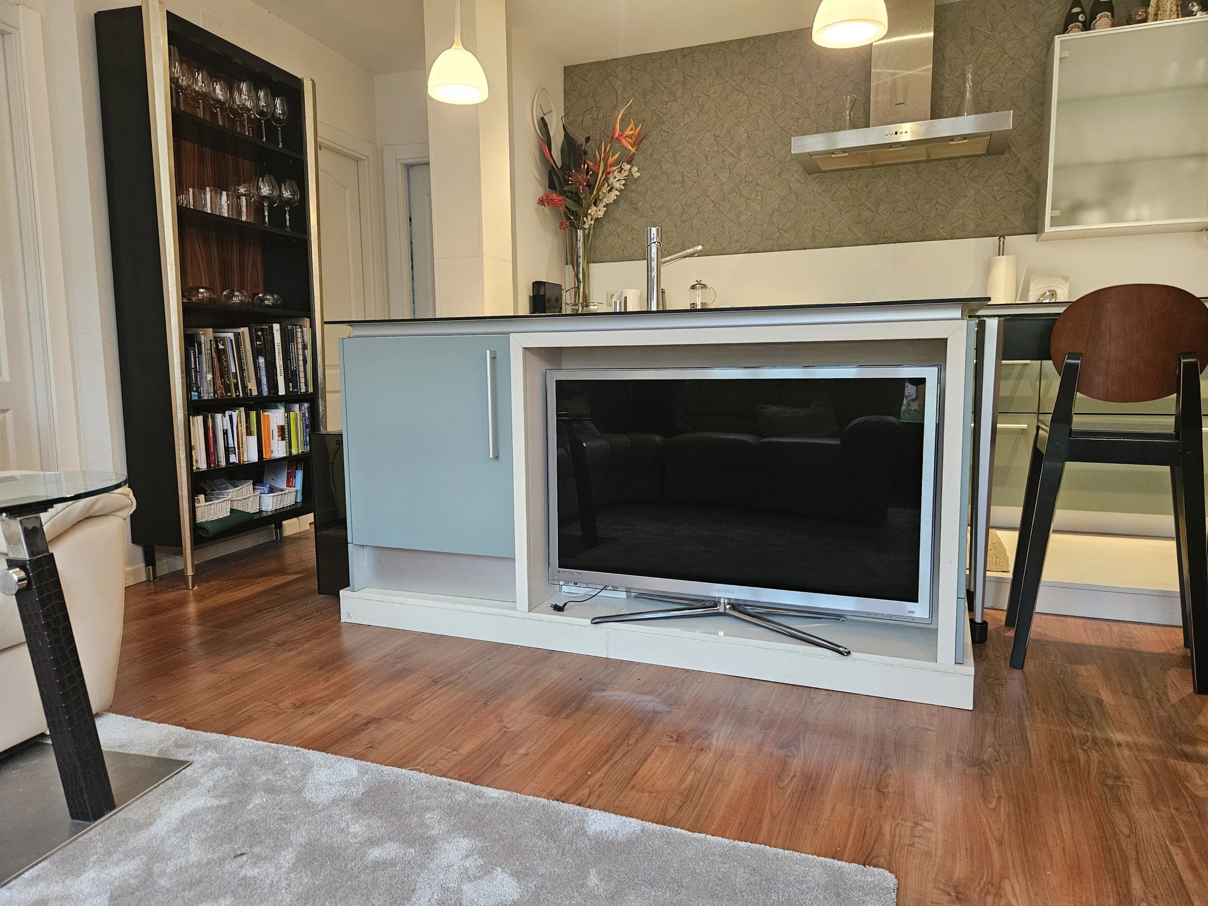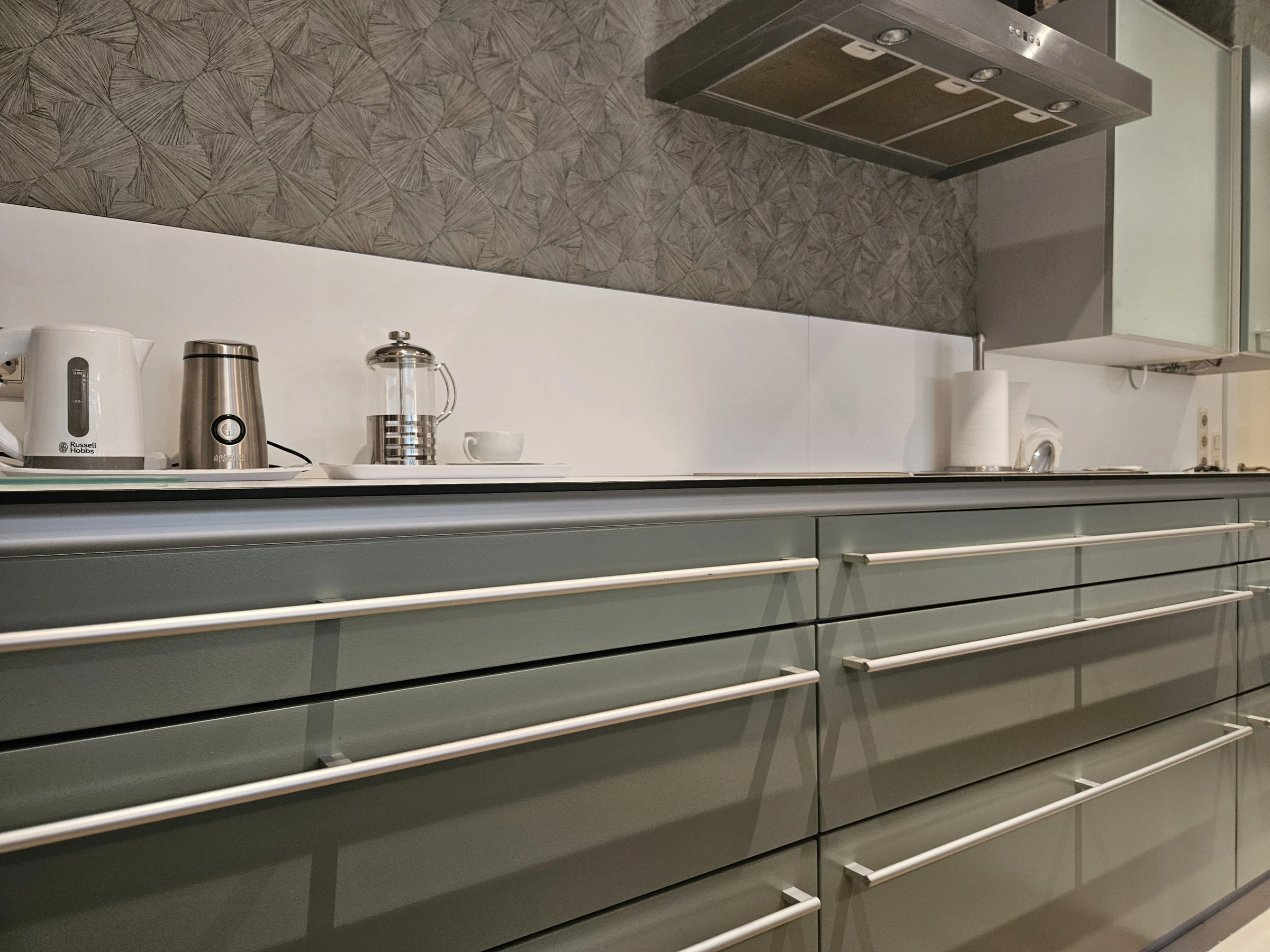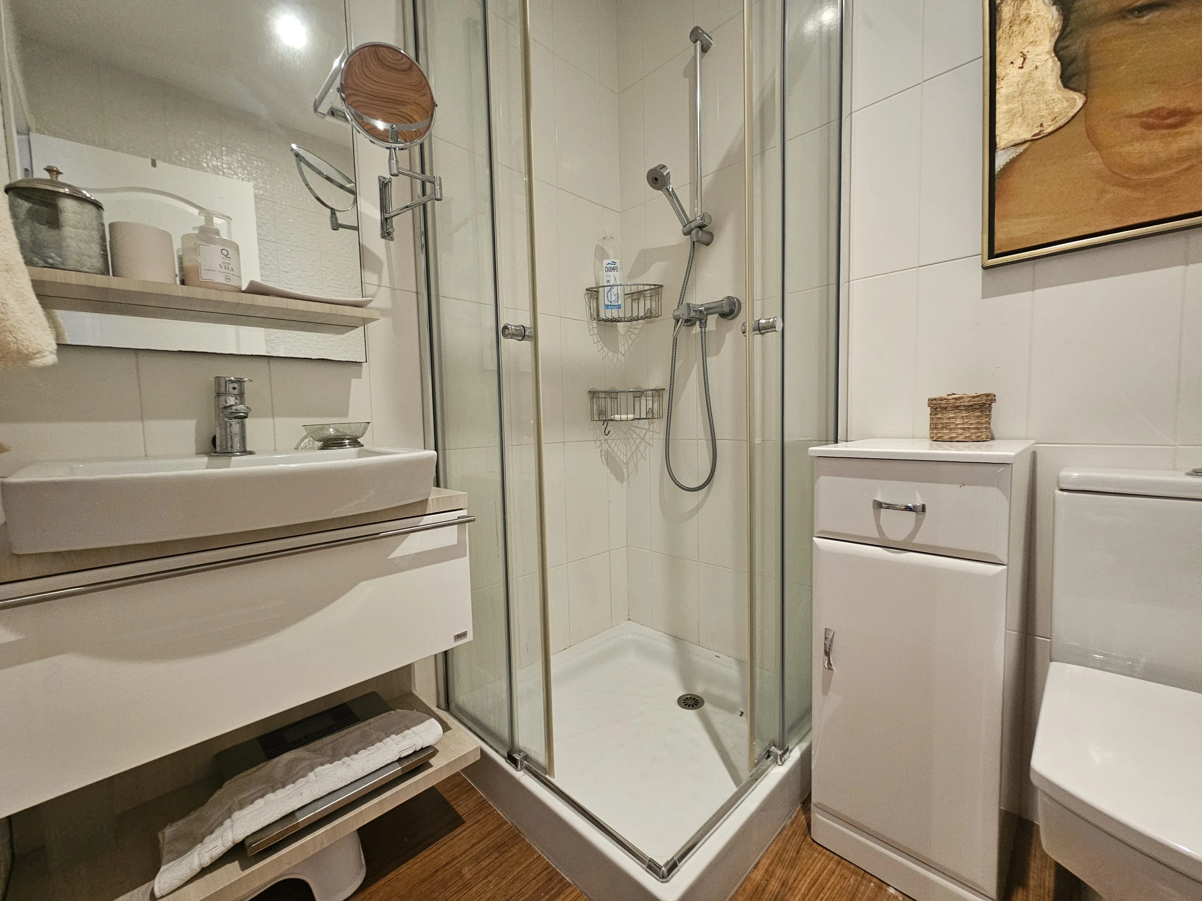 En este luminoso y moderno apartamento encontraréis 2 dormitorios : Un dormitorio principal con baño en suite y un segundo dormitorio con 2 camas individuales, escritorio y una amplia TV. El salón Comedor es el lugar perfecto para compartir momentos en familia y disfrutar del relax que proporciona el amplio sofá chaise long, este espacio conecta con una estupenda cocina americana moderna y totalmente equipada con todas las comodidades.