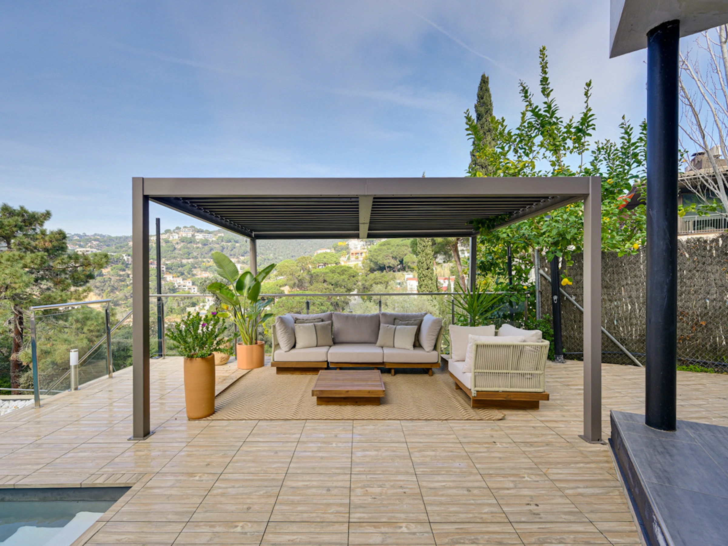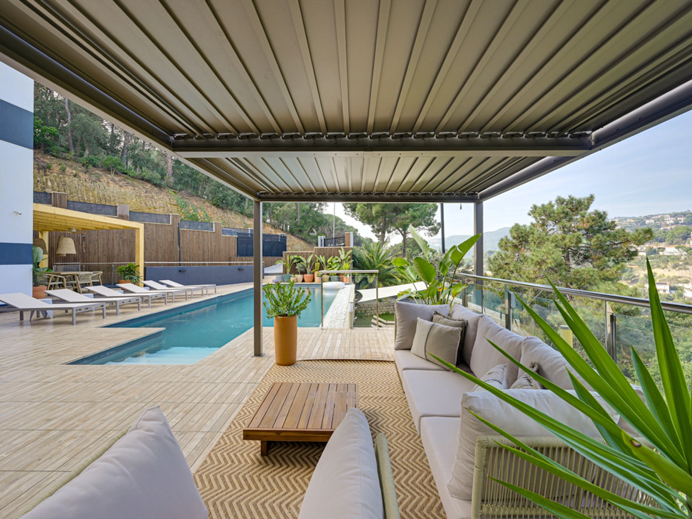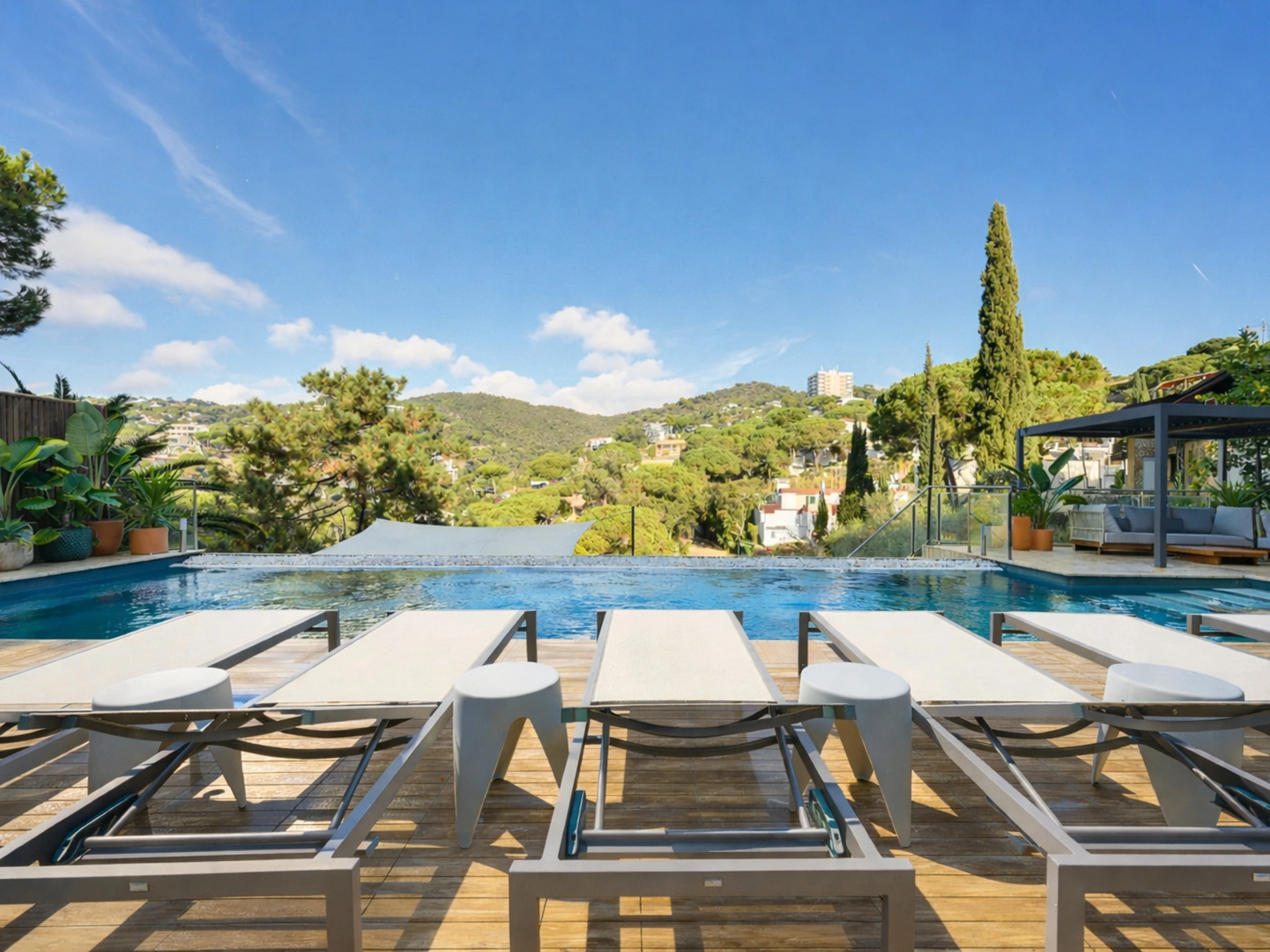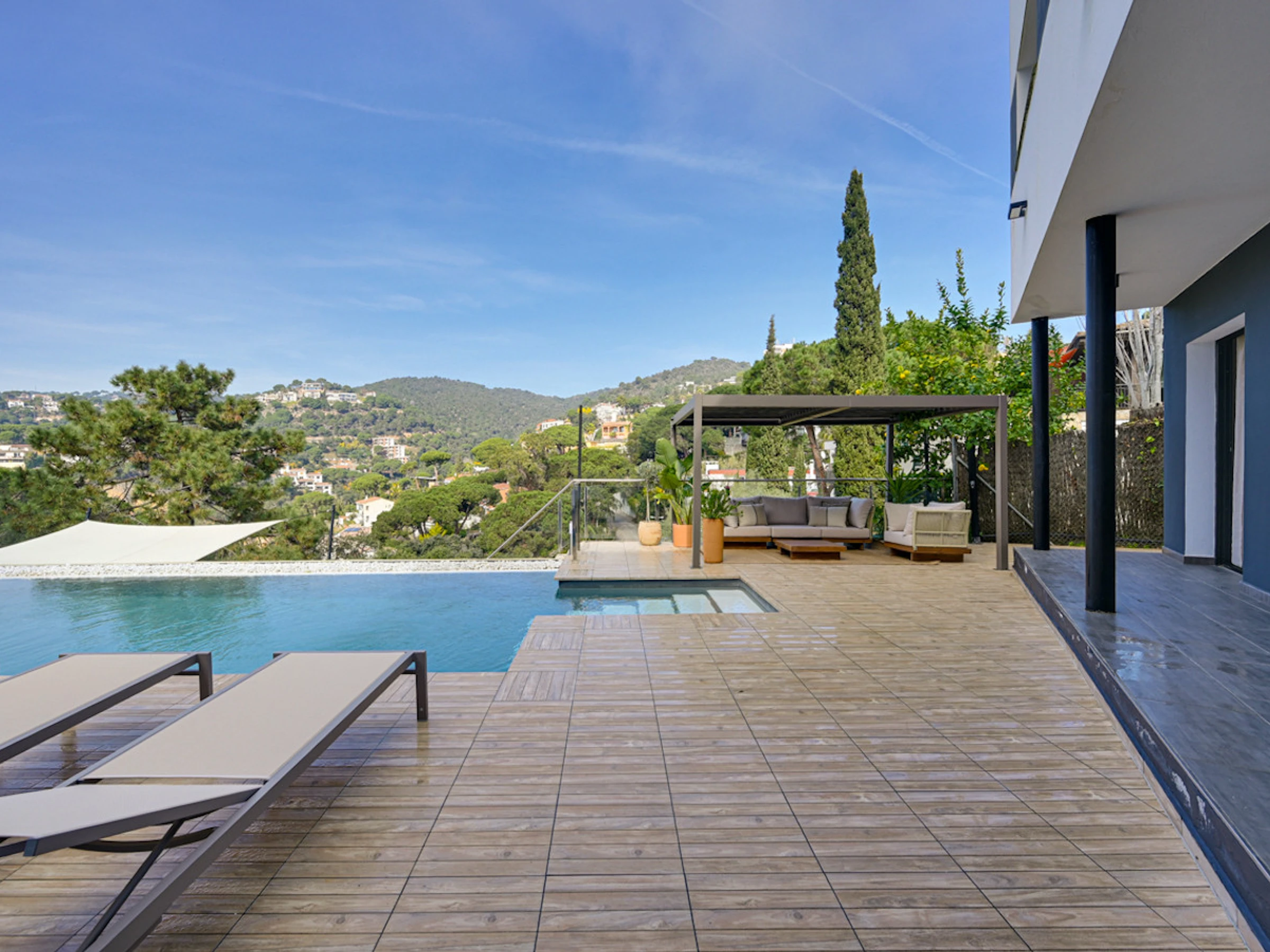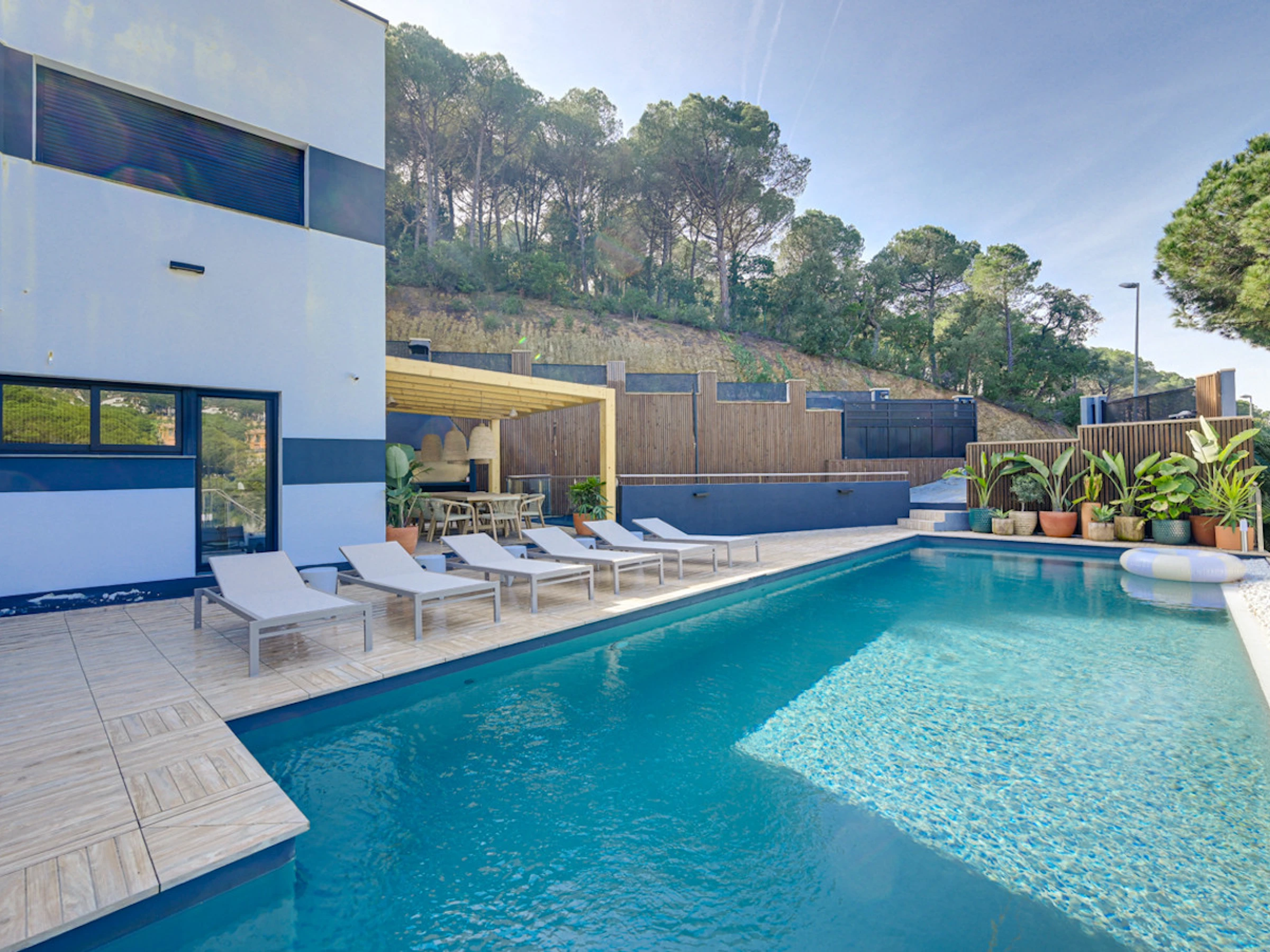 Die Unterkunft verfügt über gartenmöbel, umzäuntes grundstück, terrasse, waschmaschine, grill, bügeleisen/-brett, internet (WLAN), haartrockner, balkon, heizung, klimaanlage in der ganzen unterkunft, swimming-pool privater pool, 1 Fernseher.