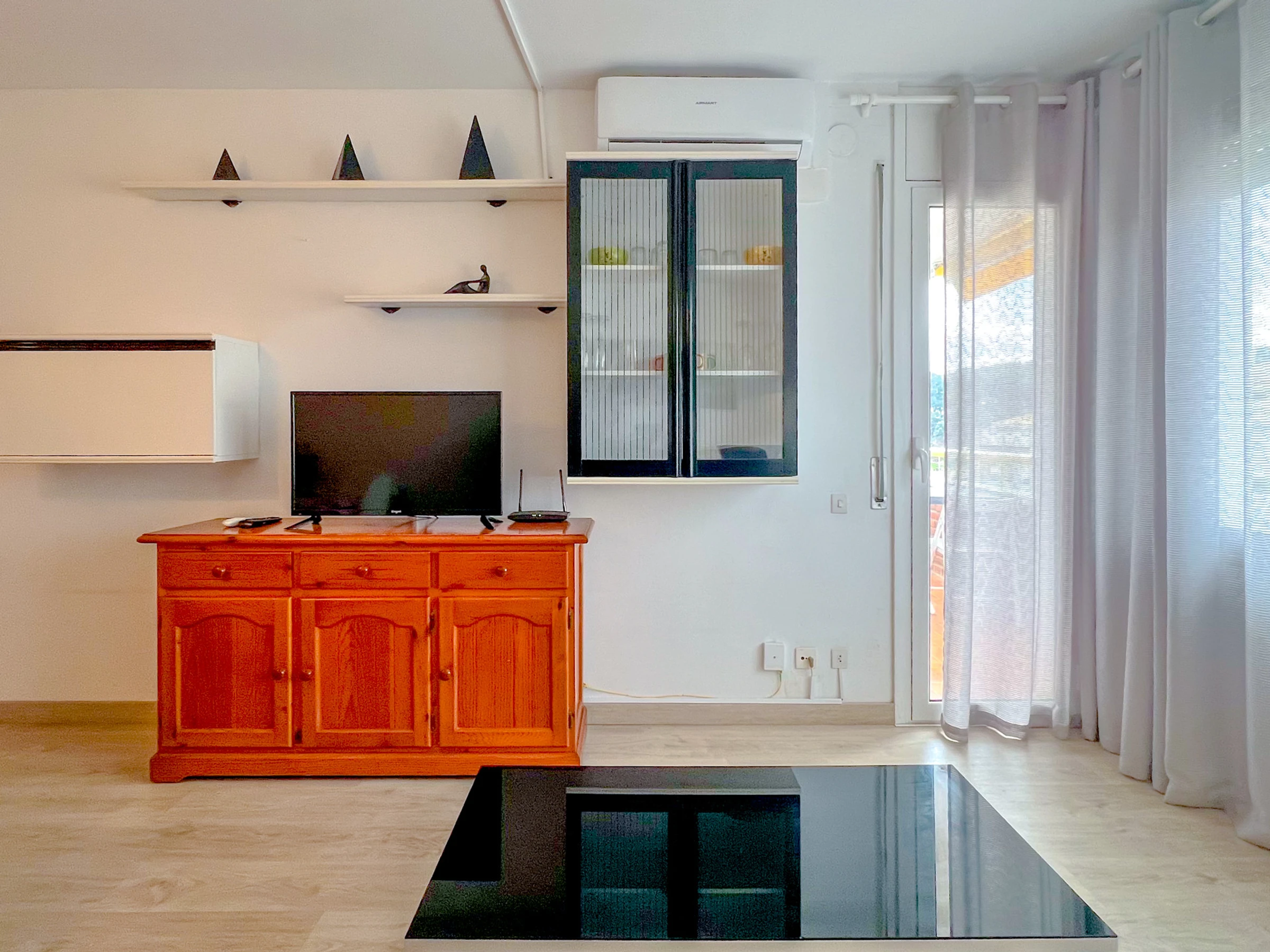 - Wohn-Esszimmer mit Klimaanlage und offener Küche